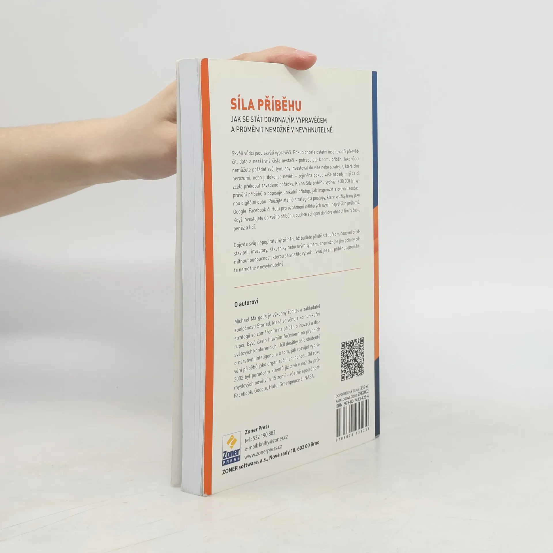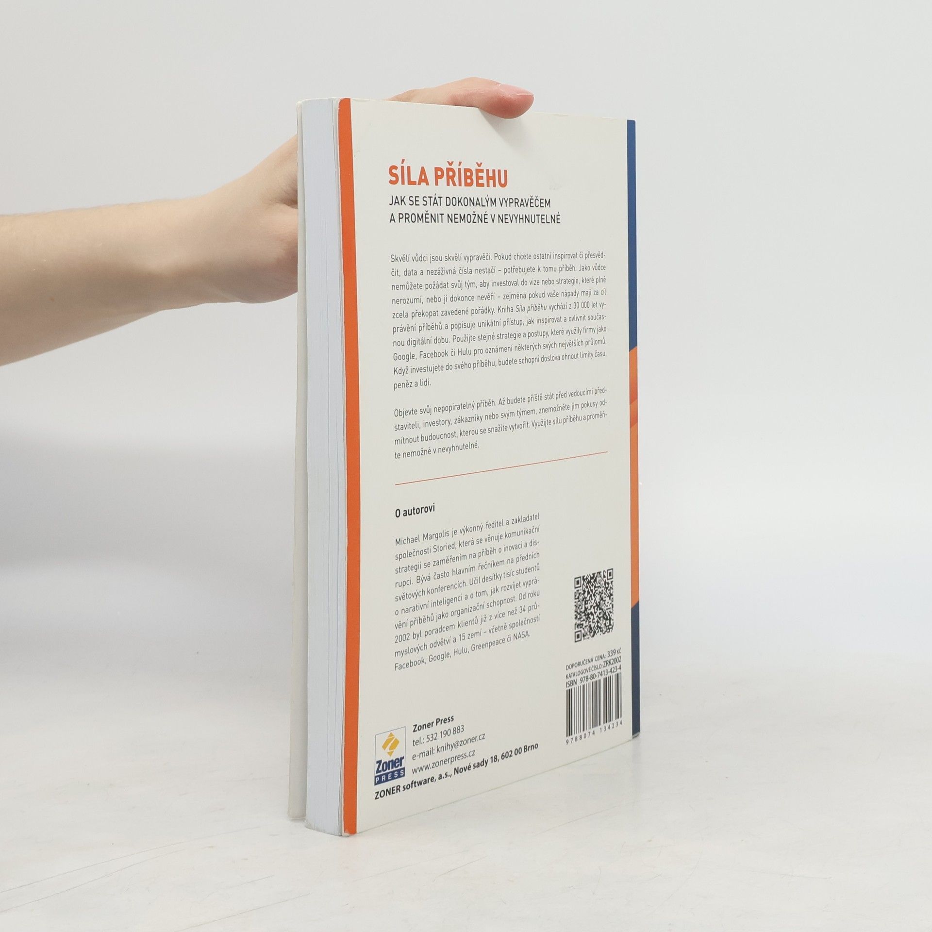 Skvělí vůdci jsou skvělí vypravěči. Pokud chcete inspirovat nebo přesvědčit, nestačí vám pouze data a čísla – potřebujete příběh. Jako vůdce nemůžete očekávat, že tým investuje do vize nebo strategie, které nezná nebo nevěří, zejména pokud se snažíte změnit zavedené pořádky. Kniha nabízí unikátní přístup k inspiraci a vlivu v digitální době, vycházející z 30 000 let vyprávění příběhů. Můžete využít strategie firem jako Google, Facebook či Hulu, které oznámily své největší průlomy. Investováním do svého příběhu můžete ohnout limity času, peněz a lidí. Objevte svůj nepopiratelný příběh a při setkání s vedoucími představiteli, investory nebo zákazníky jim znemožněte odmítnout budoucnost, kterou se snažíte vytvořit. Využijte sílu příběhu a proměňte nemožné v nevyhnutelné. Autor Michael Margolis, zakladatel společnosti Storied, se specializuje na komunikační strategii zaměřenou na inovaci a disrupci. Je vyhledávaným řečníkem na světových konferencích a učil desítky tisíc studentů o narativní inteligenci a vyprávění příběhů jako organizační schopnosti. Od roku 2002 byl poradcem pro klienty z více než 34 průmyslových odvětví v 15 zemích.