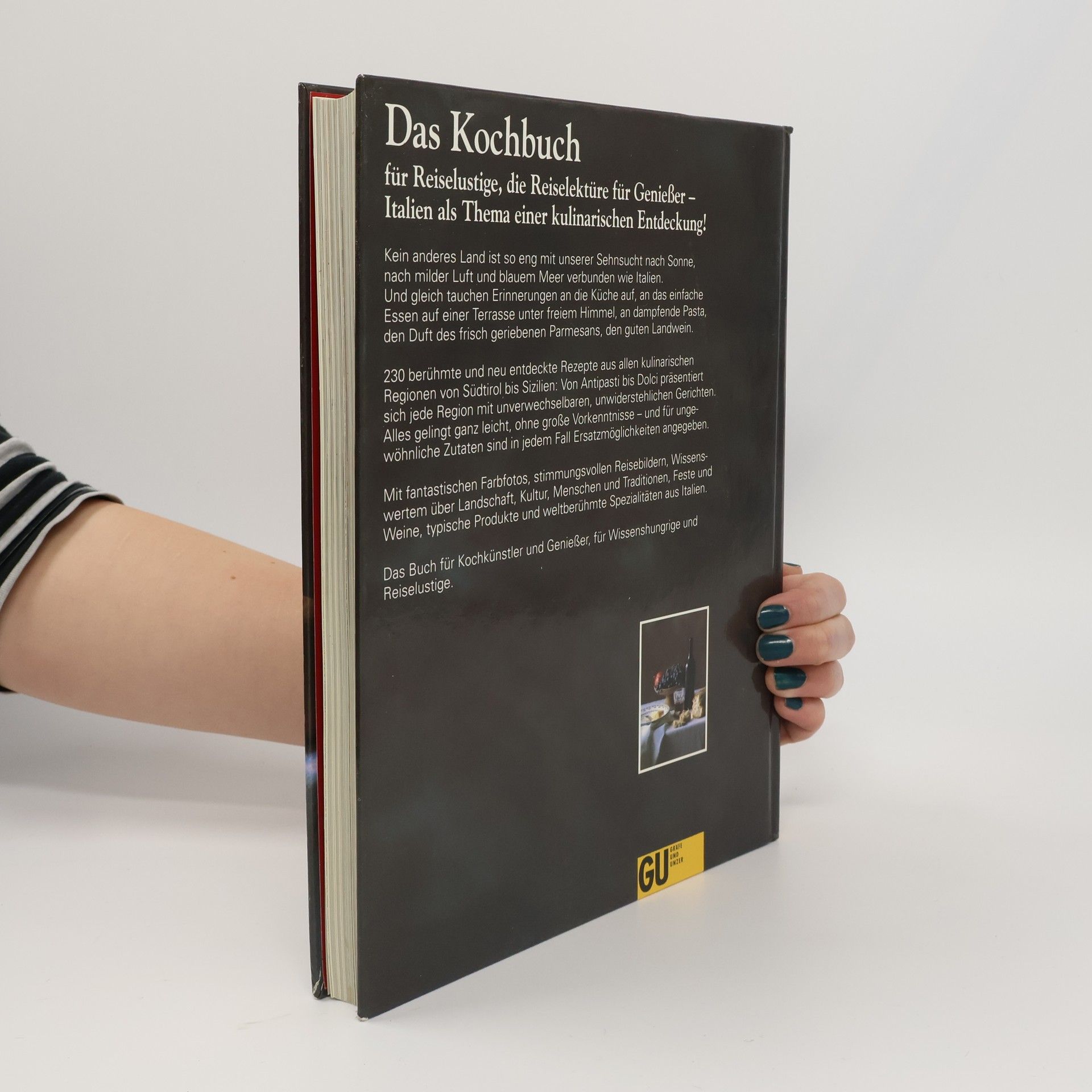 Genießen Sie die kulinarischen Köstlichkeiten Italiens, des Landes mit der Küche, die von Experten als die beste der Welt genannt wird. Die italienischen Regionen verfügen dank ihrer klimatischen Unterschiede über differenzierte Marktangebote, und diese führen zu einer Vielfalt an regionalen Spezialitäten. Lernen Sie in 230 echten, das heißt typischen Rezepten die Eigenschaften der italienischen Küche kennen, einer Küche, die reich ist an Düften und köstlichen Spezialitäten, einer Küche mit großer kulinarischer Tradition. Jedes der acht Kapitel führt in die jeweilige Region ein, zeigt die Hintergründe der speziellen Küche, die Mentalität der Menschen. Es folgen Hinweise auf kulinarische Sehenswürdigkeiten und Feste. Und dann werden die typischen Rezepte aus dieser Landschaft vorgestellt, von Antipasti (Vorspeisen) über Primi Piatti (Teigwaren, Reis und Suppen) und Secondi Piatti (Fisch, Fleisch, Geflügel, Wild und Eiergerichte) bis zu Dolci (Desserts). Alle diese Köstlichkeiten werden so beschrieben, daß Sie sie mühelos selbst zubereiten können. Ein Kochvergnügen für Sie, ein Genuß für Ihre Gäste.