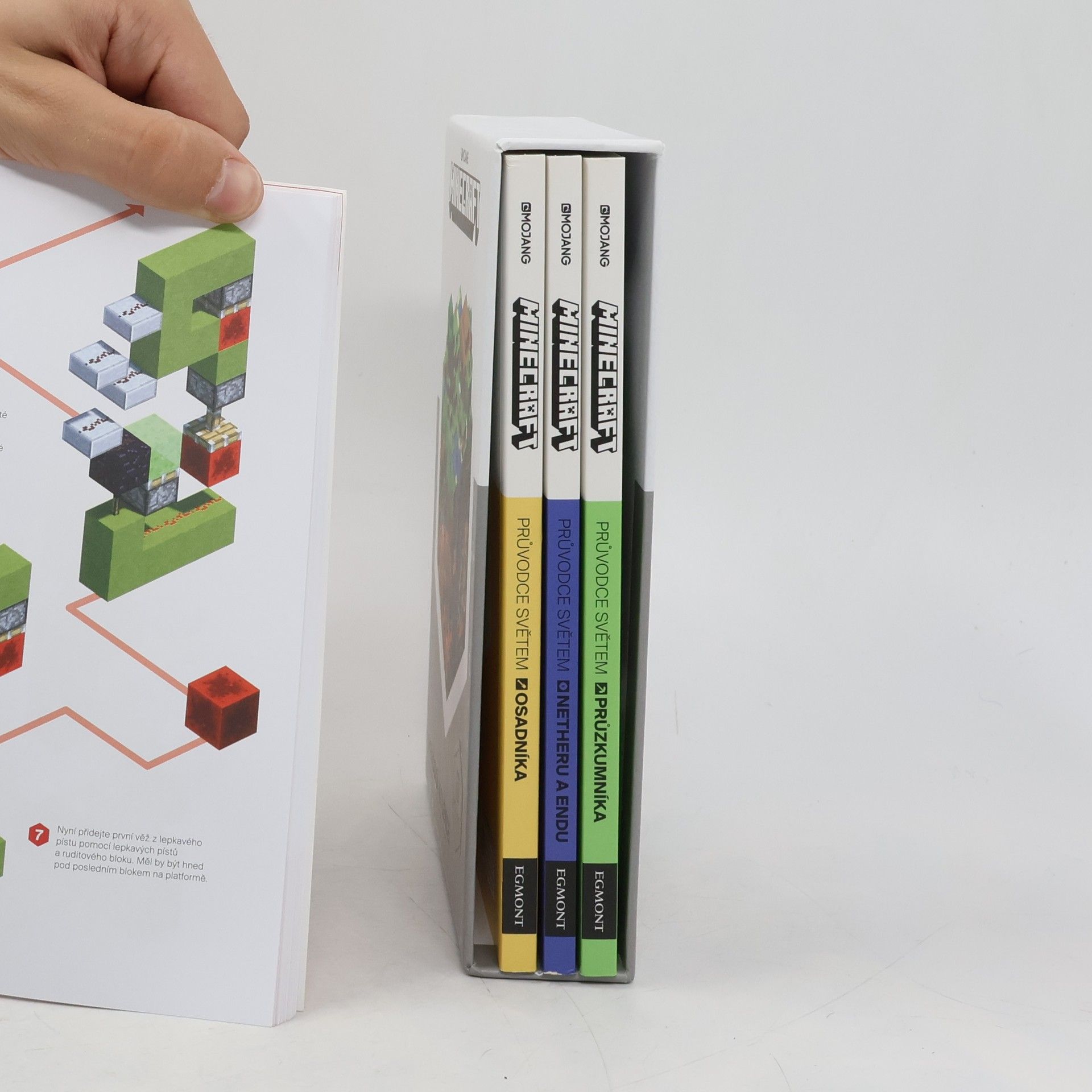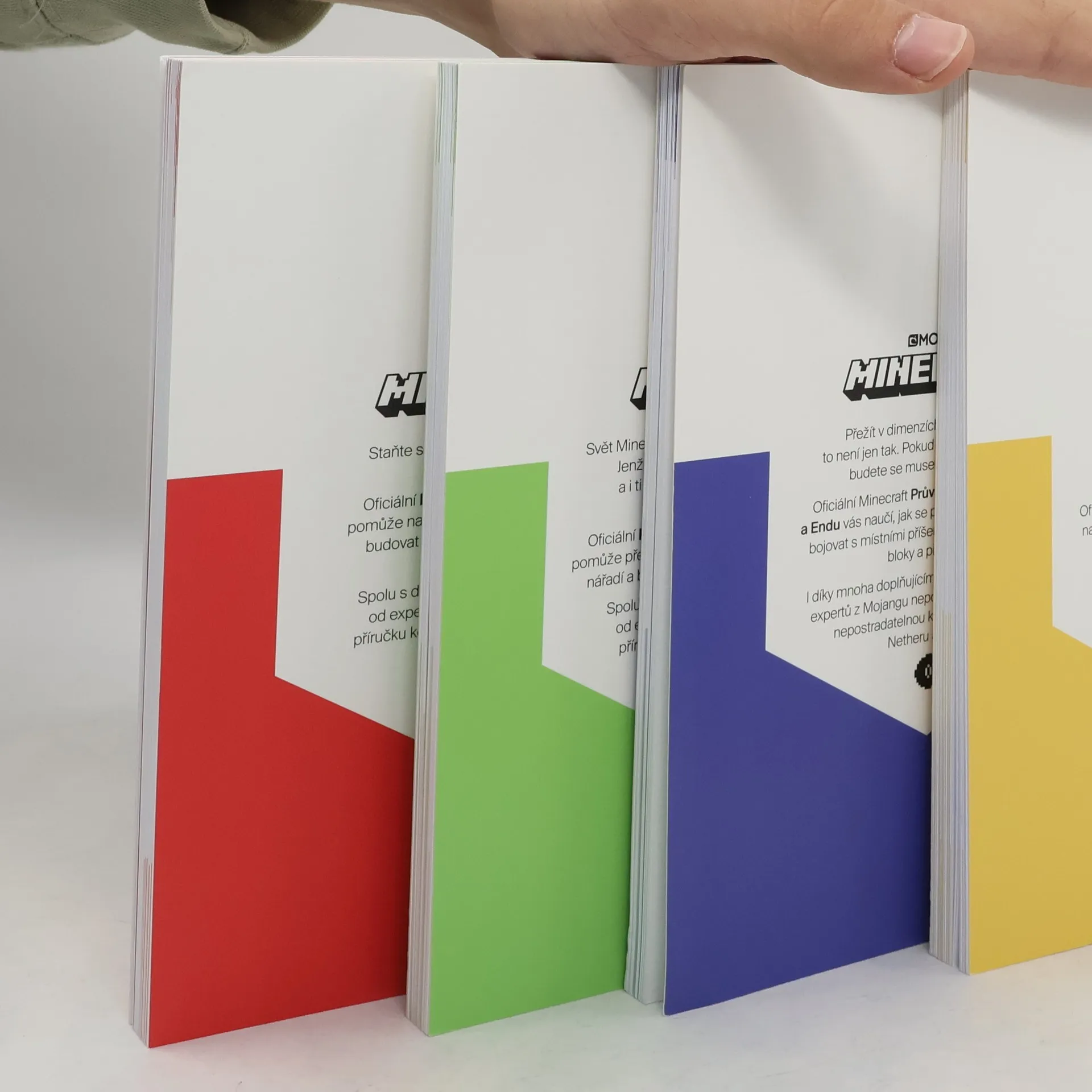 Druhé vydání. V prodeji pouze jako komplet (4 brožované svazky v kartonovém obalu). Tajemný svět Minecraftu čeká na důkladné prozkoumání! Spoustu důležitých informací přináší atraktivní balení čtyř knížek určených pro odvážné dobrodruhy. Navíc obsahují rady a tipy přímo od expertů z Mojangu! Tento komplet obsahuje samostatně neprodejné svazky: Minecraft - Průvodce světem průzkumníka (ISBN 978-80-252-4131-8); Minecraft - Průvodce světem osadníka (ISBN 978-80-252-4130-1); Minecraft - Průvodce k využití ruditu (ISBN 978-80-252-4133-2); Minecraft - Průvodce světem Netheru a Endu (ISBN 978-80-252-4132-5)