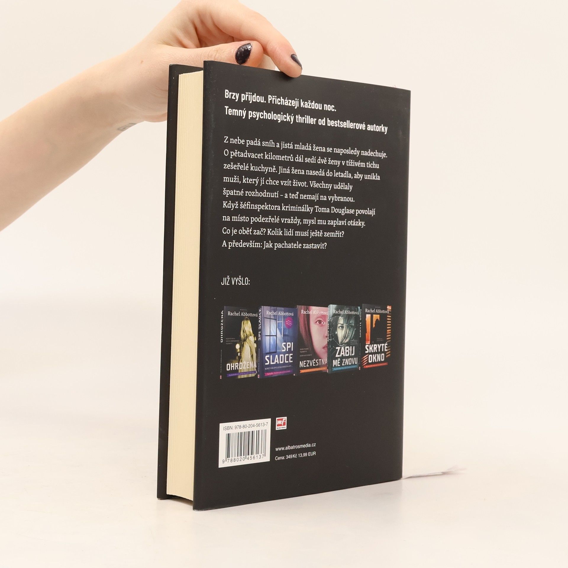 Brzy přijdou. Přicházejí každou noc. Zatímco se z nebe snáší sníh, jistá mladá žena se naposledy nadechuje. O pětadvacet kilometrů dál mlčky sedí dvě ženy ve zšeřelé kuchyni. Nemluví spolu, protože už není co říkat. Jiná žena nasedá na letadlo, aby unikla muži, který se jí snaží ukrást život. Dříve nebo později se ale bude muset vrátit. Tito cizí lidé mají jedno společné. Každý z nich udělal špatné rozhodnutí – a teď už nemají na vybranou. Zanedlouho už si nebudou cizí, stane se z nich rodina… Když šéfinspektora kriminálky Toma Douglase povolají na chladné, opuštěné místo podezřelé vraždy, vrtají mu hlavou otázky. Co je oběť zač? Odkud přišla? Jak se tam dostala? Kolik lidí musí ještě zemřít? Kdo je ovládá a jak pachatele zastavit?