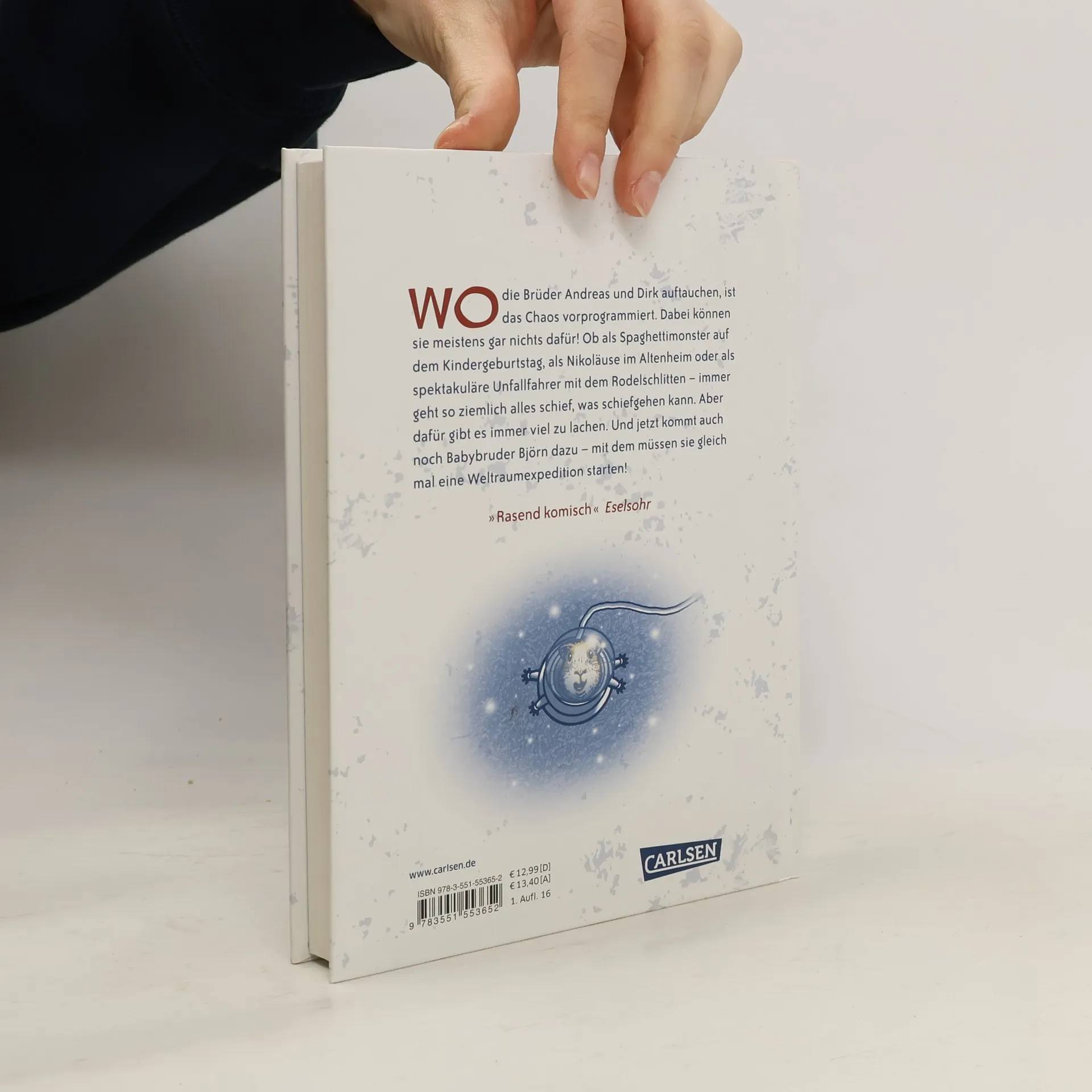 Wo die Brüder Andreas und Dirk auftauchen, ist das Chaos vorprogrammiert. Dabei können sie meistens gar nichts dafür! Ob als Spaghettimonster auf dem Kindergeburtstag, als Nikoläuse im Altenheim oder als spektakuläre Unfallfahrer mit dem Rodelschlitten – immer geht so ziemlich alles schief, was schiefgehen kann. Aber dafür gibt es immer viel zu lachen. Und jetzt kommt auch noch Babybruder Björn dazu – mit dem müssen sie gleich mal eine Weltraumexpedition starten!