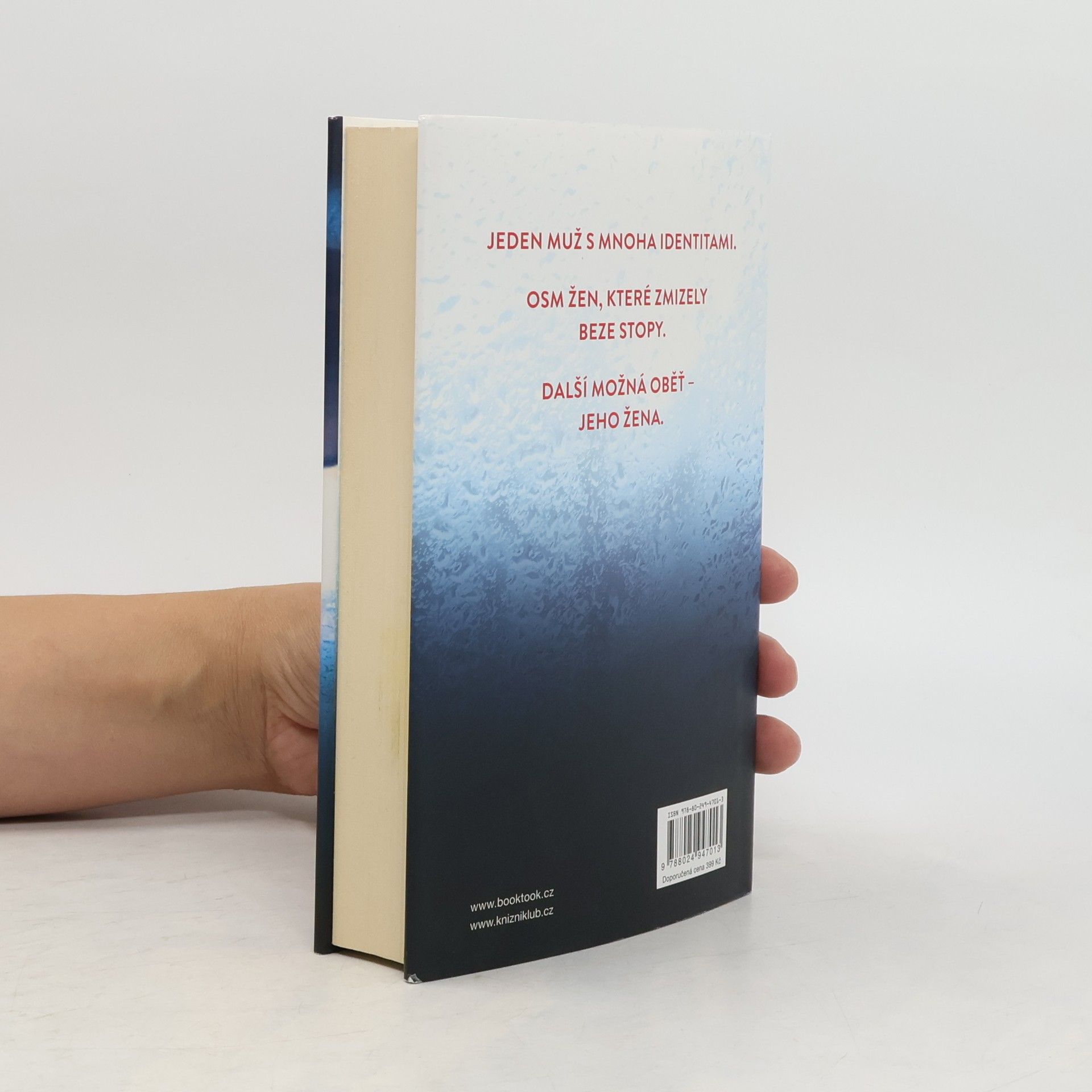 Jeden muž s mnoha identitami. Osm žen, které zmizely beze stopy. Další možná obět...jeho žena. Agent FBI Drex Easton je neúnavně hnán jediným cílem: dostat podvodníka dříve známého jako Weston Graham. Za posledních třicet let vystřídal Weston mnoho jmen a bezpočet převleků, aby vylákal bohatství z osmi zámožných žen, které pak zmizely beze stopy. Jediný společný znak v životě všech obětí je nový muž, který vždy rovněž zmizí a nezanechá žádný důkaz o své existenci. Drex je přesvědčen, že všechny tyto ženy zabil sociopat Weston Graham. Ale pokaždé, když se Drex přiblíží k tomu, aby ho chytil, Weston změní identitu a znovu mu unikne. Teď poprvé v dlouhé hře na kočku a myš má Drex podezřelého konečně v dohledu. Jasper Ford je atraktivní a okouzlující muž, který se nedávno oženil s úspěšnou podnikatelkou Talií Shaferovou. Drex se jim vloudí do života jako jejich nový soused, aby je mohl z blízka sledovat. Čím je k páru blíž, tím více je přesvědčen, že Jasper je přesně ten chytrý a nemilosrdný predátor, kterého tak dlouho hledá, a zároveň že jeho vlastní přitažlivost k Talii může ohrozit celé vyšetřování. Toto je Drexova poslední šance, jak dostat svého mazaného nepřítele dřív, než bude znovu vraždit a podaří se mu navždy uniknout spravedlnosti. Nejdřív však musí zjistit, zda je Talia bezcitným spolupachatelem...nebo další obětí.
