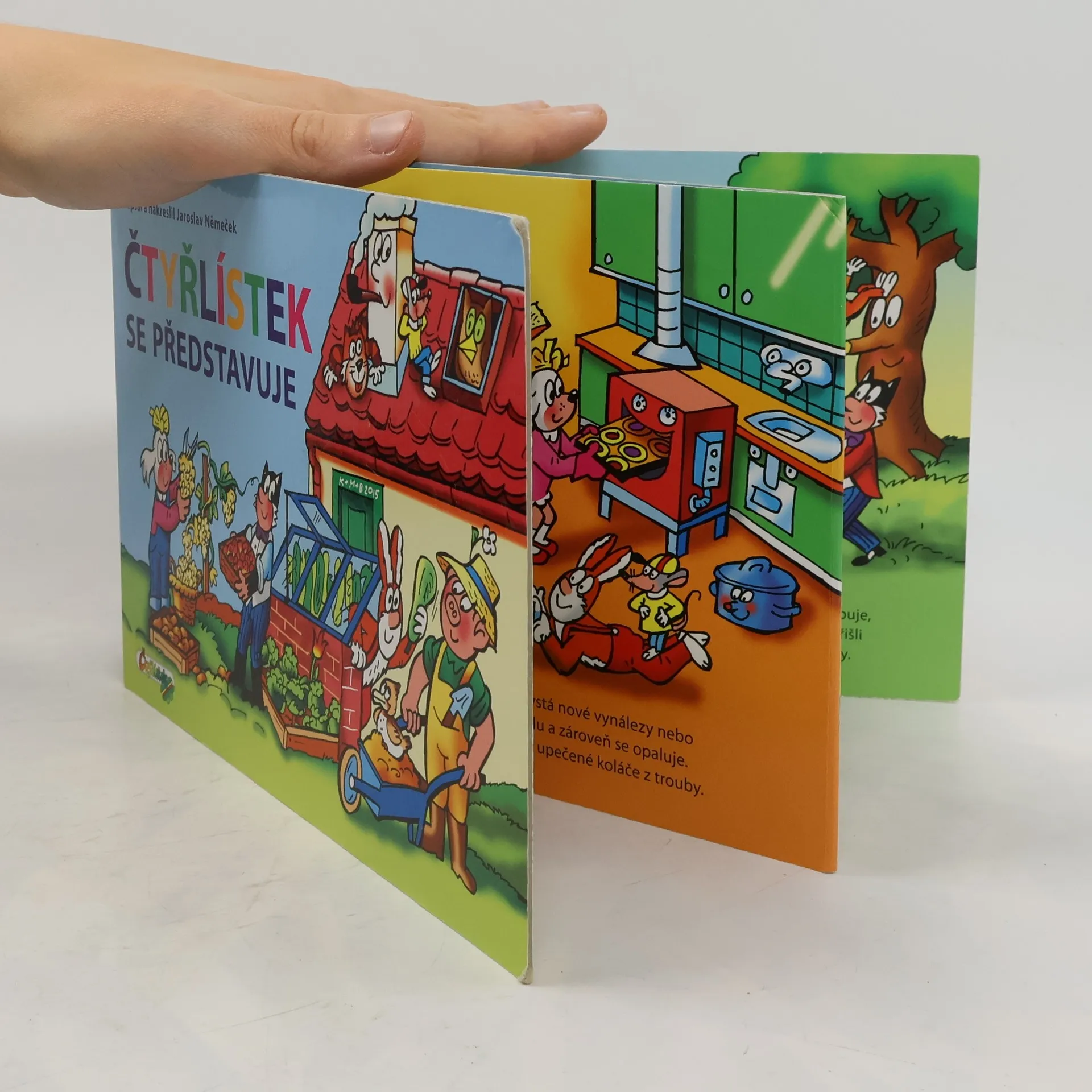 Klasické skládací leporelo, jehož námětem je život u Čtyřlístku v průběhu kalendářního roku. Obrázky jsou doprovázeny krátkými jednoduchým texty.