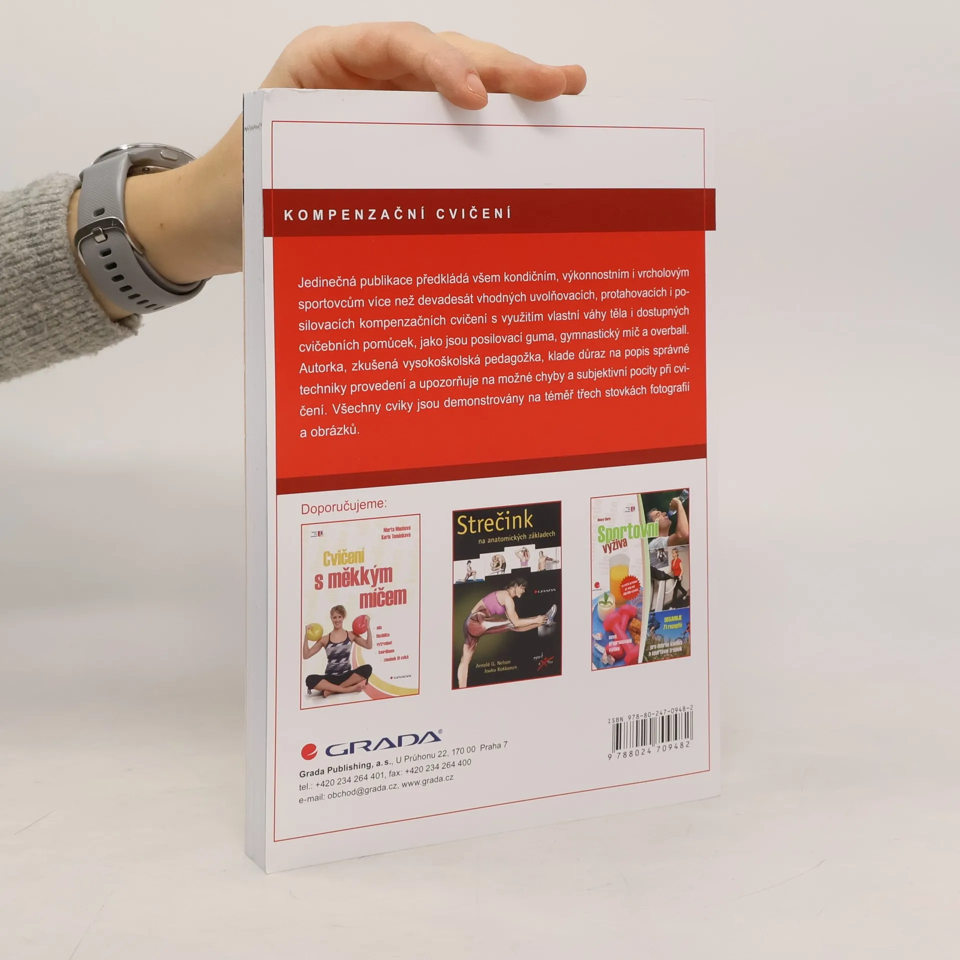 Jedinečná publikace předkládá všem kondičním, výkonnostním i vrcholovým sportovcům více než devadesát vhodných uvolňovacích, protahovacích i posilovacích kompenzačních cvičení s využitím vlastní váhy těla i dostupných cvičebních pomůcek, jako jsou posilovací guma, gymnastický míč a overball. Autorka, zkušená vysokoškolská pedagožka, klade důraz na popis správné techniky provedení a upozorňuje na možné chyby a subjektivní pocity při cvičení. Všechny cviky jdou demonstrovány na téměř třech stovkách fotografií a obrázků.