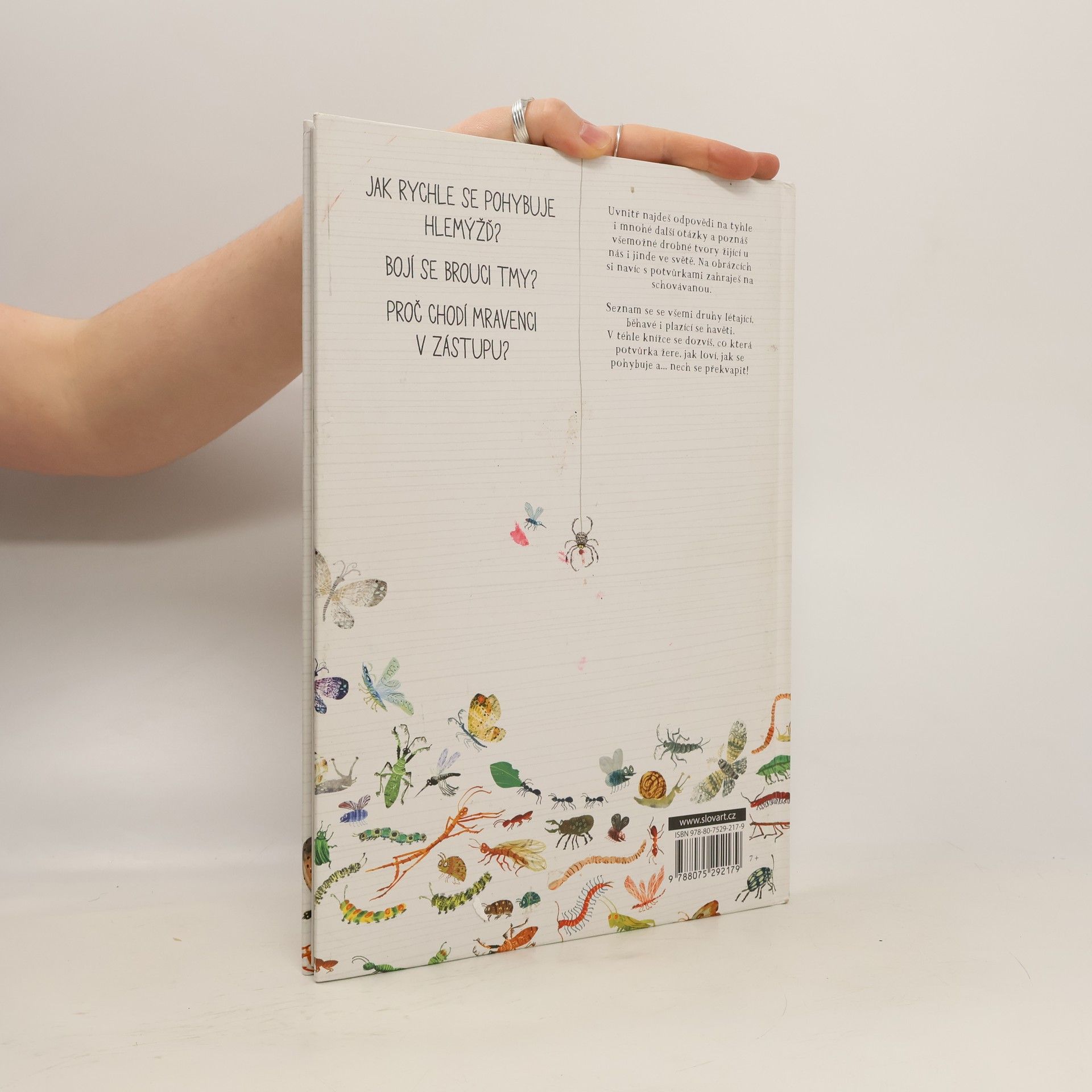 Brouci, mouchy, žížaly a jiné potvůrky. Jak rychle se pohybuje hlemýžď? Bojí se brouci tmy? Proč chodí mravenci v zástupu? Na tyto i mnohé další otázky odpovídá tahle malá velká kniha pro malé i větší čtenáře. Její půvabné a velkorysé ilustrace se jen hemží různými roztomilými a podivuhodnými potvůrkami. Pojďte se dozvědět spoustu zajímavých informací a perliček ze života bezobratlých a ještě si u toho s havětí zahrát na schovávanou.