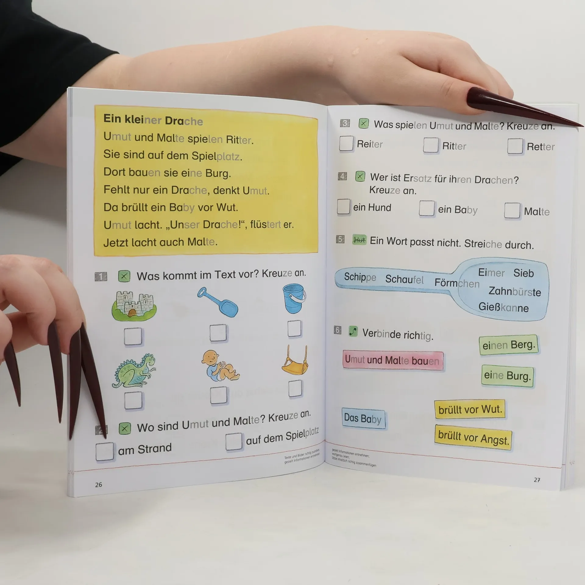 Kinder mit Problemen speziell beim sinnentnehmenden, flüssigen Lesen können mit diesen Heften den Lesefluss und das Textverständnis trainieren. Flüssig lesen zu können und dabei Textinhalte wirklich zu erfassen, ist eine der wichtigsten Schlüsselqualifikationen. Dabei ist die kindliche Entwicklungsphase der Grundschulzeit ganz entscheidend, in der Lesekompetenz fürs Leben erworben wird. In den weiterführenden Schulen wird Lesekompetenz in allen Fächern vorausgesetzt. Die Hefte der Reihe „Übungsheft Lesen“ führen die Kinder behutsam und spielerisch heran, das genaue Lesen, das Erfassen von Inhalten und die gezielte Entnahme von Information zu trainieren. Mit viel Spaß wird Lesekompetenz aufgebaut. • Kurze spannende, erzählende Texte • Sachtexte aus dem Interessensgebiet von Grundschülern • Nicht-lineare Texte (Listen, Lagepläne …) • Aufgaben in zwei Kompetenzstufen • Lesebonbons in Form von Knobelaufgaben Auf jeweils einer Doppelseite finden die Kinder eine übersichtliche in sich geschlossene Lerneinheit, die aus einem Text und verschiedenen dazugehörenden Aufgaben besteht.
