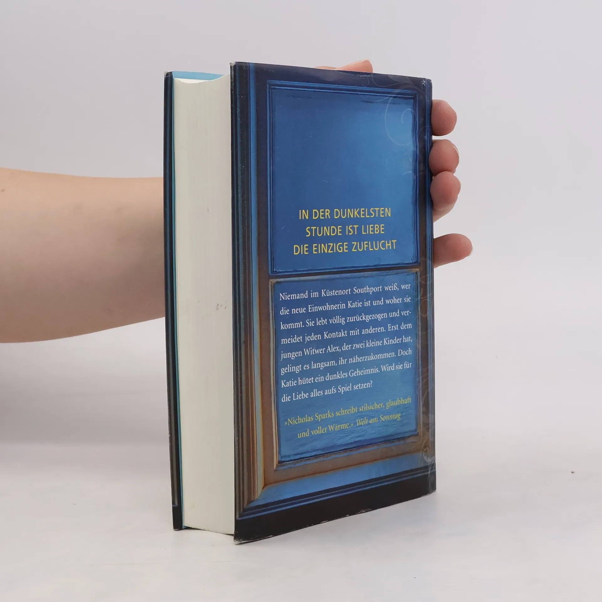 Niemand schreibt über die Liebe wie Nicholas Sparks Niemand im Küstenort Southport weiß, wer die neue Einwohnerin Katie ist und woher sie kommt. Sie lebt komplett zurückgezogen und vermeidet jeden Kontakt mit anderen. Erst dem jungen Witwer Alex, der zwei kleine Kinder hat, gelingt es langsam und behutsam, ihr näherzukommen. Doch Katie hütet ein dunkles Geheimnis. Wird sie für die Liebe alles aufs Spiel setzen?
