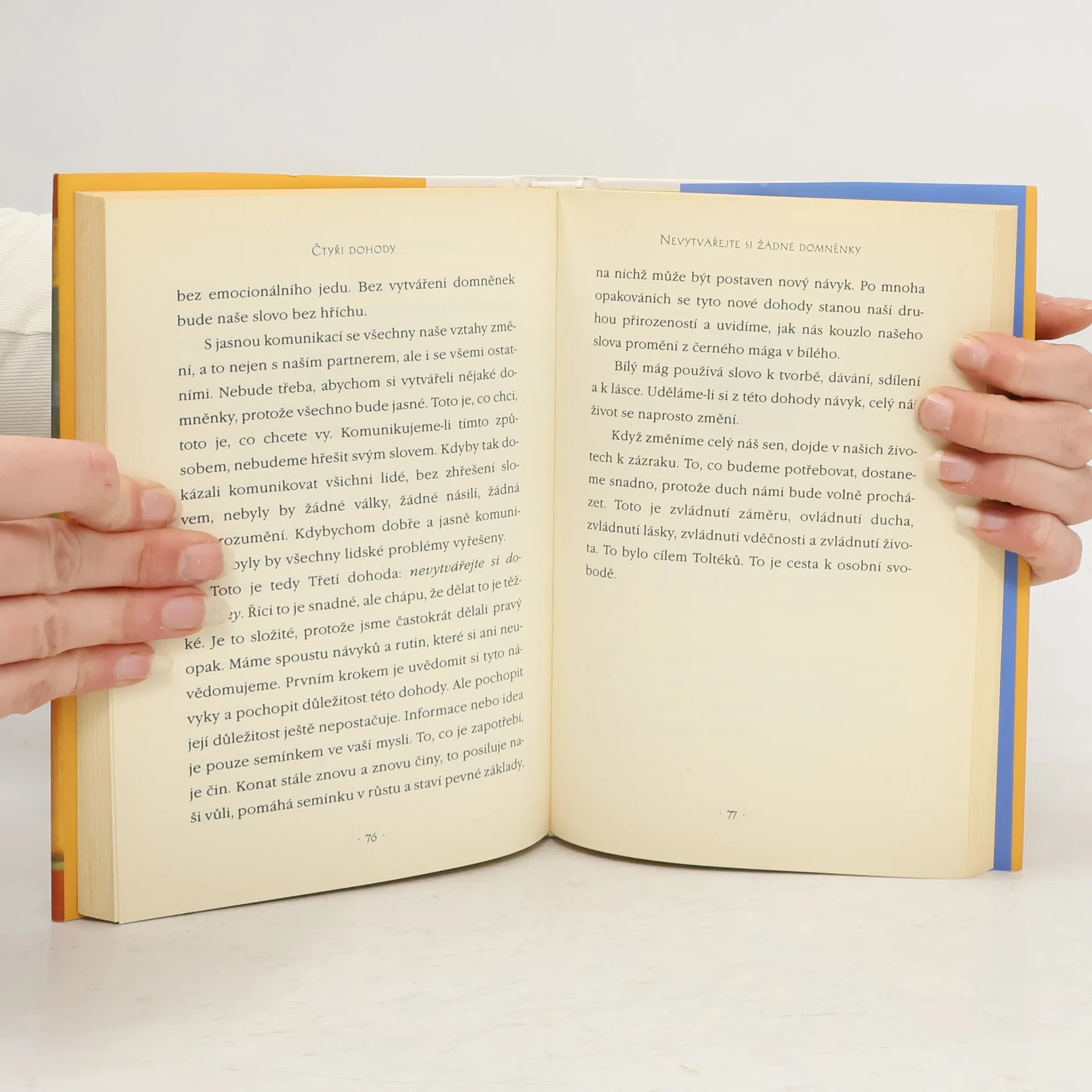Praktický průvodce osobní svobodou. Ve Čtyřech dohodách odhaluje don Miguel Ruiz zdroj omezujících názorů, které nás připravují o radost a vedou k zbytečnému utrpení. Čtyři dohody, založené na staré toltécké moudrosti, nabízejí silný kód chování, který dokáže rychle proměnit náš život v nový prožitek svobody, opravdového štěstí a lásky.