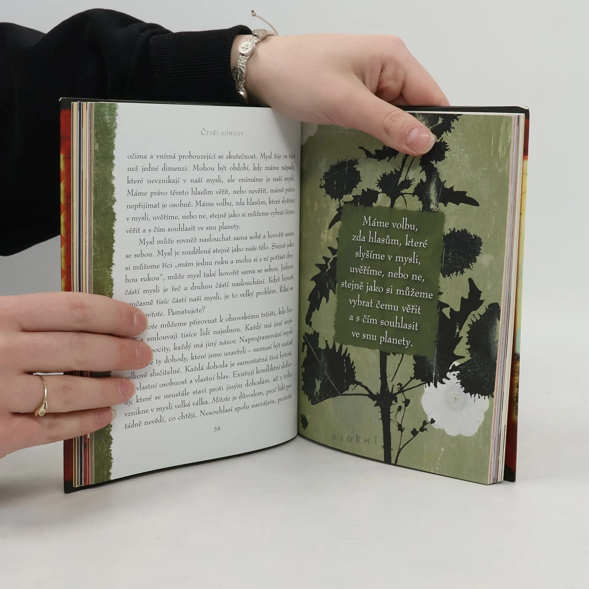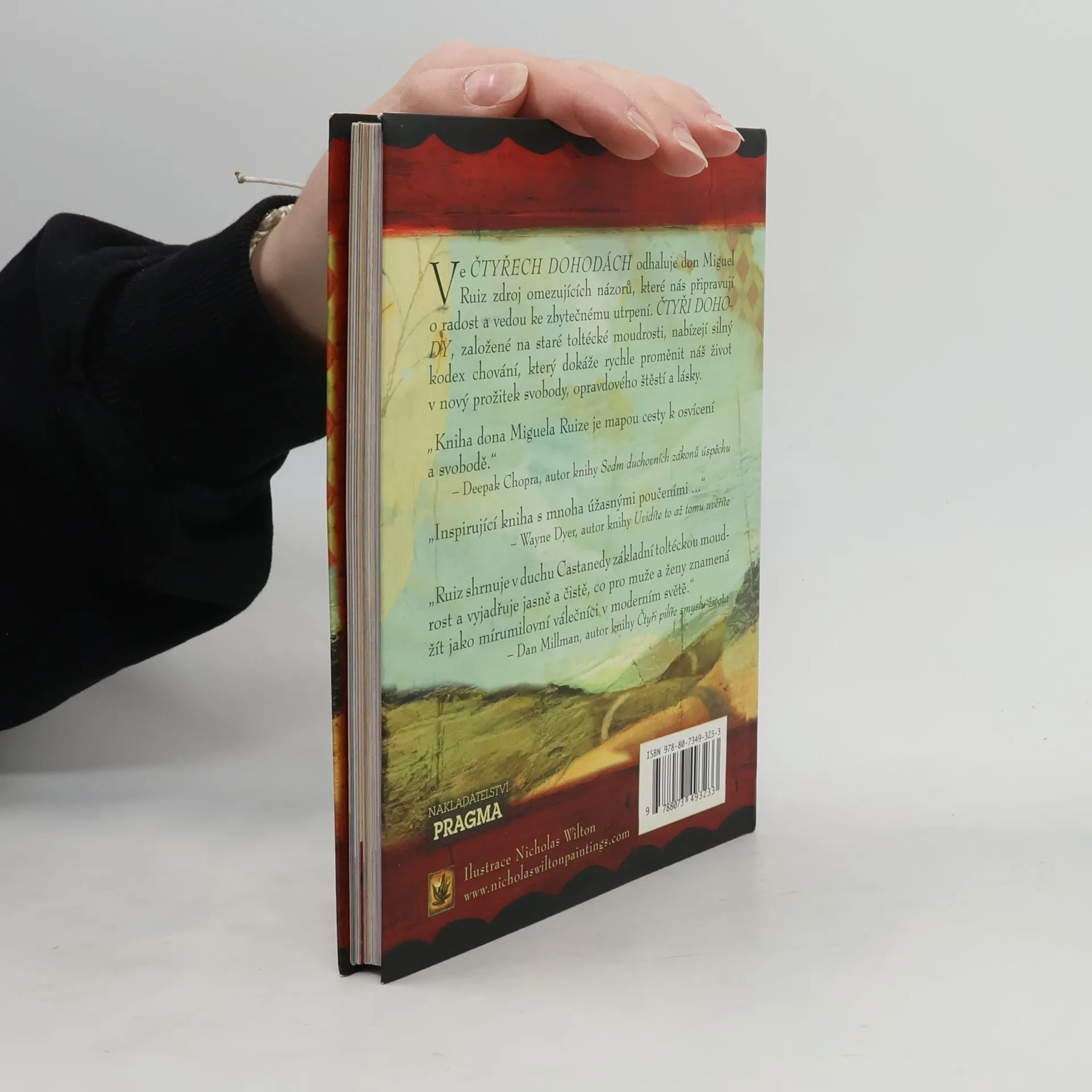 Ilustrovaná kniha. Vychází k 15. výročí prvního vydání. Ve Čtyřech dohodách odhaluje Don Miguel Ruiz zdroj omezujících názorů, které nás připravují o radost a vedou ke zbytečnému utrpení. Čtyři dohody, založené na staré toltécké moudrosti, nabízejí silný kód chování, který dokáže rychle proměnit náš život v nový prožitek svobody, opravdového štěstí a lásky. Ruiz shrnuje v duchu Castanedy základní toltéckou moudrost a vyjadřuje jasně a čistě, co pro muže a ženy znamená žít jako mírumilovní válečníci v moderním světě. V toltécké tradici vede naguál člověka k osobní svobodě. Don Miguel Ruiz je naguál z rodu Rytířů orla a věnuje se předávání svých znalostí učení starých Toltéků.