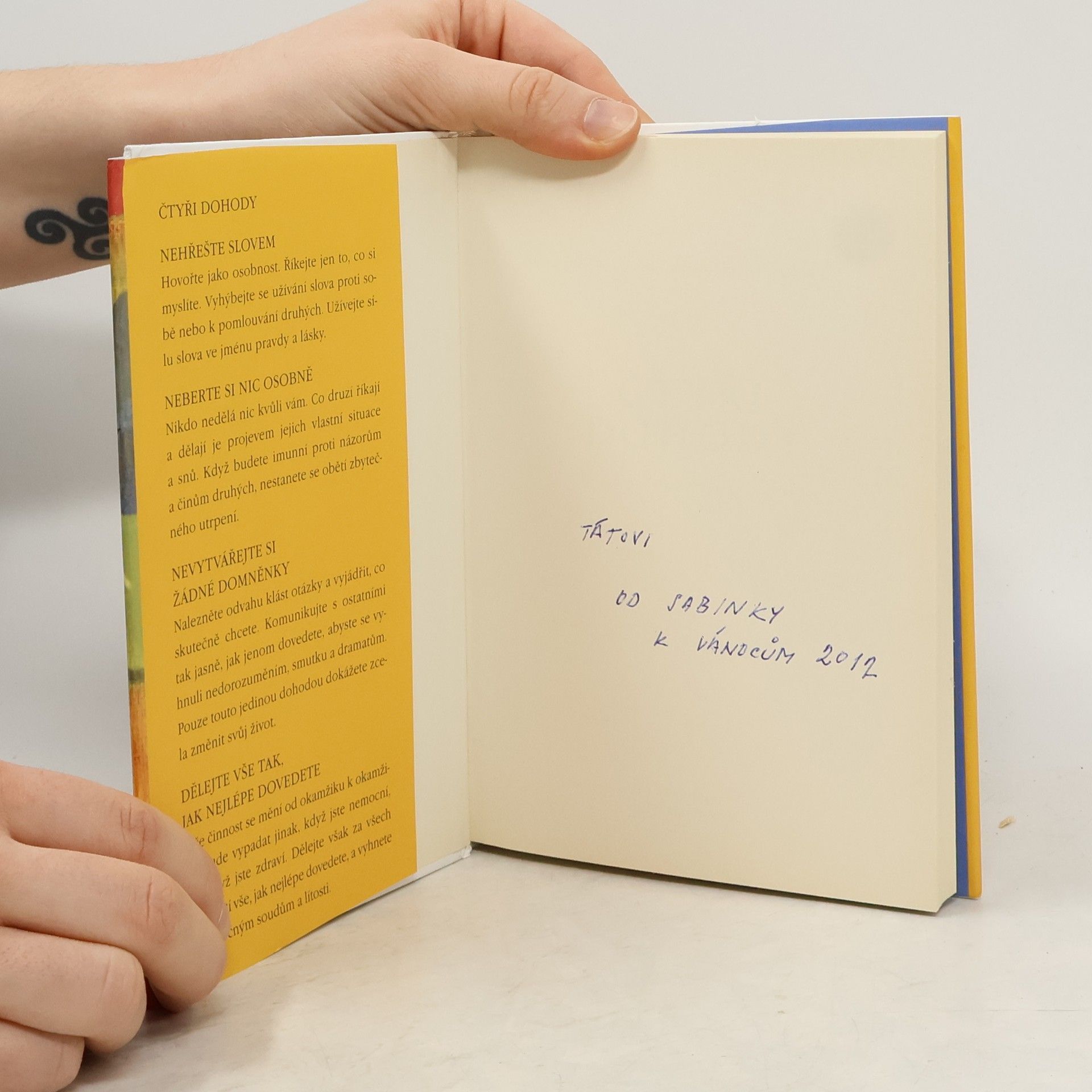 Praktický průvodce osobní svobodou. Ve Čtyřech dohodách odhaluje don Miguel Ruiz zdroj omezujících názorů, které nás připravují o radost a vedou k zbytečnému utrpení. Čtyři dohody, založené na staré toltécké moudrosti, nabízejí silný kód chování, který dokáže rychle proměnit náš život v nový prožitek svobody, opravdového štěstí a lásky.
