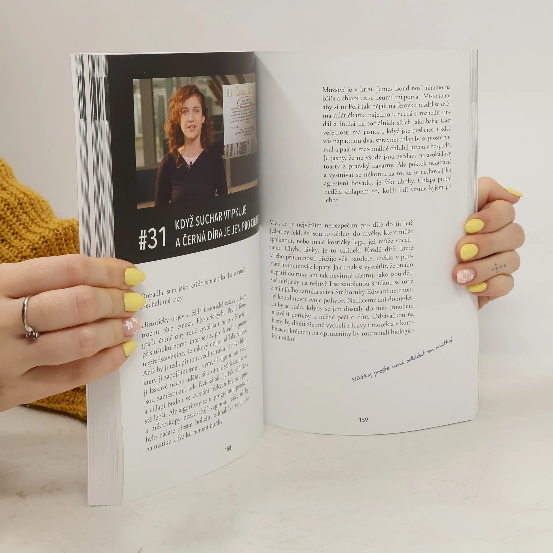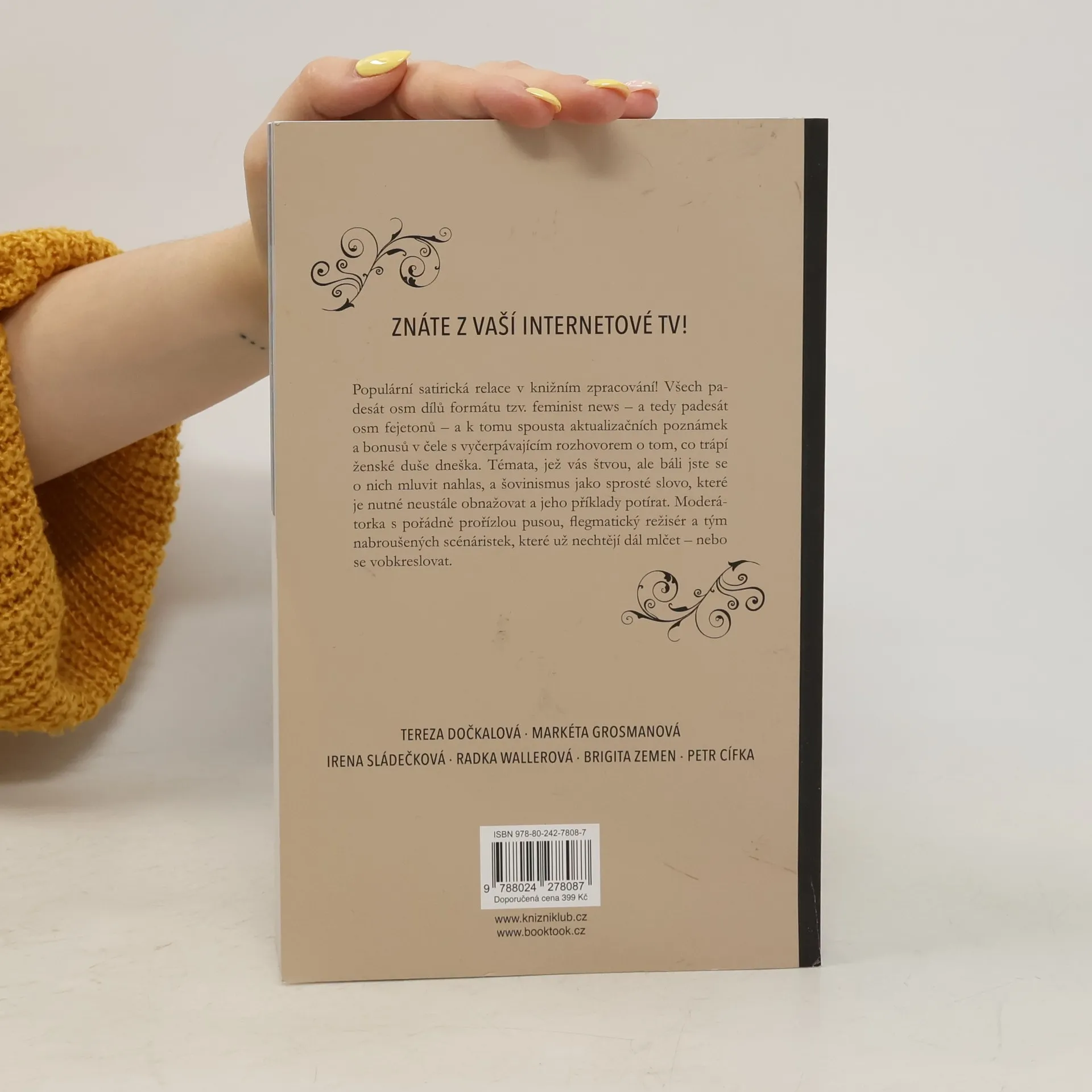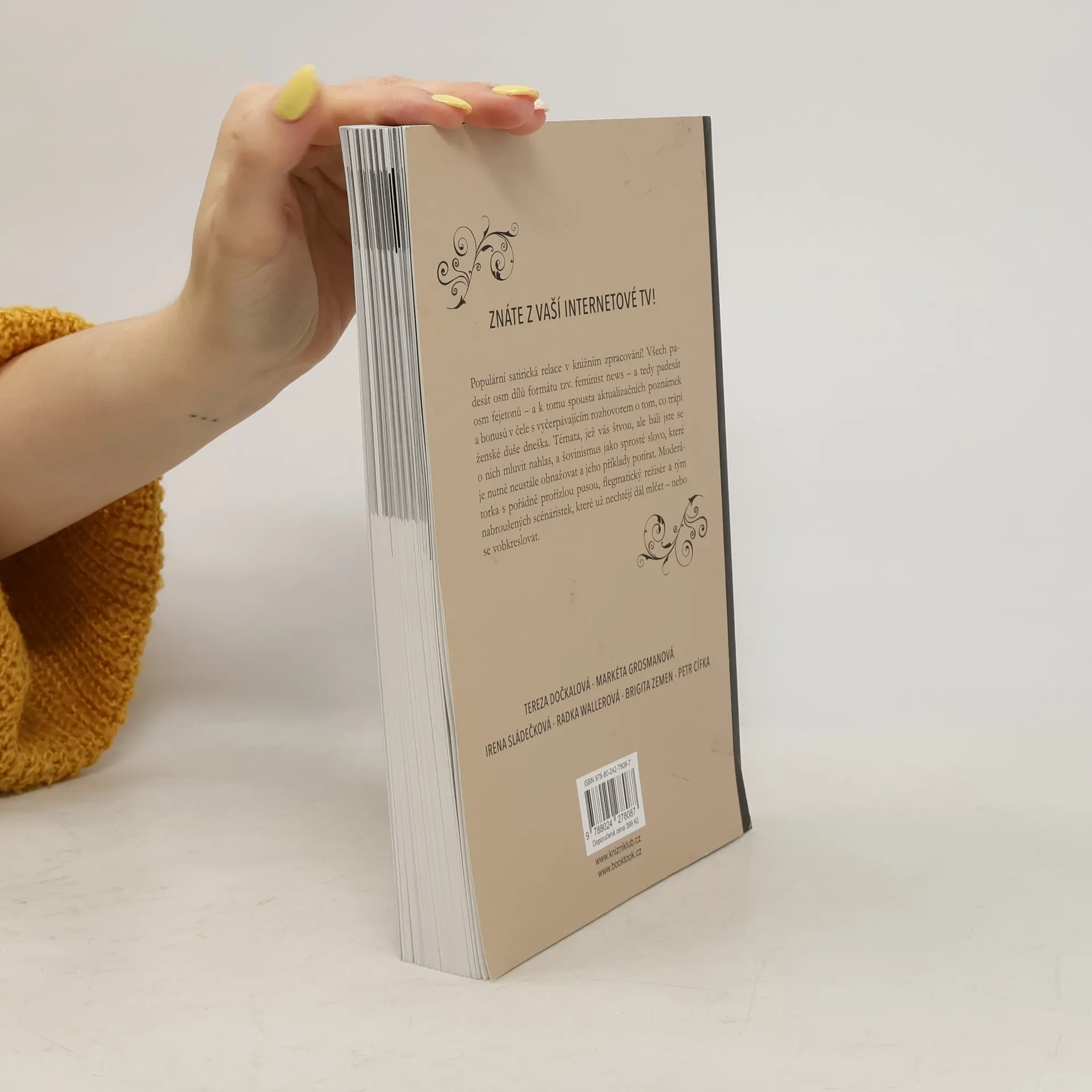 Populární satirická relace v knižním zpracování! Padesát osm dílů formátu feminist news, 58 fejetonů a několik bonusů. Témata, která vás štvou, ale báli jste se o nich mluvit nahlas, a šovinismus jako sprosté slovo. Moderátorka s pořádně prořízlou pusou a tým nabroušených scénáristek, které už nechtějí dál mlčet – nebo se vobkreslovat. Obsahuje práce autorů: Cífka Petr, Dočkalová Tereza, Zemen Brigita, Grosmanová Markéta, Wallerová Radka, Sládečková Irena