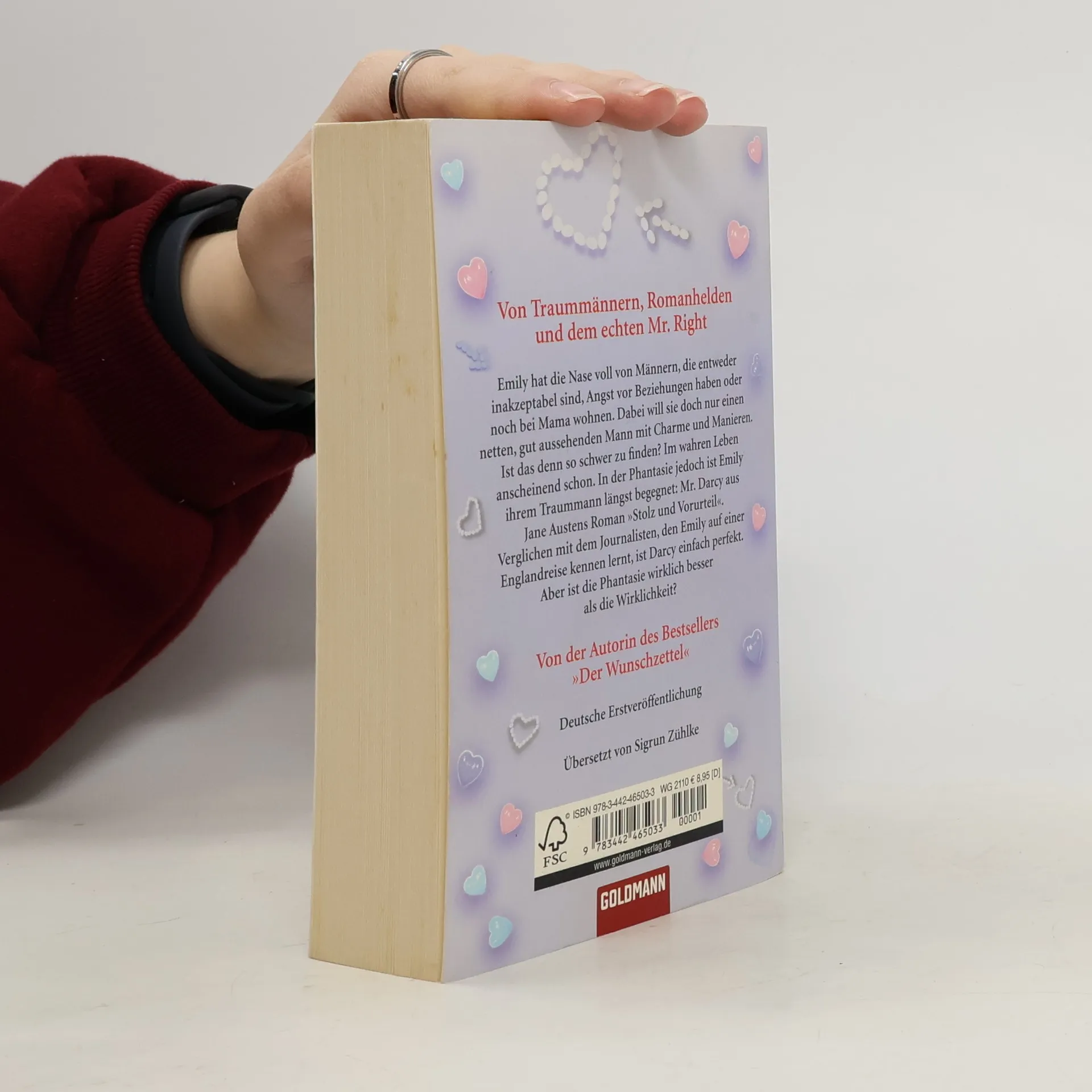Ein Roman über Traummänner, Romanhelden und den echten Mr. RightEmily hat die Nase voll von Männern, die entweder inakzeptabel sind, Angst vor Beziehungen haben oder noch bei Mama wohnen. Dabei will sie doch nur einen netten, gut aussehenden Mann mit Charme und Manieren. Ist das denn so schwer zu finden? Im wahren Leben anscheinend schon. In der Phantasie jedoch hat Emily ihren Traummann längst gefunden: Mr. Darcy aus Jane Austens Roman „Stolz und Vorurteil“. Verglichen mit dem Journalisten, den Emily auf einer Englandreise kennen lernt, ist Darcy einfach perfekt. Aber ist die Phantasie wirklich besser als die Wirklichkeit? Herrlich komisch und voller Gefühl: eine zauberhafte romantische Komödie!