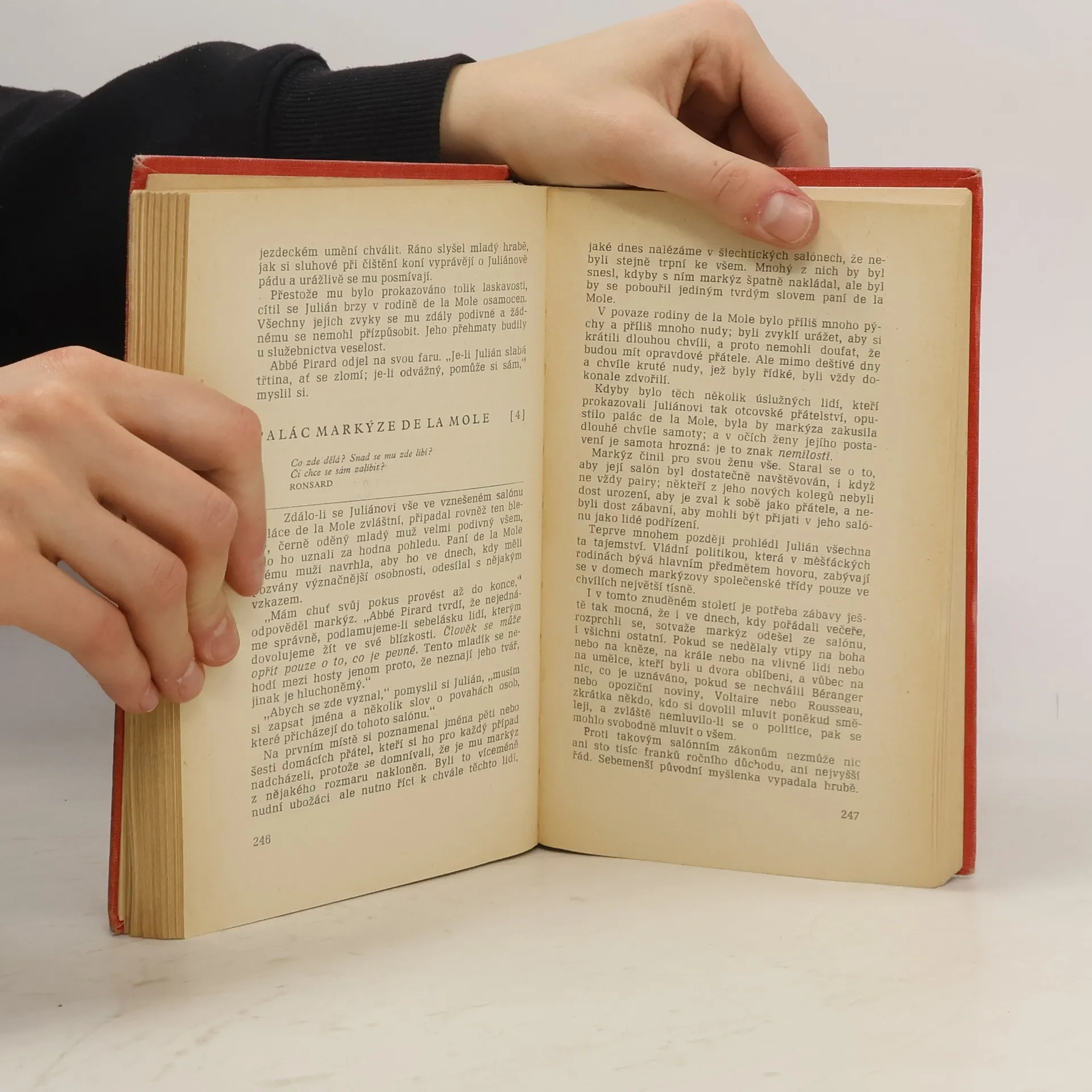 Příběh Juliána Sorela - ctižádostivce a učenlivého intrikána, jenž ale v rozhodujících okamžicích jedná podle diktátu srdce.