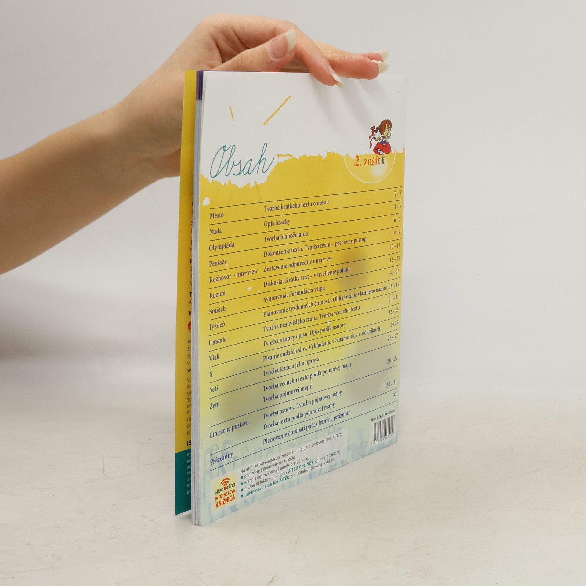 Dvojdielny pracovný zošit je zameraný na precvičovanie pisateľských spôsobilostí žiakov a aktívnu tvorbu textov. Je súčasťou ucelenej série pracovných zošitov Písanie a slohové cvičenia pre 2., 3. a 4. ročník. Skladá sa zo samostatných dvojstrán určených jednotlivým písmenám abecedy. Úlohy sú zostavené tak, aby sa žiaci naučili používať písmo ako prostriedok pri písomnej komunikácii. Dôraz je kladený na aktívne písanie s porozumením. Pracovný zošit je tematicky zameraný na predmety, ich históriu a účel, na menej známe slová – pojmy, s ktorými žiaci v zošite aktívne pracujú. Korešponduje s učivom v učebnici slovenského jazyka pre daný ročník.