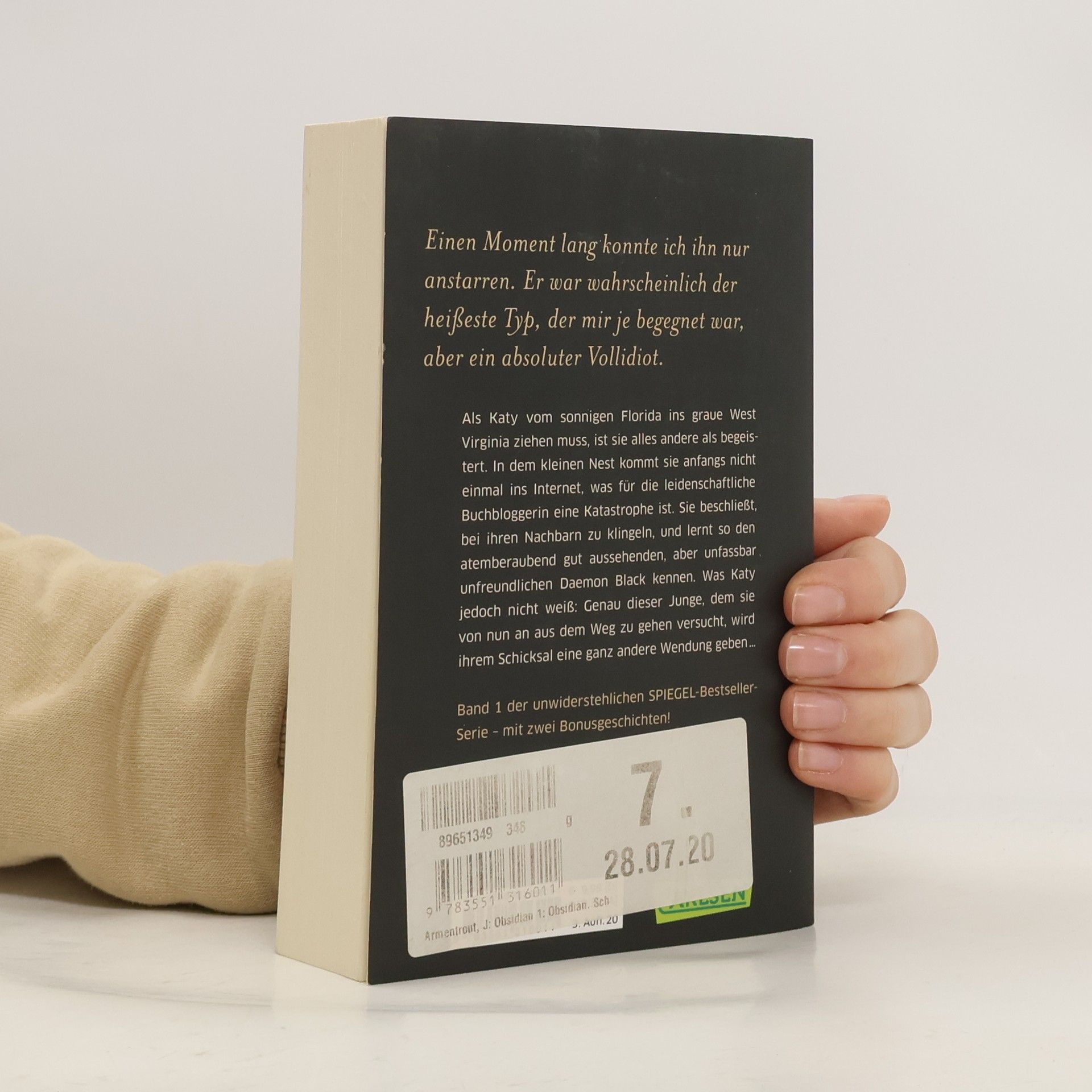 Als Katy vom sonnigen Florida ins graue West Virginia ziehen muss, ist sie alles andere als begeistert. In dem kleinen Nest kommt sie anfangs nicht einmal ins Internet, was für die leidenschaftliche Buchbloggerin eine Katastrophe ist. Sie beschließt, bei ihren Nachbarn zu klingeln, und lernt so den atemberaubend gut aussehenden, aber unfassbar unfreundlichen Daemon Black kennen. Was Katy jedoch nicht weiß, ist, dass genau dieser Junge, dem sie von nun an aus dem Weg zu gehen versucht, ihrem Schicksal eine ganz andere Wendung geben wird … Dies ist der erste Band der Obsidian-Serie von Jennifer L. Armentrout. Alle Bände der unwiderstehlichen Bestsellerserie: Obsidian. SchattendunkelOnyx. SchattenschimmerOpal. SchattenglanzOrigin. SchattenfunkeOpposition. Schattenblitz Alle Bände der dazugehörigen Oblivion-Serie:Oblivion 1: Lichtflüstern (Obsidian aus Daemons Sicht erzählt)Oblivion 2: Lichtflimmern (Onyx aus Daemons Sicht erzählt)Oblivion 3: Lichtflackern (Opal aus Daemons Sicht erzählt) Alle bisher erschienenen Bände der Spin-off-Serie »Revenge«:Revenge. SternensturmRebellion. SchattensturmRedemption. Nachtsturm