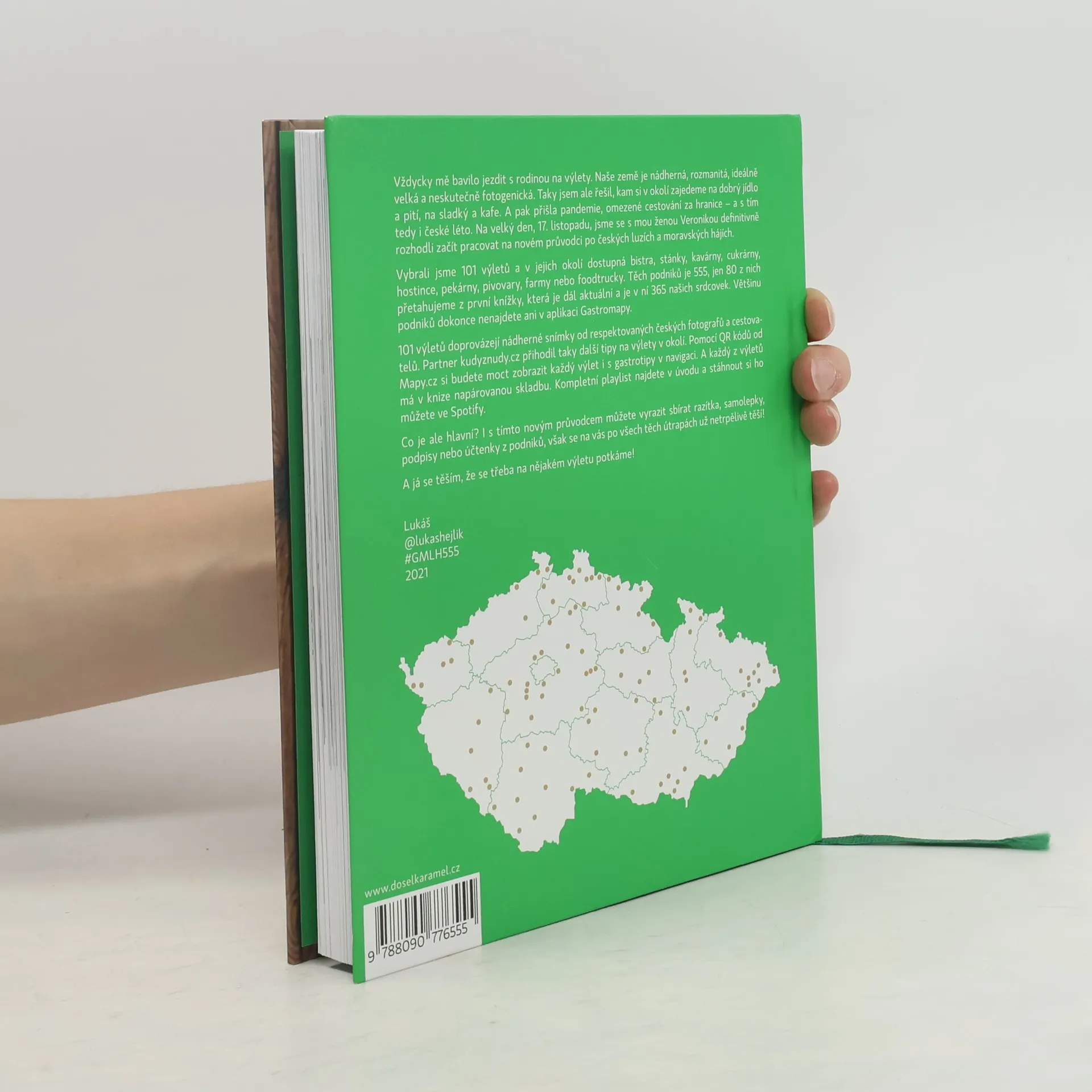 Autor v knize 555 – Výlety s Gastromapou Lukáše Hejlíka vyráží na 100 nádherných míst po celé České republice a mapuje v jejich okolí dostupné podniky, kam můžete zajít na fajn jídlo, kafe, sladký, pivo nebo třeba večerní drink. A co všechno kromě 555 gastrotipů pro vás Lukáš vysype ze svého cestovatelského báglu? Každý výlet popíše a vždy ho doprovodí fotografií od respektovaných českých fotografů a cestovatelů. Partner Kudyznudy.cz přihodí další možnosti, kam se v dané lokalitě podívat. Pomocí QR kódu Mapy.cz si budete moct stáhnout celý výlet i Lukášovy tipy do navigace. A mimochodem, každý z výletů bude mít v knize napárovanou skladbu, kterou lze načíst v aplikaci Spotify. A co je hlavní? I s novou knihou můžete vyrazit sbírat razítka ze svých návštěv, však všechny ty skvělé podniky se na vás už netrpělivě těší! Gastroturistika může začít!