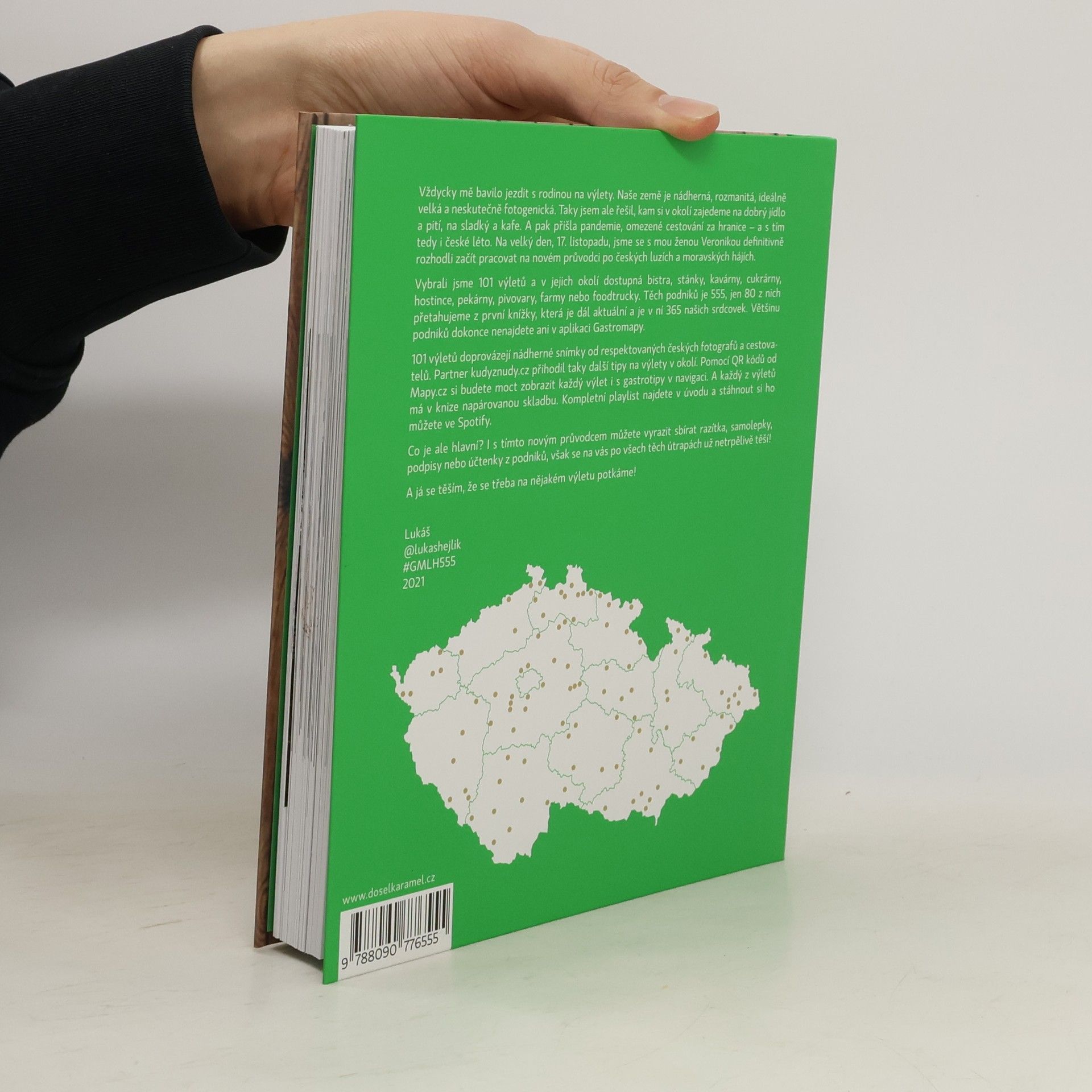 Autor v knize 555 – Výlety s Gastromapou Lukáše Hejlíka vyráží na 100 nádherných míst po celé České republice a mapuje v jejich okolí dostupné podniky, kam můžete zajít na fajn jídlo, kafe, sladký, pivo nebo třeba večerní drink. A co všechno kromě 555 gastrotipů pro vás Lukáš vysype ze svého cestovatelského báglu? Každý výlet popíše a vždy ho doprovodí fotografií od respektovaných českých fotografů a cestovatelů. Partner Kudyznudy.cz přihodí další možnosti, kam se v dané lokalitě podívat. Pomocí QR kódu Mapy.cz si budete moct stáhnout celý výlet i Lukášovy tipy do navigace. A mimochodem, každý z výletů bude mít v knize napárovanou skladbu, kterou lze načíst v aplikaci Spotify. A co je hlavní? I s novou knihou můžete vyrazit sbírat razítka ze svých návštěv, však všechny ty skvělé podniky se na vás už netrpělivě těší! Gastroturistika může začít!