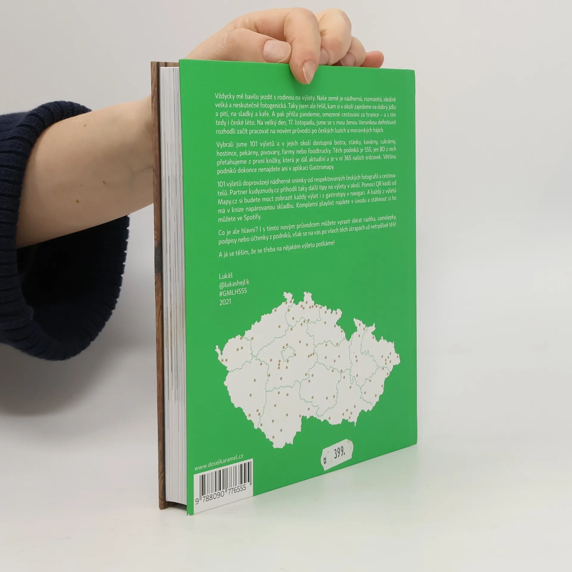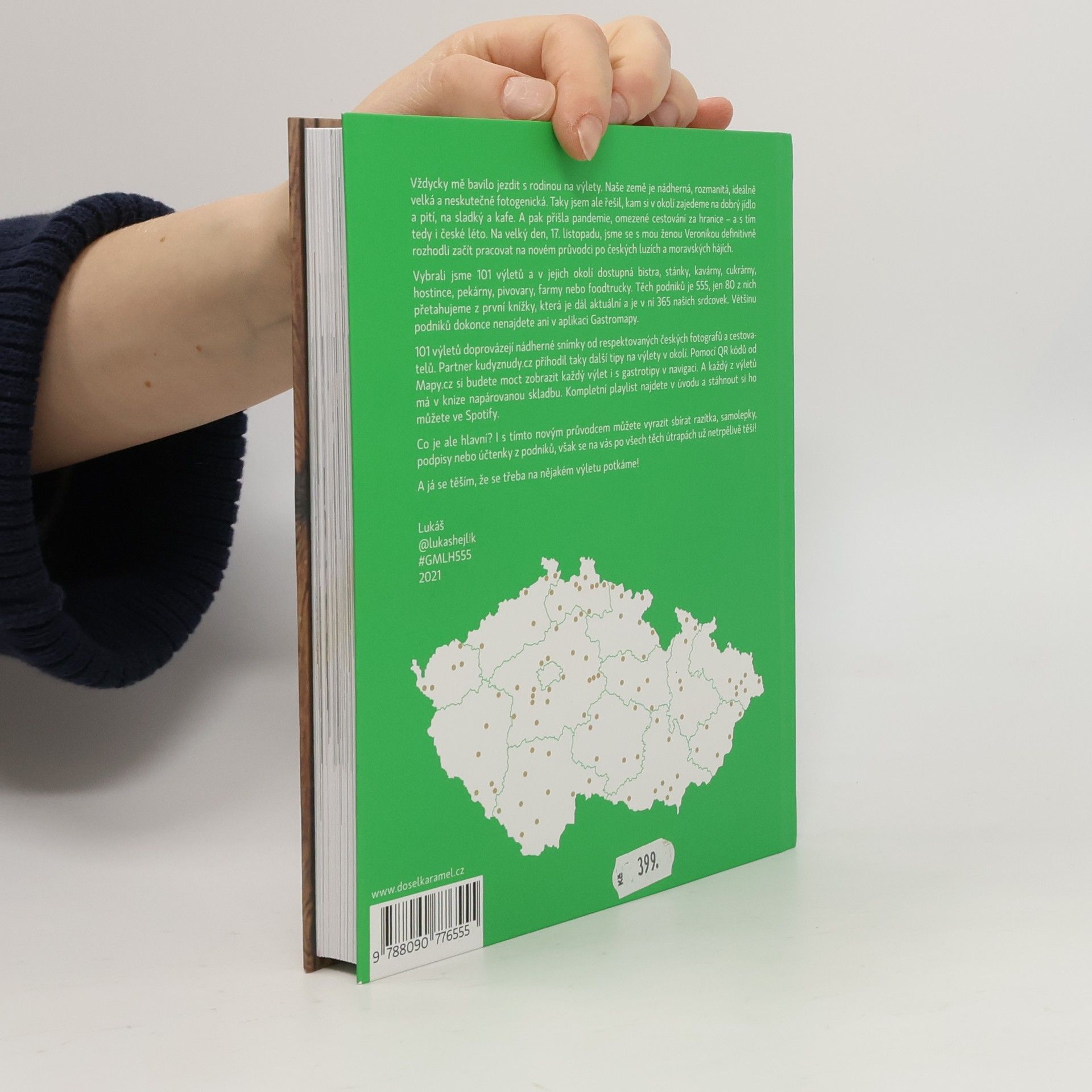 Autor v knize 555 – Výlety s Gastromapou Lukáše Hejlíka vyráží na 100 nádherných míst po celé České republice a mapuje v jejich okolí dostupné podniky, kam můžete zajít na fajn jídlo, kafe, sladký, pivo nebo třeba večerní drink. A co všechno kromě 555 gastrotipů pro vás Lukáš vysype ze svého cestovatelského báglu? Každý výlet popíše a vždy ho doprovodí fotografií od respektovaných českých fotografů a cestovatelů. Partner Kudyznudy.cz přihodí další možnosti, kam se v dané lokalitě podívat. Pomocí QR kódu Mapy.cz si budete moct stáhnout celý výlet i Lukášovy tipy do navigace. A mimochodem, každý z výletů bude mít v knize napárovanou skladbu, kterou lze načíst v aplikaci Spotify. A co je hlavní? I s novou knihou můžete vyrazit sbírat razítka ze svých návštěv, však všechny ty skvělé podniky se na vás už netrpělivě těší! Gastroturistika může začít!