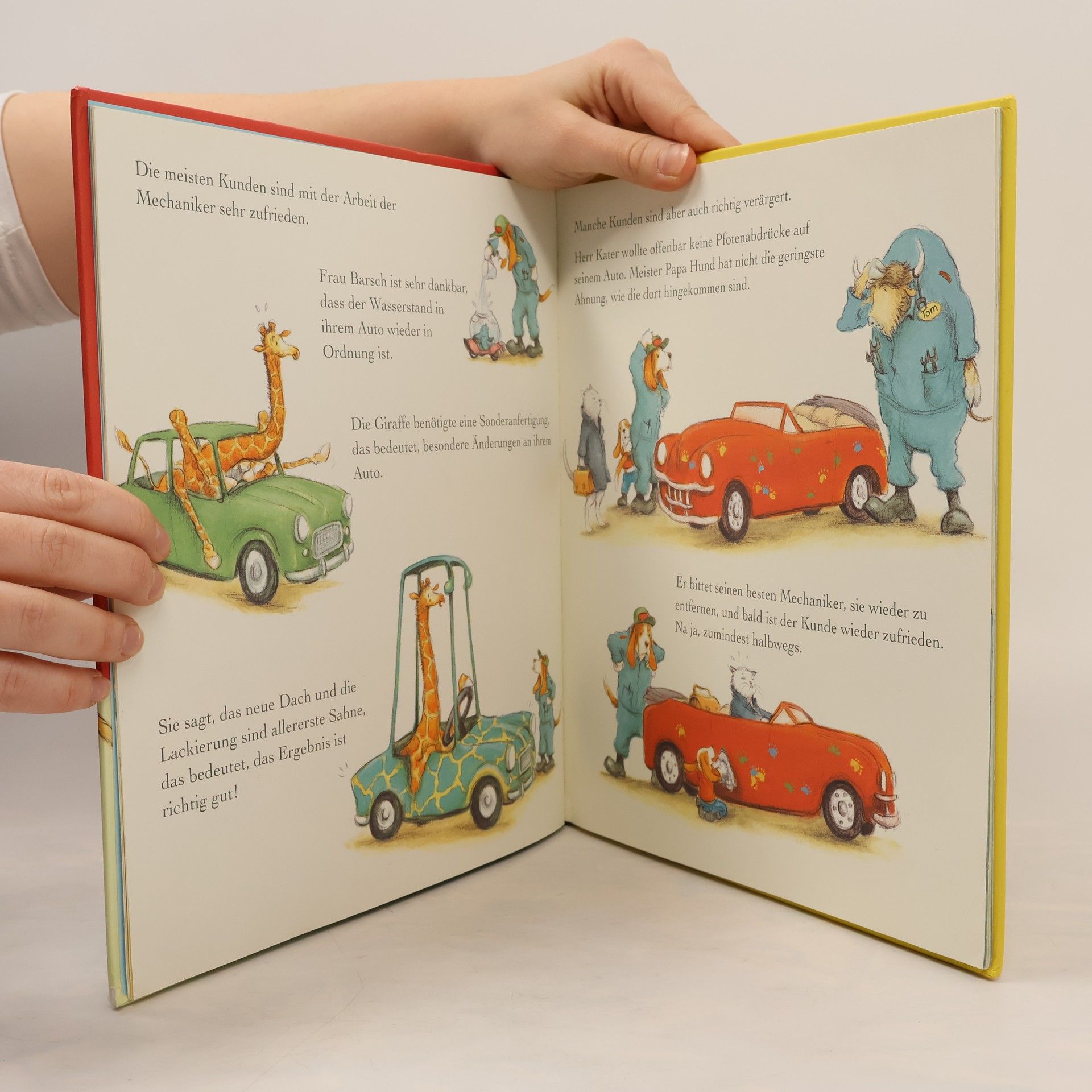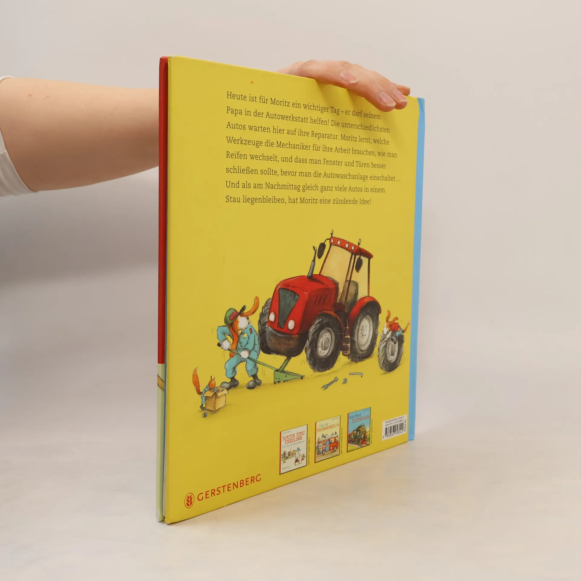 Heute ist für Moritz ein wichtiger Tag - er darf seinem Papa in der Autowerkstatt helfen! Die unterschiedlichsten Autos warten hier auf ihre Reparatur. Die Mechaniker haben alle Hände voll zu tun: Ein Elefant hat sich aus Versehen auf statt in sein Auto gesetzt und die Giraffe benötigt eine Sonderanfertigung. Moritz lernt, welche Werkzeuge die Mechaniker für ihre Arbeit brauchen, wie man Reifen wechselt und dass man Fenster und Türen besser schließen sollte, bevor man die Autowaschanlage einschaltet. Und als am Nachmittag gleich ganz viele Autos in einem Stau liegen bleiben, hat Moritz eine zündende Idee ...§Das ideale Buch für alle kleinen Autofans!