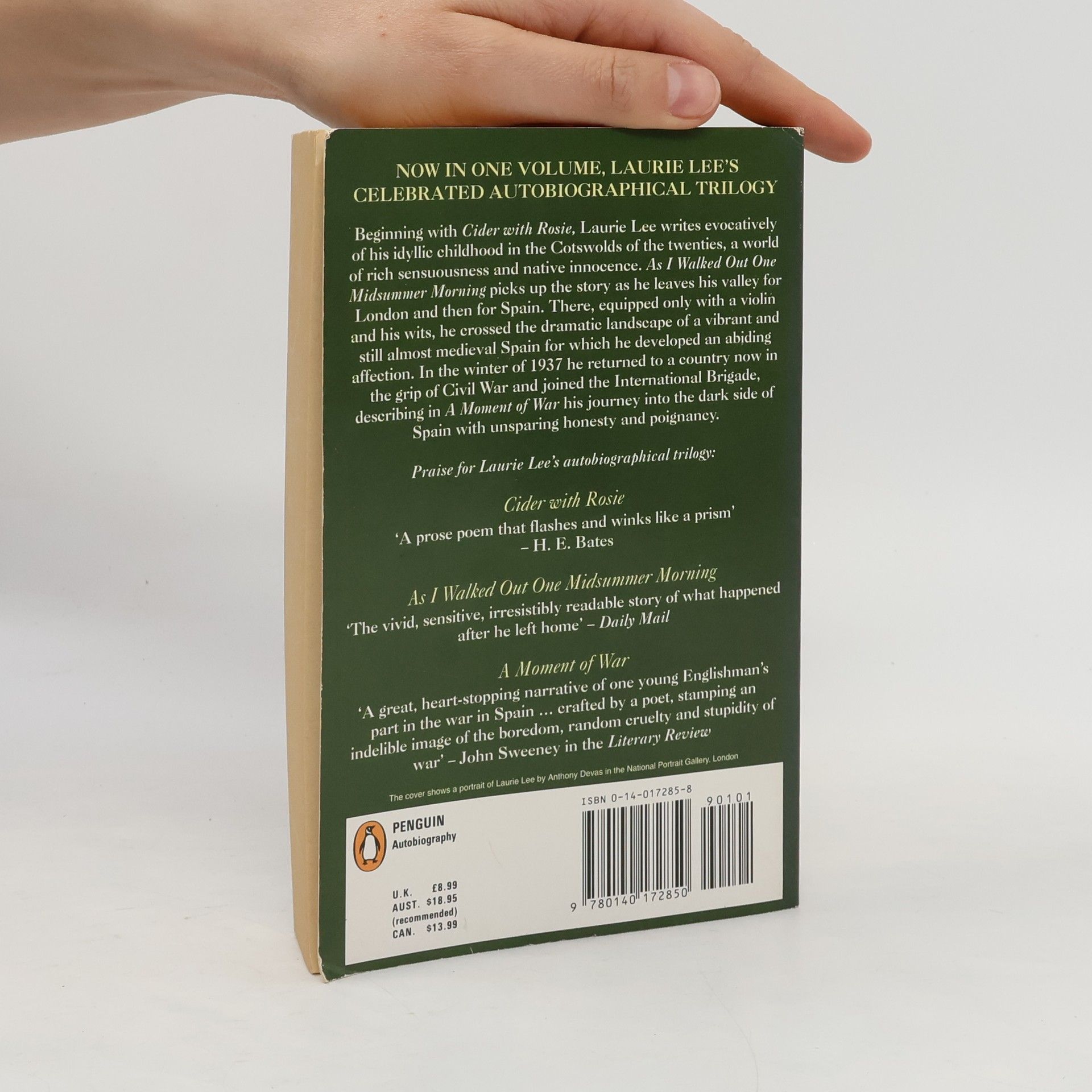 Spanning the first twenty-three years of his remarkable life, Laurie Lee's celebrated autobiographical trilogy is presented here in one delightful volume. Beginning with Cider with Rosie, Laurie Lee writes evocatively of his idyllic childhood in the Cotswolds of the twenties, a world of rich sensuousness and native innocence. 'As I Walked Out One Midsummer Morning' picks up the story as he leaves his valley for London and then for Spain. There, equipped only with a violin and his wits, he crossed the dramatic landscape of a vibrant and still almost medieval Spain for which he developed an abiding affection. In the winter of 1937 he returned to a country now in the grip of Civil War and joined the International Brigade, describing in A Moment of War his journey into the dark side of Spain with unsparing honesty and poignancy.