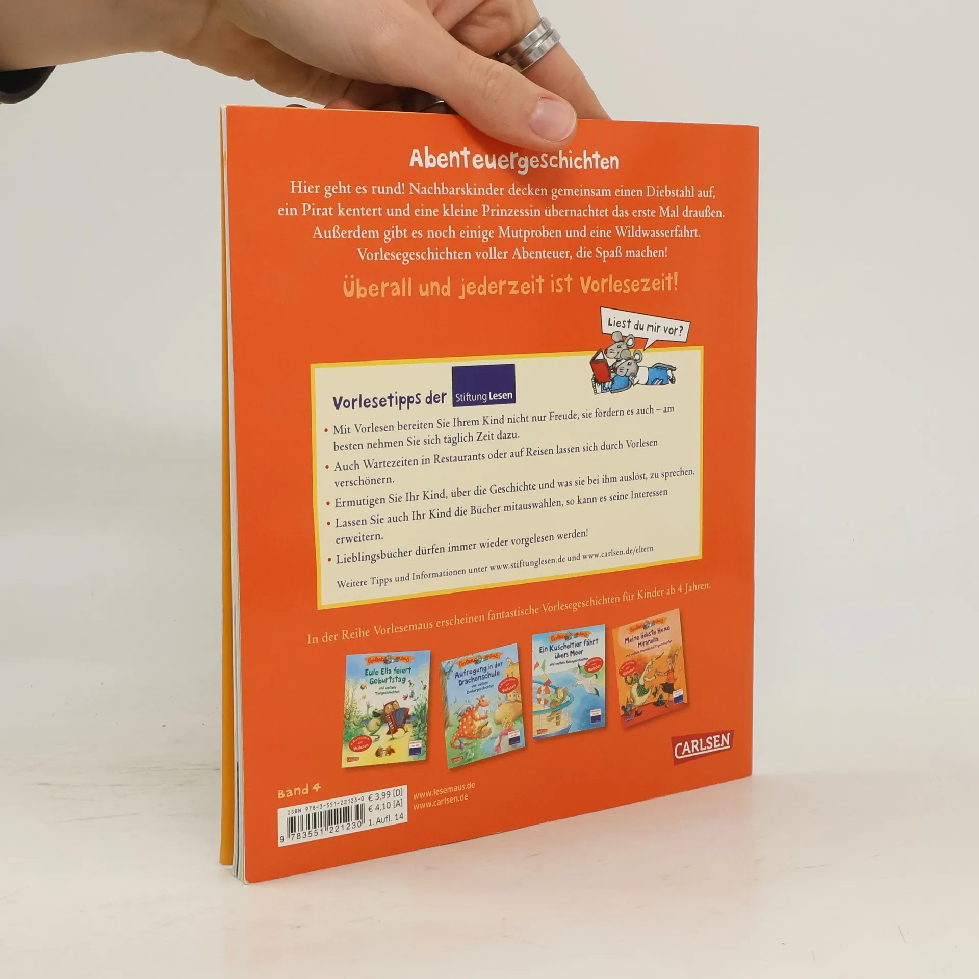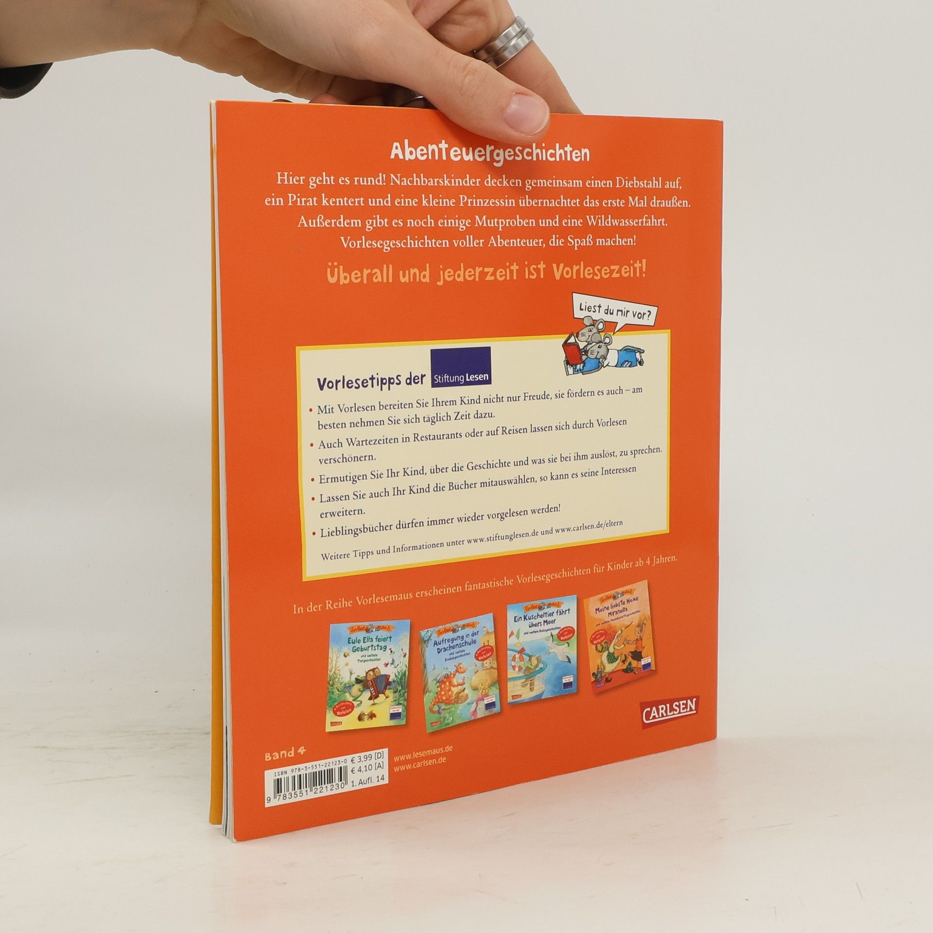 Hier geht es rund! Nachbarskinder decken gemeinsam einen Diebstahl auf, ein Pirat kentert und eine kleine Prinzessin übernachtet das erste Mal draußen. Außerdem gibt es noch einige Mutproben und eine Wildwasserfahrt. Geschichten voller Abenteuer, die Spaß machen! Vorlesen macht Spaß! Die Geschichten in der VORLESEMAUS haben die perfekte Länge – auch zum Vorlesen für zwischendurch. Sie beflügeln die Fantasie durch viele farbenfrohe Illustrationen. In jedem Band sind mindestens sechs Vorlesegeschichten zum kleinen Preis im praktischen Format: zum Vorlesen im Zug, im Auto, als Gutenachtgeschichten oder draußen im Park.