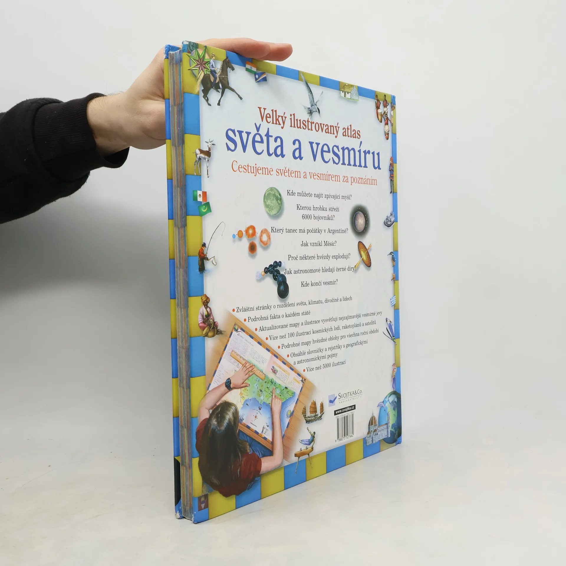 Tato kniha naučí děti aktivně studovat a používat různé typy map. Obsahuje velké množství ilustrací světových míst, lidí, reliéfů a způsobu života. Mimo to se s ní za pomoci barevných obrázků a nákresů vydáme i na zábavný výlet napříč celým vesmírem. Knížka obsahuje i praktická cvičení. .