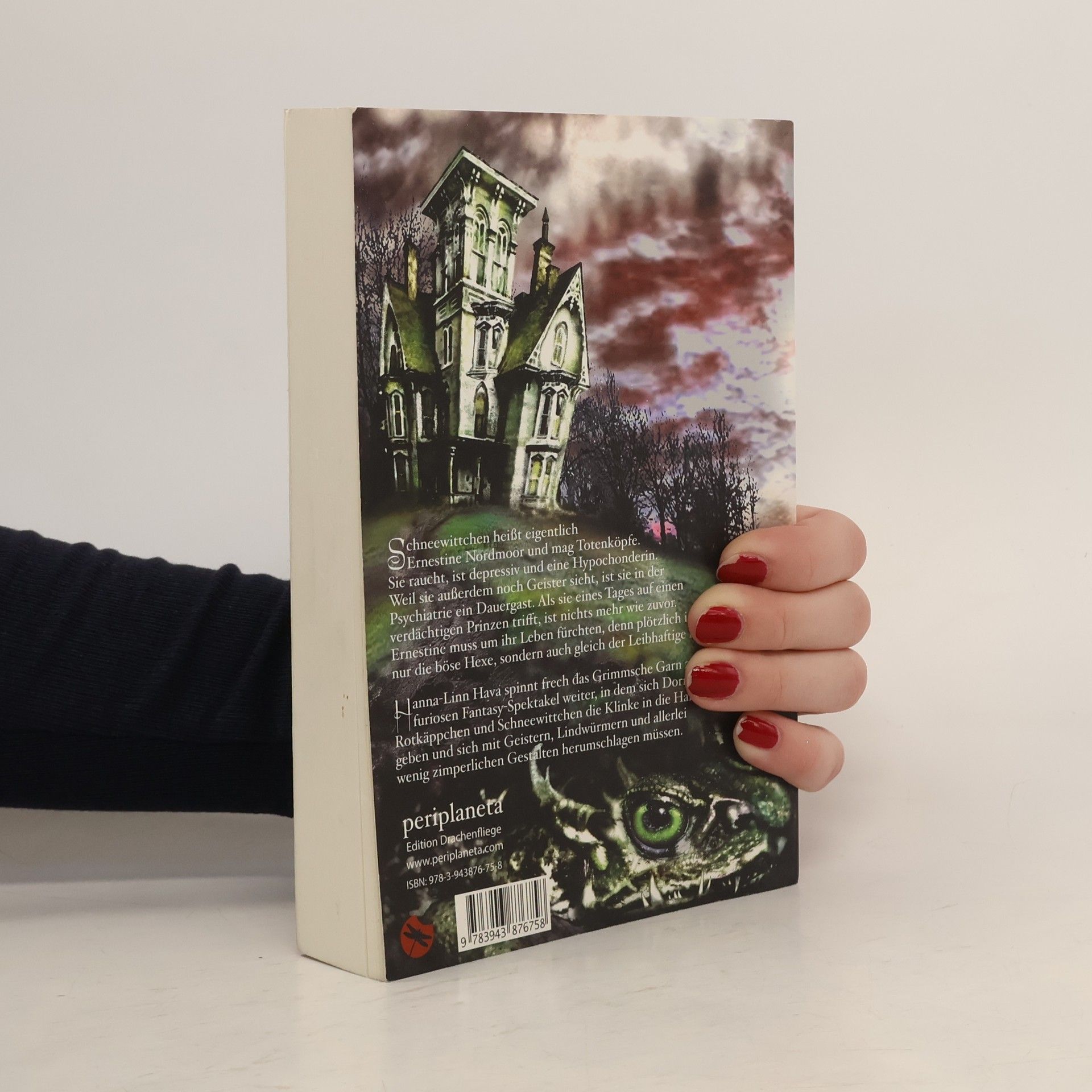 So haben Sie Schneewittchen noch nie erlebt! Schneewittchen heißt eigentlich Ernestine Nordmoor. Und sie mag Totenköpfe. Sie raucht, ist depressiv und eine Hypochonderin. Weil sie außerdem noch Geister sieht, ist sie in der Psychiatrie ein Dauergast. Wenn sie mal wieder entlassen wird, lebt sie mit Ceberus, ihrem Hund … (besser: ihrem HUND) in einem Haus, dass sie aus Versehen geerbt hat. Als sie eines Tages auf einen sehr verdächtigen Prinzen trifft, ist plötzlich nichts mehr wie zuvor. Ernestine muss um ihr Leben fürchten, denn plötzlich ist nicht nur eine böse Hexe und ein Auftragsmörder hinter ihr her, sondern auch gleich der Leibhaftige … Hanna-Linn Hava spinnt das Grimmsche Garn frech weiter zu einem furiosen Spektakel, in dem sich Dornröschen, Rotkäppchen und Schneewittchen auf sehr unkonventionelle Weise die Klinke in die Hand geben und sich mit Geistern, Lindwürmern und allerlei wenig zimperlichen Gestalten herumschlagen müssen. Mitunter tragische Fantasy, sehr spannend, höchst amüsant und definitiv für Erwachsene. Ein Märchen, das man Kindern auch nicht vorlesen sollte, jedenfalls nicht vor dem Einschlafen. Einmal mehr mit einem wundervollen Cover von Holger Much.