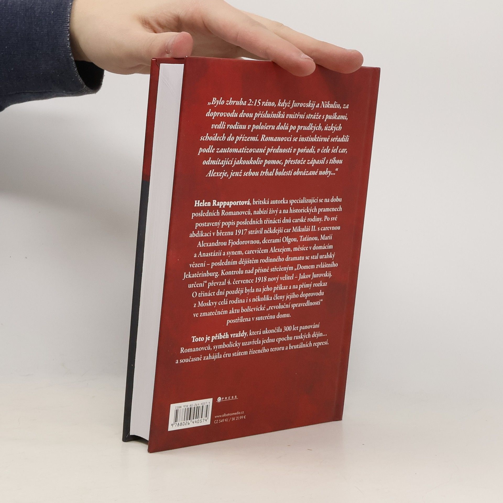 Příběh vraždy, která ukončila jednu epochu dějin. Po své abdikaci strávil někdejší car Mikuláš II. s carevnou Alexandrou Fjodorovnou a dětmi měsíce v domácím vězení. Posledním dějištěm rodinného dramatu se stal „Dům zvláštního určení“ v uralském Jekatěrinburgu. Zanedlouho po příjezdu na místo, 17. července 1918, byla rodina i s doprovodem zastřelena v suterénu domu – ve jménu bolševické „revoluční spravedlnosti“. Zmapovat poslední dny Romanovců je velkou výzvou – Helen Rappaportová k ní přistoupila s pokorou, poctivě a s darem velké vypravěčky.