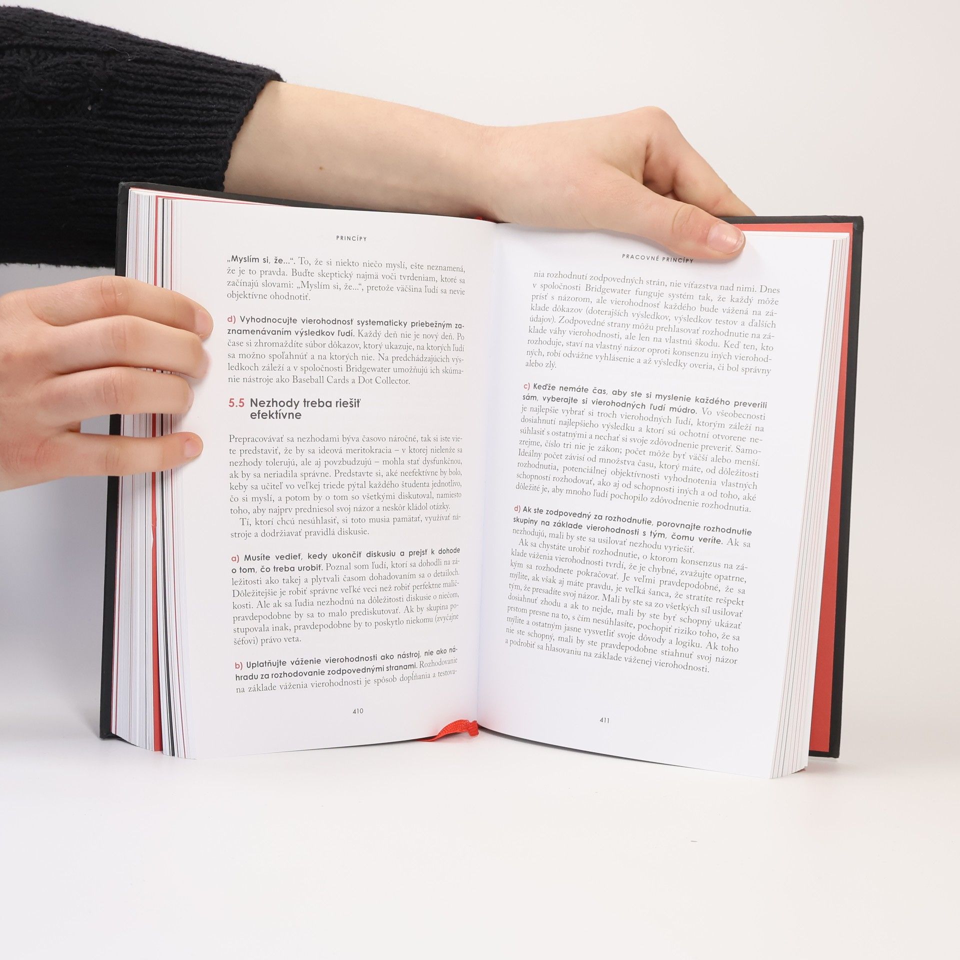 Ray Dalio v knize zpřístupnil svoje výjimečné životní a pracovní principy, které z obyčejného chlapce ze střední třídy z Long Islandu udělaly jednoho z nejúspěšnějších lidí naší doby. Principy, které může uplatnit každý, aby dosáhl svých cílů. Odhalil celou řadu unikátních principů, které podle něj stojí za jeho úspěchem a o něž se rozhodl podělit v této knize. Principy překypují novátorskými myšlenkami, jejich jádro tvoří srozumitelný, přímý přístup k rozhodování, včetně Daliova inovativního procesu „zvažování věrohodnosti“ –, který může uplatnit každý bez ohledu na to, o co usiluje. Kniha nabízí i generální plán na zavedení „ideové meritokracie, snahy o smysluplnou práci a smysluplné vztahy. Ray Dalio je jedním z nejoriginálnějších investorů a podnikatelů naší doby. Ze společnosti Bridge-water Associates (založil ji v roce 1975) vybudoval za čtyřicet let největší hedgeový fond na světě a jednu z nejvýznamnějších společností ve Spojených státech (podle Fortune). Ray Dalio je uveden v žebříčku Time 100 nejvlivnějších lidí na světě stejně jako v žebříčku Forbes 100 nejbohatších lidí.