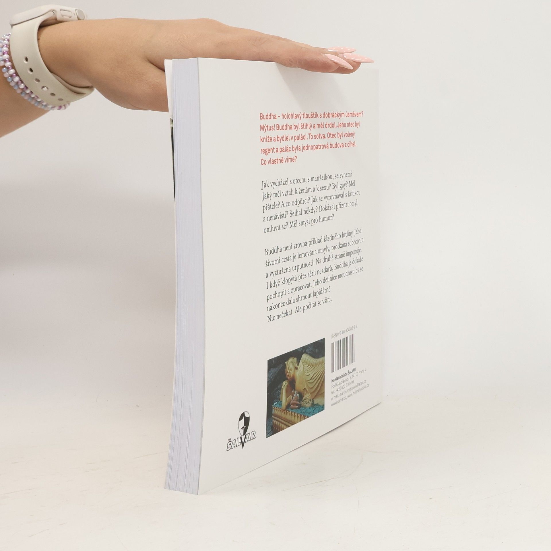 Buddha - holohlavý tlouštík s dobráckým úsměvem? Mýtus! Buddha byl štíhlý a měl drdol. Jeho otec byl kníže a bydlel v paláci. To sotva. Otec byl volený regent a palác byla jednopatrová budova z cihel. Co vlastně víme? Známe základní životní příběh s několika zvraty. A dál? Jak vycházel s otcem, s manželkou, se synem? Jaký měl vztah k ženám a k sexu? Byl gay? Měl přátele? A co odpůrci? Jak se vyrovnával s kritikou a nenávistí? Selhal někdy? Dokázal přiznat omyl, omluvit se? Měl smysl pro humor? Buddha není zrovna příklad kladného hrdiny. Jeho životní cesta je lemována omyly, protkána sobectvím a vyztužena urputností. Na druhé straně imponuje. I když klopýtá přes sérii nezdarů, Buddha je dokáže pochopit a zpracovat. Jeho definice moudrosti by se nakonec dala shrnout lapidárně: Nic nečekat. Ale počítat se vším. Nedocenitelná knížka pro multikulturní poznávání všech generací, pro školy, mimoškolní , určitě pro vnímavé, inteligentní čtenáře.