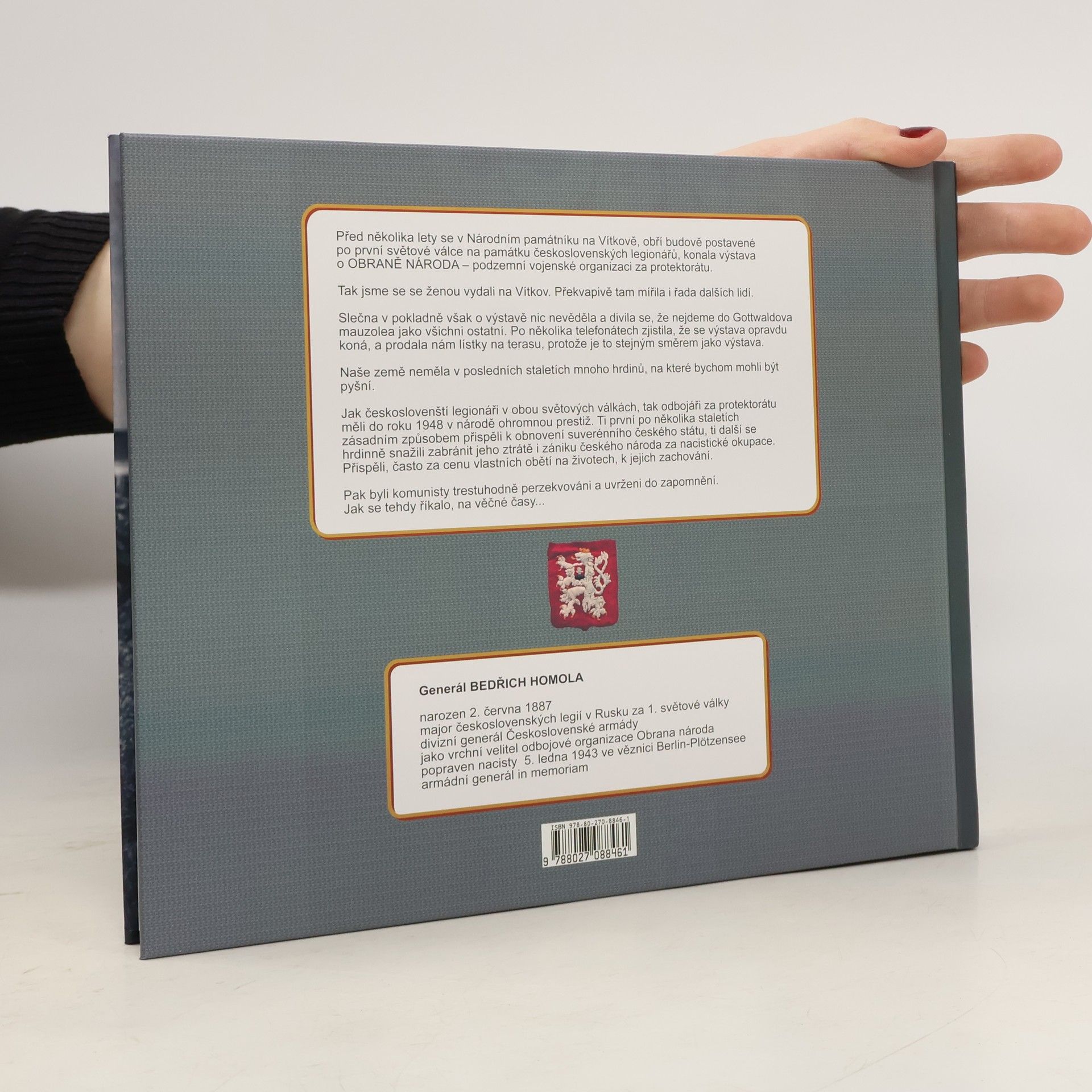 Výpravná publikace o armádním generálu in memoriam Bedřichu Homolovi, vrchním veliteli Obrany národa – podzemní armády v protektorátu během druhé světové války. Obrana národa organizovala například ilegální přesun československých pilotů a leteckého personálu do zahraničí (ve výsledku zejména do Británie), zpravodajskou a sabotážní jednotku tvořili Homolovi podřízení a zároveň nejbližší přátelé, známí Tři králové – Josef Mašín, Josef Balabán a Václav Morávek, Obrana národa se chystala na ozbrojené povstání, pokud by byla Hitlerova Třetí říše oslabena i zvenčí. Generál Homola byl zatčen gestapem na základě udání na Silvestra roku 1941 a po roce vězení a mučení byl popraven gilotinou 5. 1. 1943 v berlínské věznici Plötzensee. Po válce byl posmrtně povýšen na armádního generála, psaly se o něm oslavné články v novinách. Po roce 1948 byl však vymazán z oficiální historie národa jakožto „buržoazní a reakční generál“ až do roku 1989. V roce 1998 byl znovu veřejně vzpomenut – obdržel od prezidenta Václava Havla Řád bílého lva, nicméně zpět do základního povědomí národa se, stejně jako další hrdinové z dob první i druhé světové války, znovu nedostal. Kniha, kterou napsal vnuk Bedřicha Homoly Zdeněk Homola ve spolupráci s historikem Janem B. Uhlířem, má smazat dluh české historiografie, je určena jak pro laickou veřejnost, tak pro historiky, neboť obsahuje množství dosud nepublikovaných dokumentů a fotografií.