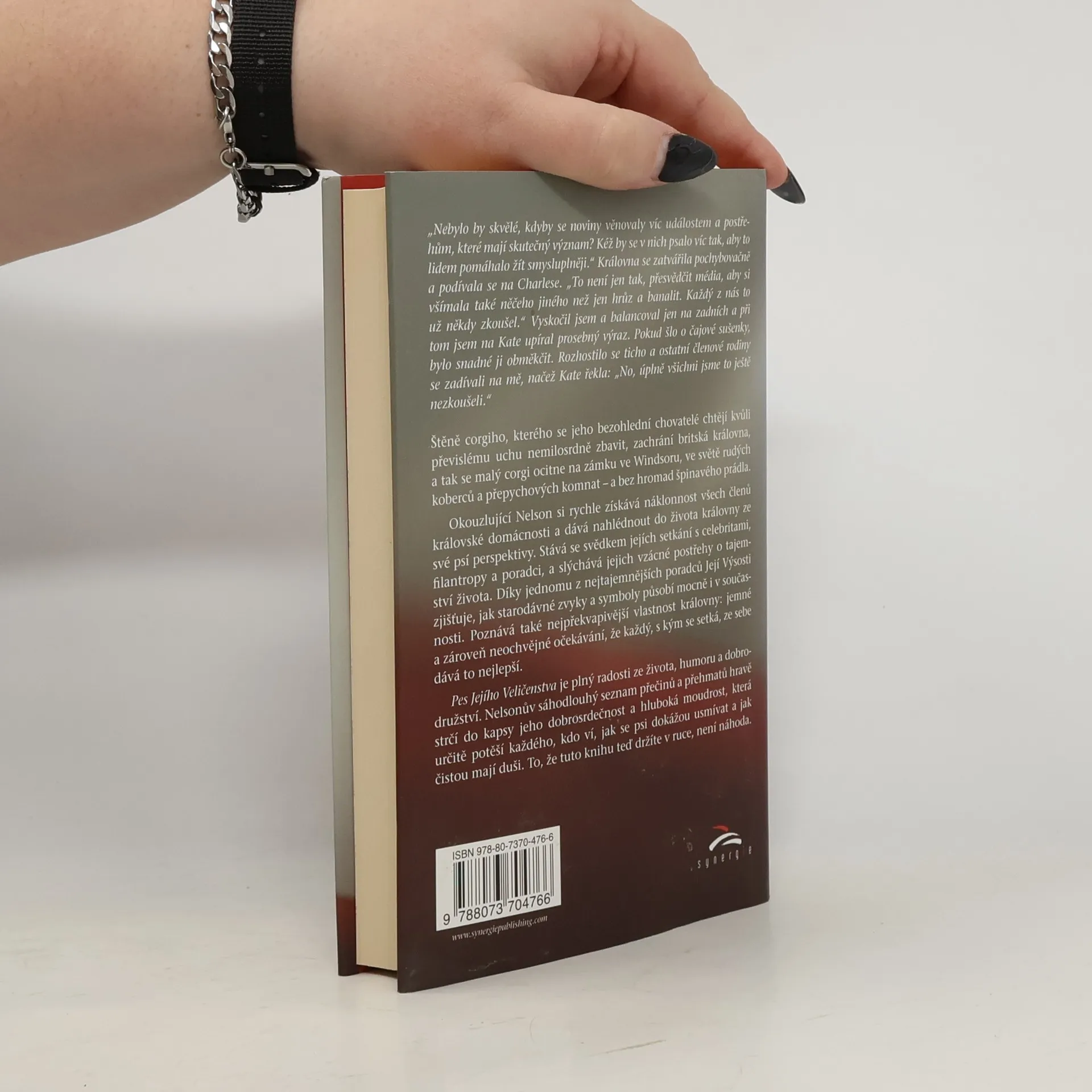 Štěně corgiho, kterého se jeho bezohlední chovatelé chtějí kvůli převislému uchu nemilosrdně zbavit, zachrání britská královna, a tak se malý corgi ocitne na zámku ve Windsoru, ve světě rudých koberců a přepychových komnat – a bez hromad špinavého prádla. Okouzlující Nelson si rychle získává náklonnost všech členů královské domácnosti a dává nahlédnout do života královny ze své psí perspektivy. Stává se svědkem jejích setkání s celebritami, filantropy a poradci, a slýchává jejich vzácné postřehy o tajemství života. Díky jednomu z nejtajemnějších poradců Její Výsosti zjišťuje, jak starodávné zvyky a symboly působí mocně i v současnosti. Poznává také nejpřekvapivější vlastnost královny: jemné a zároveň neochvějné očekávání, že každý, s kým se setká, ze sebe dává to nejlepší. Pes Jejího Veličenstva je plný radosti ze života, humoru a dobrodružství. Nelsonův sáhodlouhý seznam přečinů a přehmatů hravě strčí do kapsy jeho dobrosrdečnost a hluboká moudrost, která určitě potěší každého, kdo ví, jak se psi dokážou usmívat a jak vřelý mají jazyk.