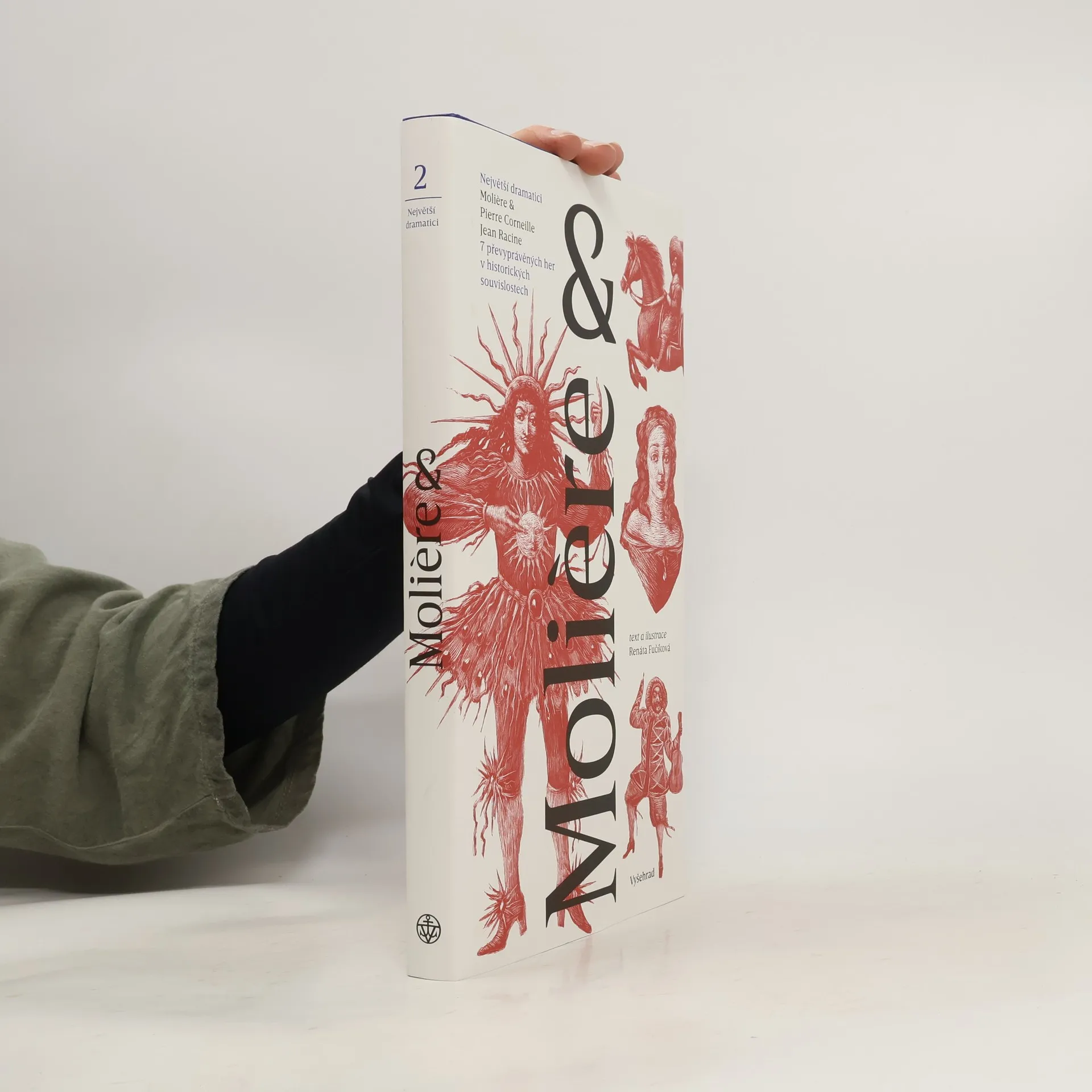 Molière, vlastním jménem Jean-Baptiste Poquelin, patří k nejslavnějším dramatikům éry francouzského i světového klasicismu. Francouzskému divadlu jeho doby je věnován druhý svazek ediční řady Největší dramatici, bohatě ilustrovaná kniha, která nám přiblíží Francii Molièrovy doby i jeho životní osudy. V hlavní části představuje Renáta Fučíková v převyprávění pro mladé čtenáře pět nejznámějších Molièrových komedií (Škola pro ženy, Tartuffe, Misantrop, Lakomec, Zdravý nemocný) a přidává navíc dvě dramata od slavných Molièrových současníků, jimiž byli Jean Racine (Faidra) a Pierre Corneille (Cid). Převyprávěné divadelní hry proložila autorka nejdůležitějšími monology či dialogy známých postav. Každá z Molièrových komedií je navíc orámována naučnými texty, díky nimž se čtenáři dozvědí mnoho podrobností například o vládě „krále Slunce“ Ludvíka XIV., o vztazích hugenotů a katolíků, o osudech Francie v průběhu třicetileté války, o merkantilismu či o absolutismu. S pomocí výpravných ilustrací pak Renáta Fučíková vypráví o zrodu barokního slohu, rozkvětu umění na dvoře Ludvíka XIV., o stavbě paláce ve Versailles, o tanečním, operním a divadelním umění, o návratu k přírodě, o galantních hrátkách šlechty, o chodu královského dvora, o rozkvětu vědy a řemesel, o životě nejchudších vrstev, o válečnictví, o honitbě, o politických intrikách, o koloniální expanzi a o mnoha dalších aspektech života ve Francii 17. století.