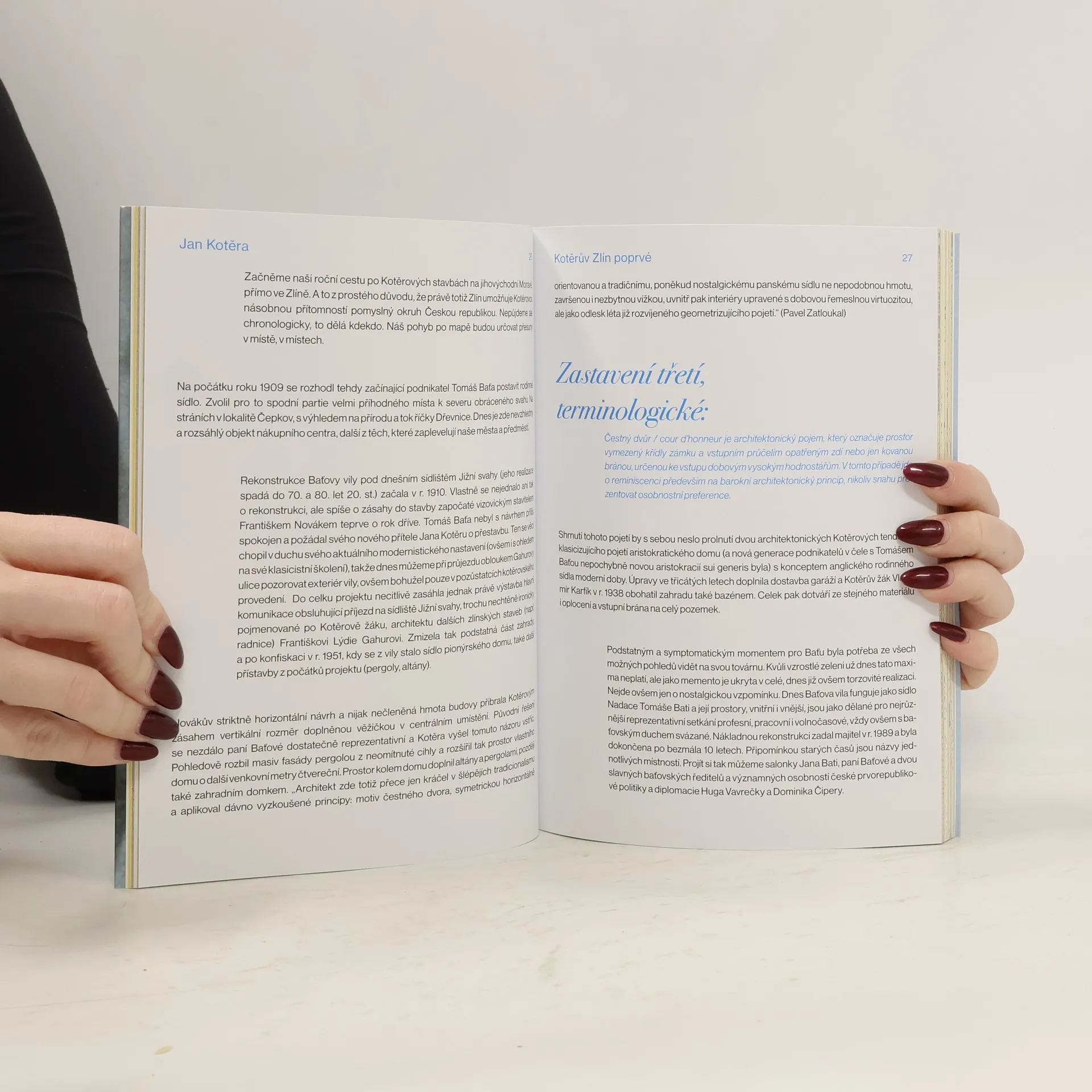 Kniha ke 150. výročí narození Jana Kotěry je knihou pro radost. Zachtělo se nám pojmout ji jako roční putování (12 zastavení ve 13 kapitolách) po nejznámějších výsledcích architektovy tvorby. Záměrně nemluvíme jen o architektonických památkách, protože Jan Kotěra byl autorem všestranným a zůstaly nám po něm i židle, stoly, interiérová výzdoba, svítidla a také kolejová vozidla a jejich vnitřní vybavení. Projděte s námi rokem Jana Kotěry a nechejte se vést obrázky Davida Vávry, z nichž hned ten vstupní je portrétem mladého Kotěry, šviháka v kloboučku, s nakrouceným knírem a - nikdo mi to nevymluví - trochu poťouchlým pohledem, který říká: „Však vy uvidíte!“