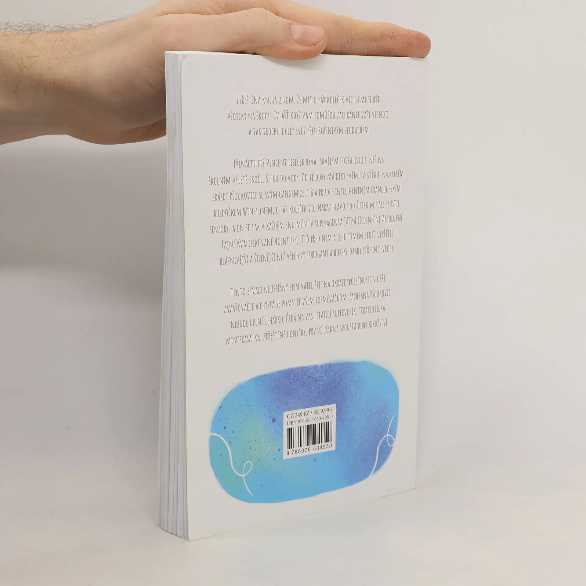 Ztřeštěná kniha o tom, že mít o pár koleček víc nemusí být vždycky na škodu. Zvlášť když vám pomůžou zachránit vaši vesnici a tak trochu i celý svět před bláznivým zloduchem. Třináctiletý Vincent Libeček býval skvělým fotbalistou, než na školním výletě skočil šipku do vody. Od té doby má díky svému vozíčku, na kterém brázdí Pšoukovice se svým gangem ze 7. B a prudce inteligentním francouzským buldočkem Winstonem, o pár koleček víc. Náraz hlavou do šutru mu ale spustil senzory, a on se tak v každém snu mění v superagenta JATKA (Jedinečné Absolutně Tajné Kvalifikované Agentury). Teď před ním a jeho týmem stojí nepřítel bláznivější a šílenější než všechny tobogany a horské dráhy střední Evropy. Tento bývalý neúspěšný spisovatel žije na okraji společnosti v obří zavařovačce a chystá se pomstít všem posměváčkům. Záchrana Pšoukovic nebude úplné lehárko. Čeká na vás létající supervozík, terapeutická miniprasátka, ztřeštěné honičky, první láska a spousta dobrodružství.