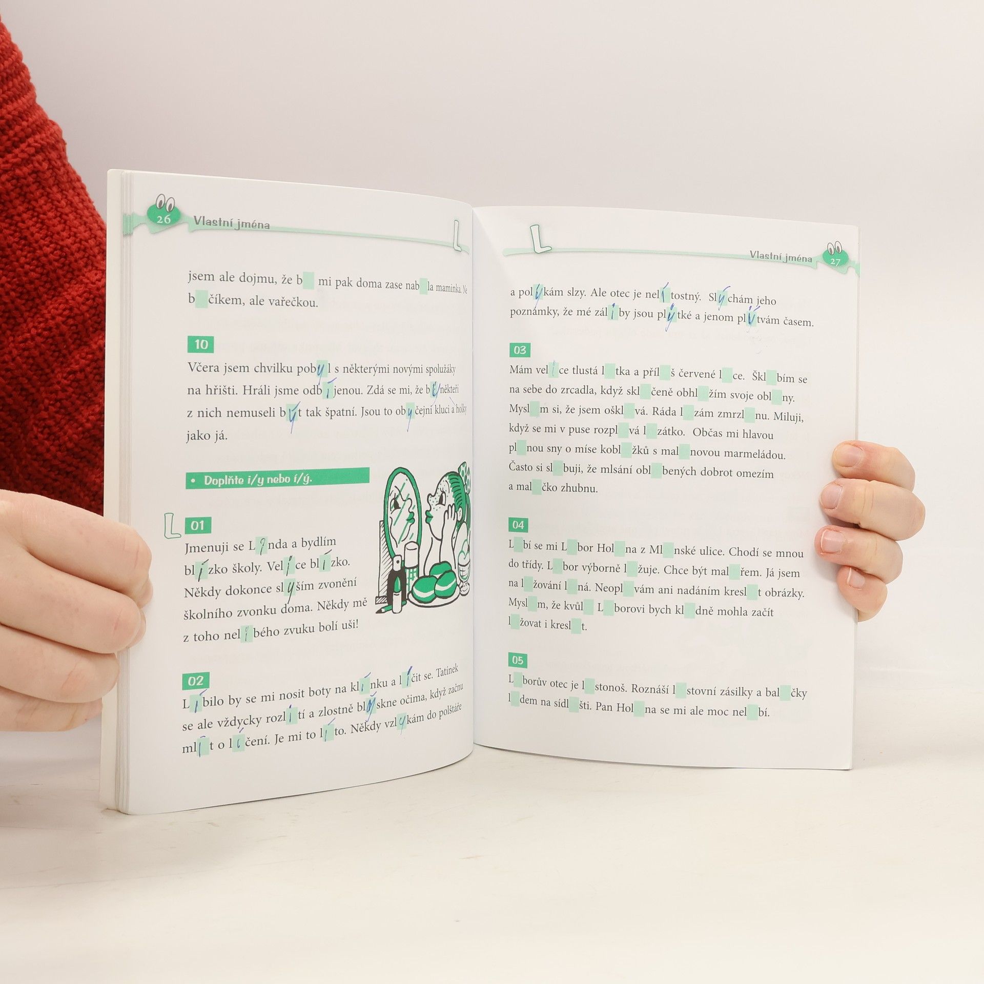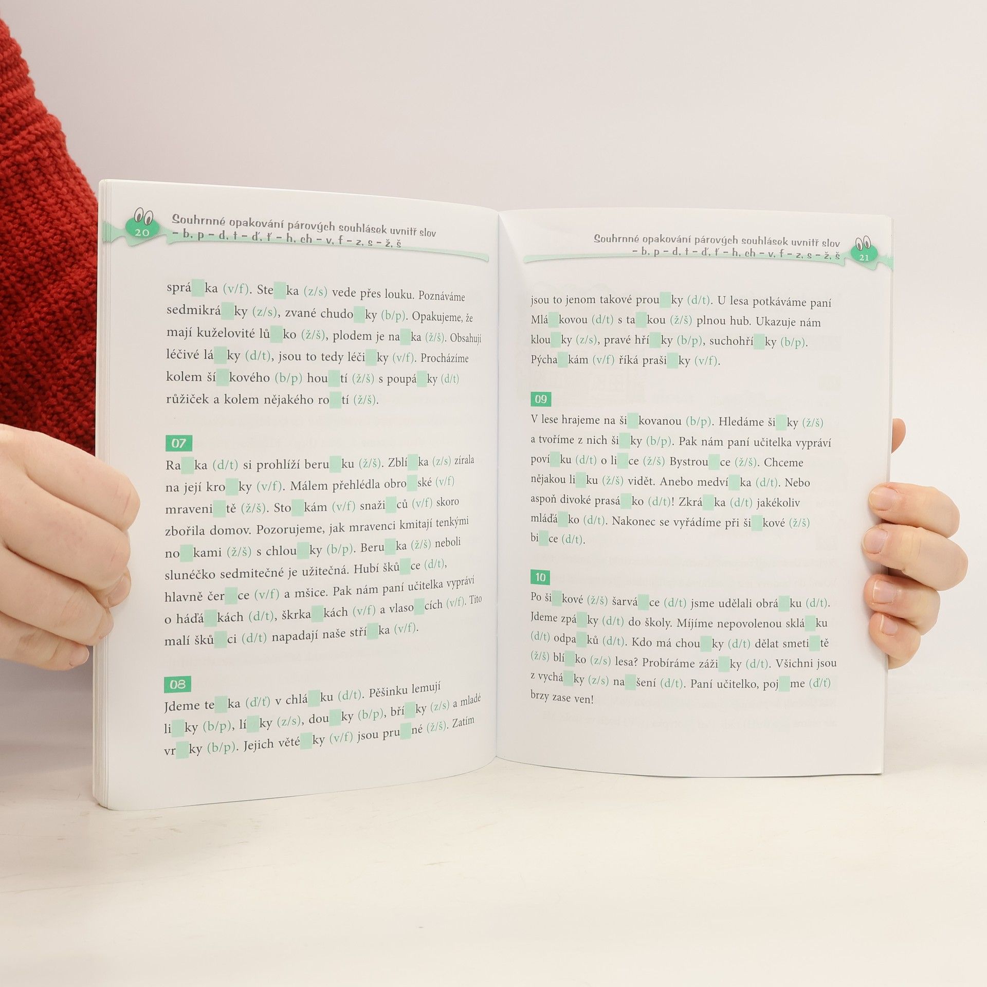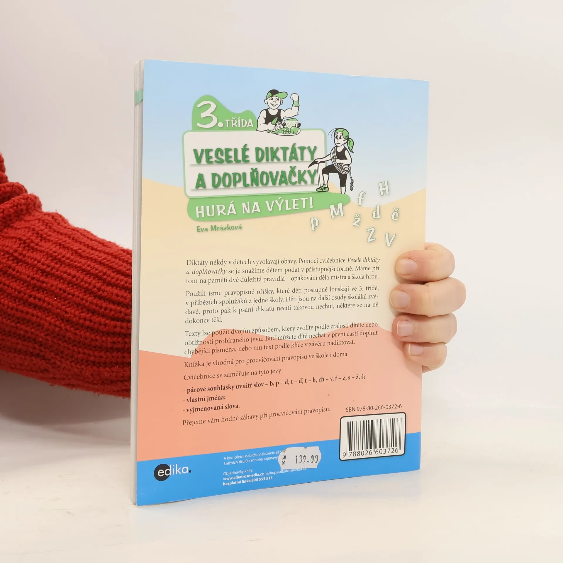Diktáty často bývají pro školáky strašákem. Pomocí cvičebnice Veselé diktáty a doplňovačky se snažíme tuto noční můru trošku polidštit. Máme při tom na paměti dvě důležitá pravidla – opakování dělá mistra a škola hrou. Použili jsme pravopisné oříšky, které děti postupně louskají ve 3. třídě, v příbězích spolužáků z jedné školy. Děti jsou na další osudy školáků zvědavé, proto pak k psaní diktátu necítí takovou nechuť, některé se na ně dokonce těší. Texty lze použít dvojím způsobem, který zvolíte podle zralosti dítěte nebo obtížnosti probíraného jevu. Buď můžete dítě nechat v první části doplnit chybějící písmena, nebo mu text podle klíče v závěru nadiktovat. Knížka je vhodná pro procvičování pravopisu ve škole i doma. Cvičebnice se zaměřuje na tyto jevy: Párové souhlásky uvnitř slov – b, p – d, t – ď, ť – h, ch – v, f – z, s – ž, š Vlastní jména Vyjmenovaná slova Přejeme vám hodně zábavy při procvičování pravopisu.