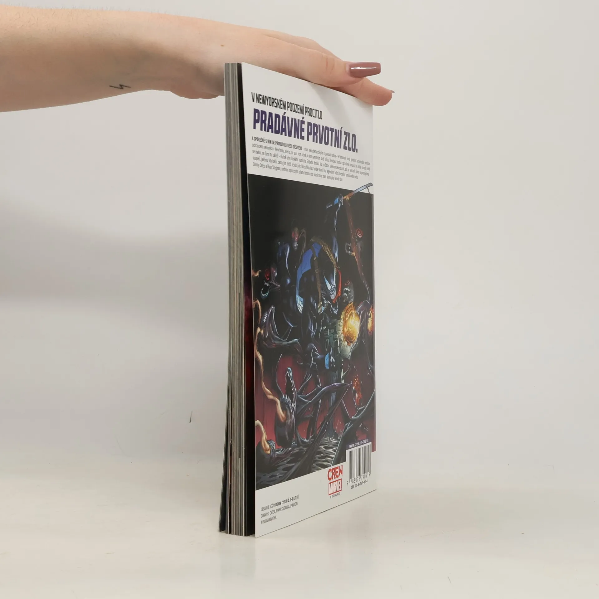 V NEWYORSKÉM PODZEMÍ PROCITLO PRASTARÉ PRVOTNÍ ZLO. A SPOLEČNĚ S NÍM PROCITLO NĚCO SROVNATELNĚ ZLÉHO i v nejhanebnějším ze snovačů pavučin – ve Venomovi! Tento symbiont nadále zůstává smrtícím ochráncem nevinných v New Yorku, dříve nevídaná hrozba ho však může přinutit vzdát se všeho, co je mu drahé – včetně jeho lidského hostitele, Eddieho Brocka. Jen co Eddie a Venom seberou síly, aby se postavili vůbec nejmocnějšímu soupeři, jakému kdy čelili, do cesty se jim postaví někdo jiný: Miles Morales, Spider-Man! Dva nejhustší tvůrci dnešního komiksového světa, Donny Cates a Ryan Stegman, uvrhnou společnými silami Venoma do noční můry staré skoro jako vesmír sám. OBSAHUJE SEŠITY VENOM (2018) č. 1–6 AUTORŮ DONNYHO CATESE, RYANA STEGMANA, JP MAYERA A FRANKA MARTINA.