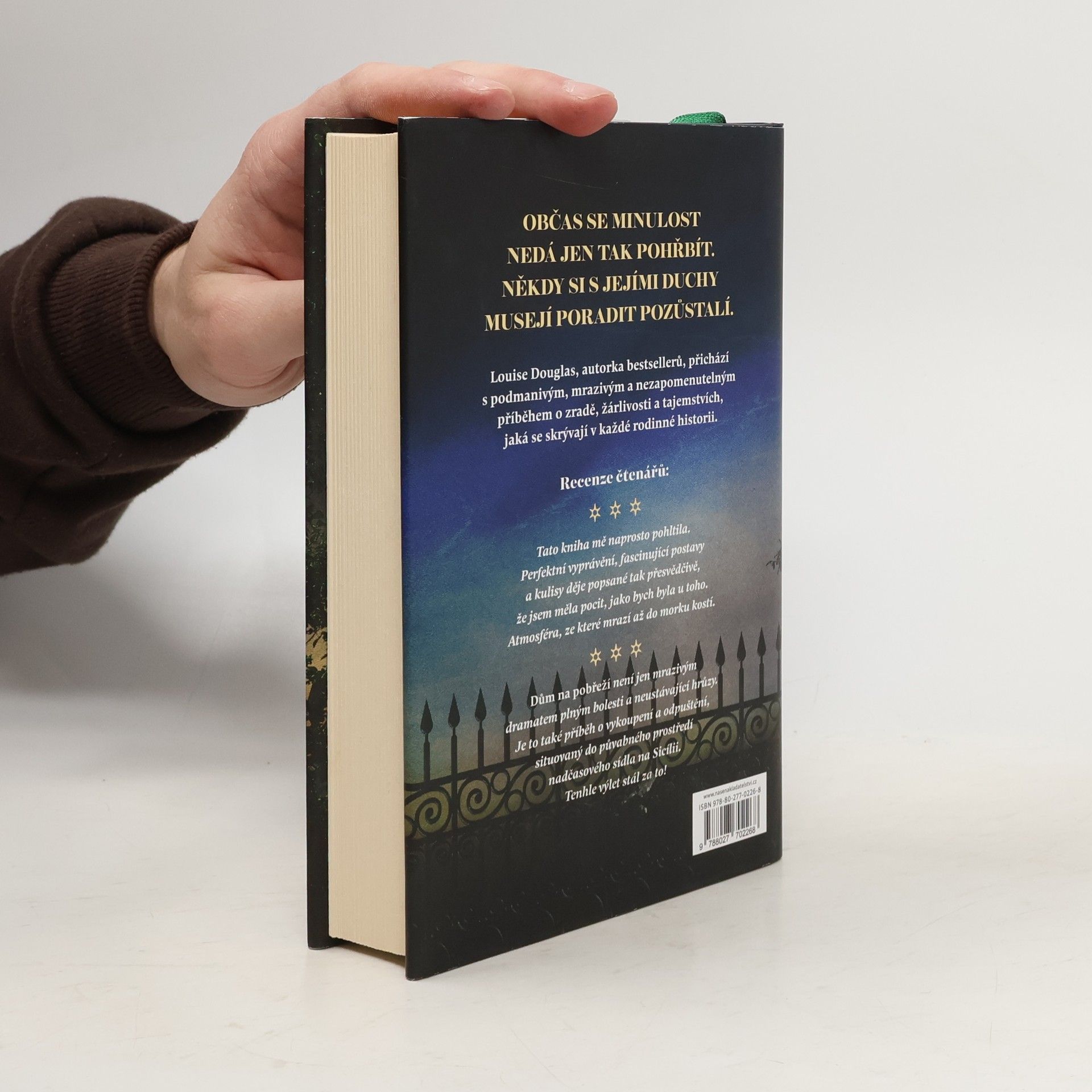 Edie se velice uleví, když její bývalá tchýně Anna zemře. Edie Annu viní z nehody, která jí zničila rodinu. Takže když ji Annina poslední vůle vyláká na Sicílii a do dlouho opuštěné Villa della Madonna del Mare, je jí jasné, o co Anně šlo. Má za to, že Anna i po své smrti tahá za nitky, aby ji dala opět dohromady se svým synem. Edie je proto odhodlaná odjet z Itálie co nejdřív. Ale ještě než to stihne, začne vila vydávat svá záhadná tajemství. Kdo jsou ty dívky na Anniných fotkách z dětství a proč někdo jednu z nich vyškrábal? Proč někdo nebo něco nechce, aby se zaobírali minulostí? Vila je místo, kde se staří duchové cítí doma. Ale jejich odkaz je potřeba uložit k věčnému spánku, aby Edie a Joe mohli jít dál... Autorka bestsellerů Louise Douglas se vrací s podmanivým, mrazivým a nezapomenutelným příběhem o zradě, žárlivosti a tajemstvích skrývajících se v každé rodinné historii.