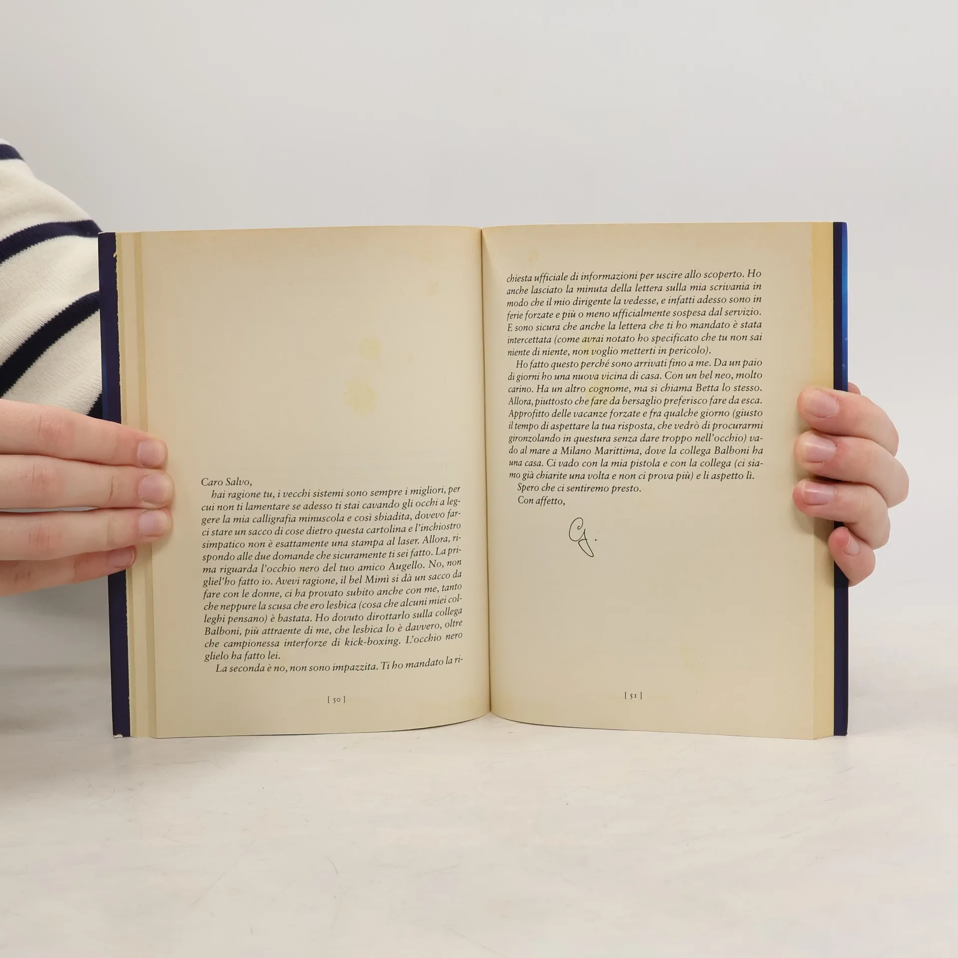 Il commissario Salvo Montalbano incontra l'ispettrice Grazia Negro in un gioco, un esperimento, una collaborazione letteraria senza precedenti: i due "re" del giallo italiano contemporaneo, entrati in contatto durante le riprese del documentario "A quattro mani" (Minimum Fax Media 2007), uniscono le forze e regalano ai lettori una storia che vede protagonisti i loro personaggi di maggior successo. A metterli in contatto è un insolito omicidio in cui la vittima viene ritrovata con un pesciolino in bocca: il caso è nelle mani di Grazia Negro, che, resasi conto di non trovarsi di fronte a un delitto di ordinaria amministrazione, chiede aiuto al collega siciliano. Un romanzo dalla struttura insolita e non convenzionale: un collage di lettere, biglietti, ritagli di giornale, rapporti e verbali, "pizzini" che fanno rocambolescamente la spola fra i due detective,stimolando e accompagnando il lettore nella ricostruzione dell'indagine, che si conclude con un finale mozzafiato. Una jam session fra due narratori geniali che si divertono a far interagire il loro immaginario e il loro stile, una lettura unica per gli amanti del poliziesco e del noir. Gli autori hanno scelto di devolvere i proventi derivati dai diritti d'autore per sostenere progetti di beneficenza.