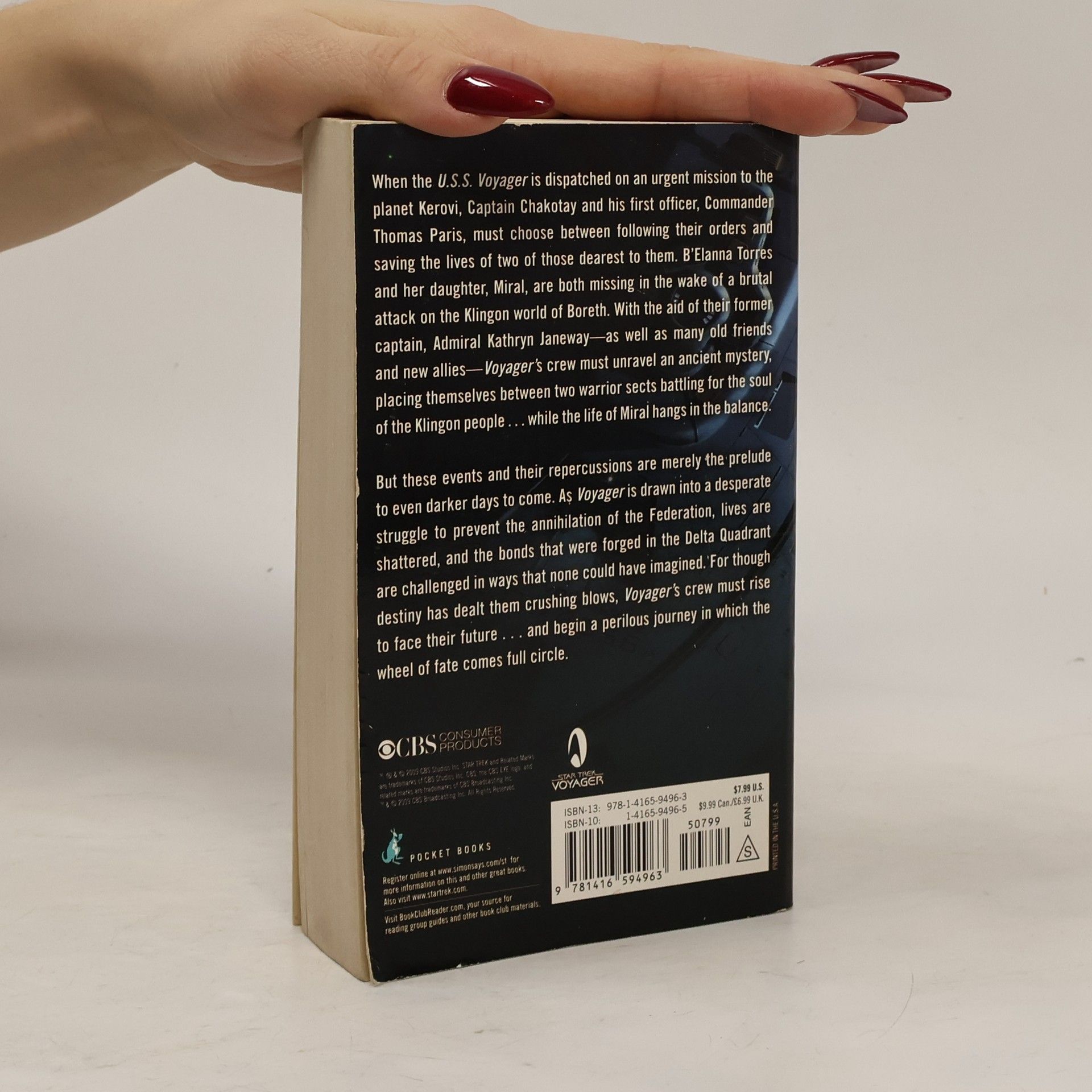 When the U.S.S. Voyager is dispatched on an urgent mission to the planet Kerovi, Captain Chakotay and his first officer, Commander Thomas Paris, must choose between following their orders and saving the lives of two of those dearest to them. B'Elanna Torres and her daughter, Miral, are both missing in the wake of a brutal attack on the Klingon world of Boreth. With the aid of their former captain, Admiral Kathryn Janeway -- as well as many old friends and new allies -- Voyager's crew must unravel an ancient mystery, placing themselves between two warrior sects battling for the soul of the Klingon people...while the life of Miral hangs in the balance. But these events and their repercussions are merely the prelude to even darker days to come. As Voyager is drawn into a desperate struggle to prevent the annihilation of the Federation, lives are shattered, and the bonds that were forged in the Delta Quadrant are challenged in ways that none could have imagined. For though destiny has dealt them crushing blows, Voyager's crew must rise to face their future...and begin a perilous journey in which the wheel of fate comes full circle.