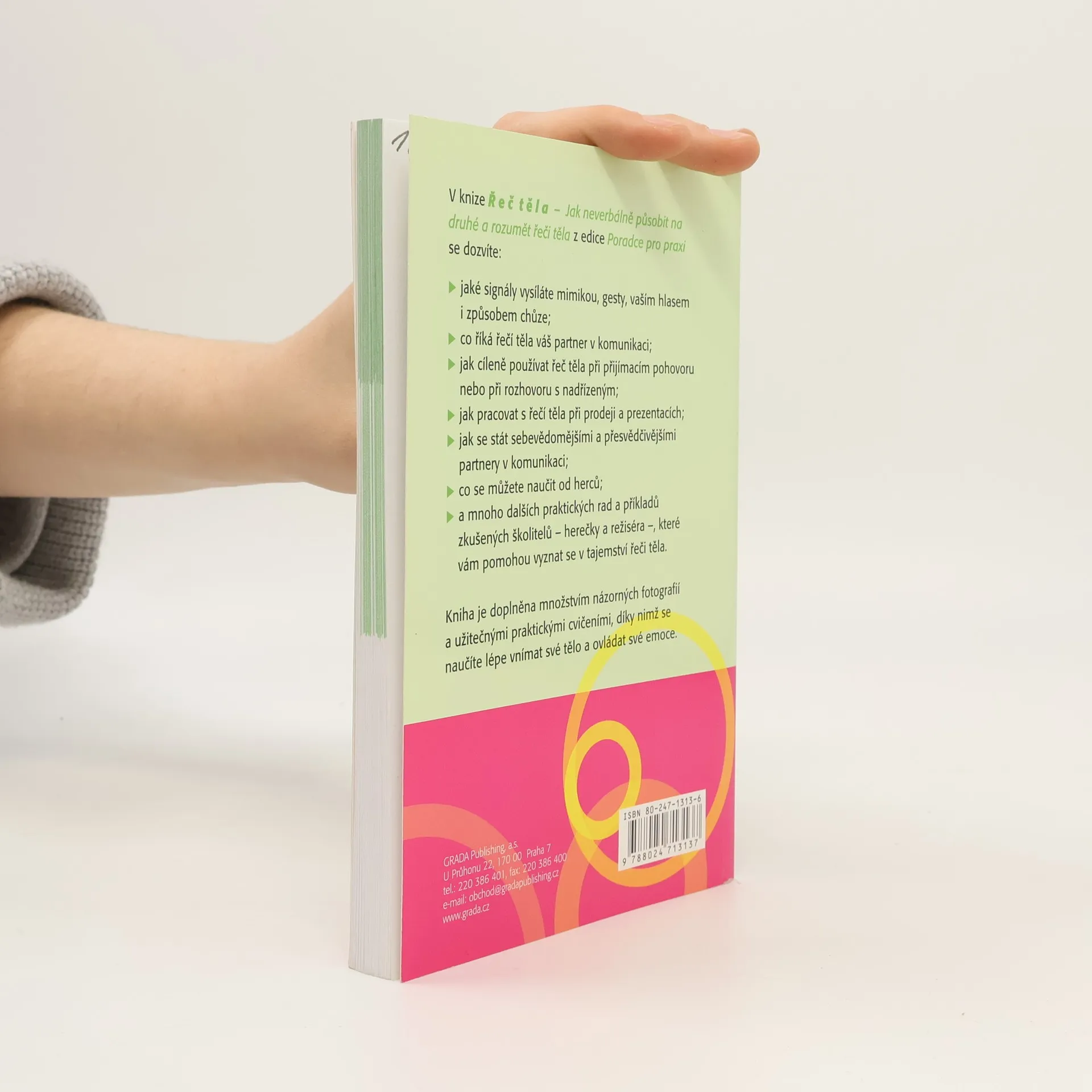 Jak svojí řečí těla působíte na druhé lidi? Jak můžete vhodnou gestikulací a mimikou ovlivnit svůj protějšek? Co se skrývá za řečí těla ostatních? Úspěšní trenéři vás provedou úskalími a záludnostmi neverbální komunikace pomocí praktických rad, tipů a příkladů, které nejsou vyjádřeny jen slovně, ale také více než 70 situačními fotografiemi. Budete umět využívat řeč těla pro své cíle a rozumět neverbální komunikaci ostatních, a tedy rozpoznat, co si lidé skutečně myslí a prožívají. Čtivý jazyk, osvědčené rady a spousta fotografií dělá z této knížky nepostradatelnou příručku pro každého komunikujícího člověka.