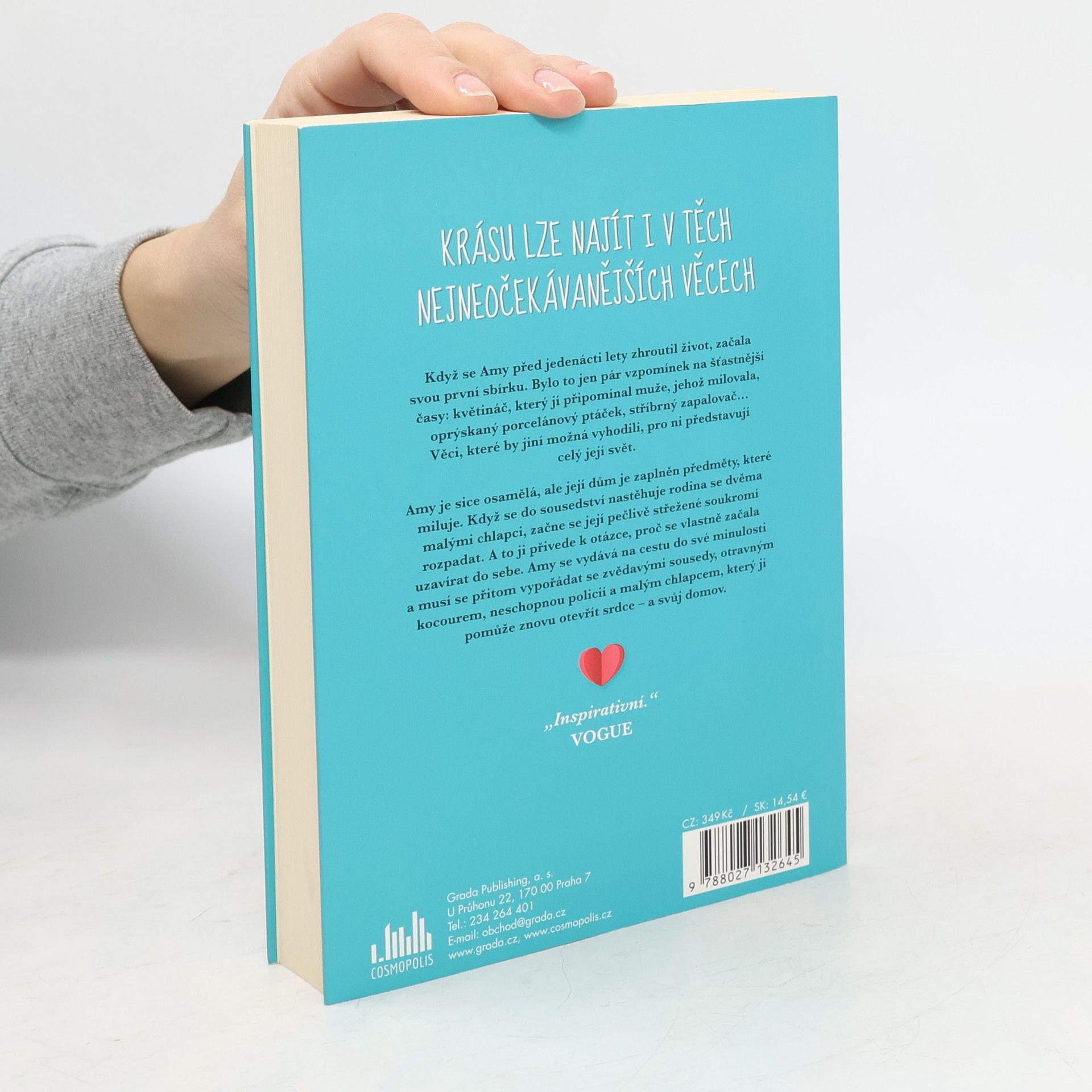 Krásu lze najít i v těch nejneočekávanějších věcech Když se Amy před jedenácti lety zhroutil život, začala svou první sbírku. Bylo to jen pár vzpomínek na šťastnější časy: květináč, který jí připomínal muže, jehož milovala, oprýskaný porcelánový ptáček, stříbrný zapalovač… Věci, které by jiní možná vyhodili, pro ni představují celý její svět. Amy je sice osamělá, ale její dům je zaplněn předměty, které miluje. Když se do sousedství nastěhuje rodina se dvěma malými chlapci, začne se její pečlivě střežené soukromí rozpadat. A to ji přivede k otázce, proč se vlastně začala uzavírat do sebe. Amy se vydává na cestu do své minulosti a musí se přitom vypořádat se zvědavými sousedy, otravným kocourem, neschopnou policií a malým chlapcem, který jí pomůže znovu otevřít srdce – a svůj domov.