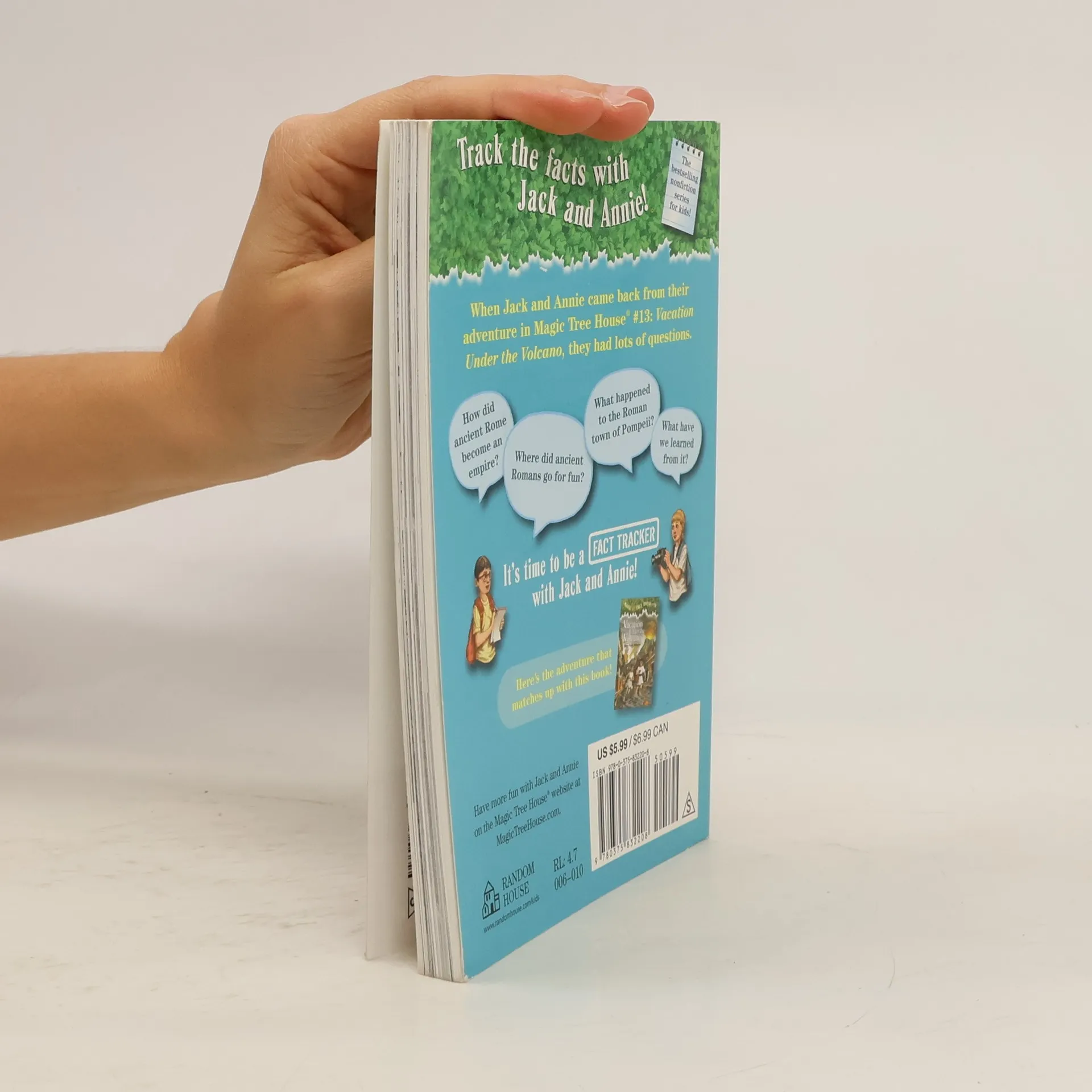 The #1 bestselling chapter book series of all time celebrates 25 years with new covers and a new, easy-to-use numbering system! Getting the facts behind the fiction has never looked better. Track the facts with Jack and Annie!!When Jack and Annie got back from their adventure in Magic Tree House #13: Vacation Under the Volcano, they had lots of questions. How did ancient Rome become an emipre? Where did ancient Romans go for fun? What happened to the Roman town of Pompeii? What have we learned from it? Find out the answers to these questions and more as Jack and Annie track the facts. Filled with up-to-date information, photos, illustrations, and fun tidbits from Jack and Annie, the Magic Tree House Fact Trackers are the perfect way for kids to find out more about the topics they discovered in their favorite Magic Tree House adventures. And teachers can use Fact Trackers alongside their Magic Tree House fiction companions to meet common core text pairing needs.Did you know that there's a Magic Tree House book for every kid?Magic Tree House: Adventures with Jack and Annie, perfect for readers who are just beginning chapter books Merlin Missions: More challenging adventures for the experienced reader Super Edition: A longer and more dangerous adventure Fact Trackers: Nonfiction companions to your favorite Magic Tree House adventuresHave more fun with Jack and Annie at MagicTreeHouse.com!