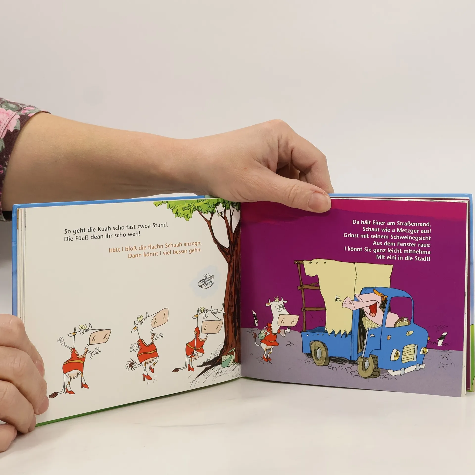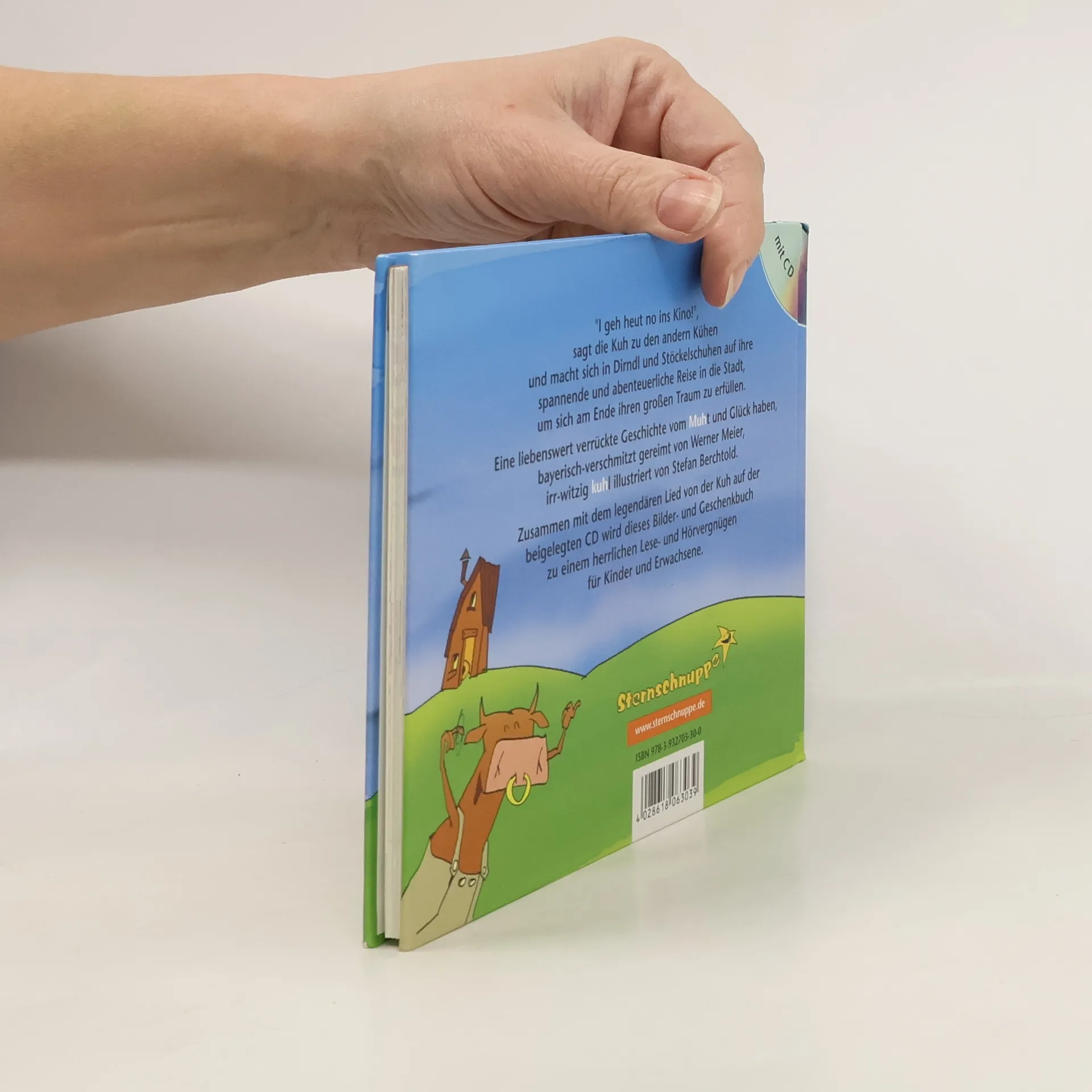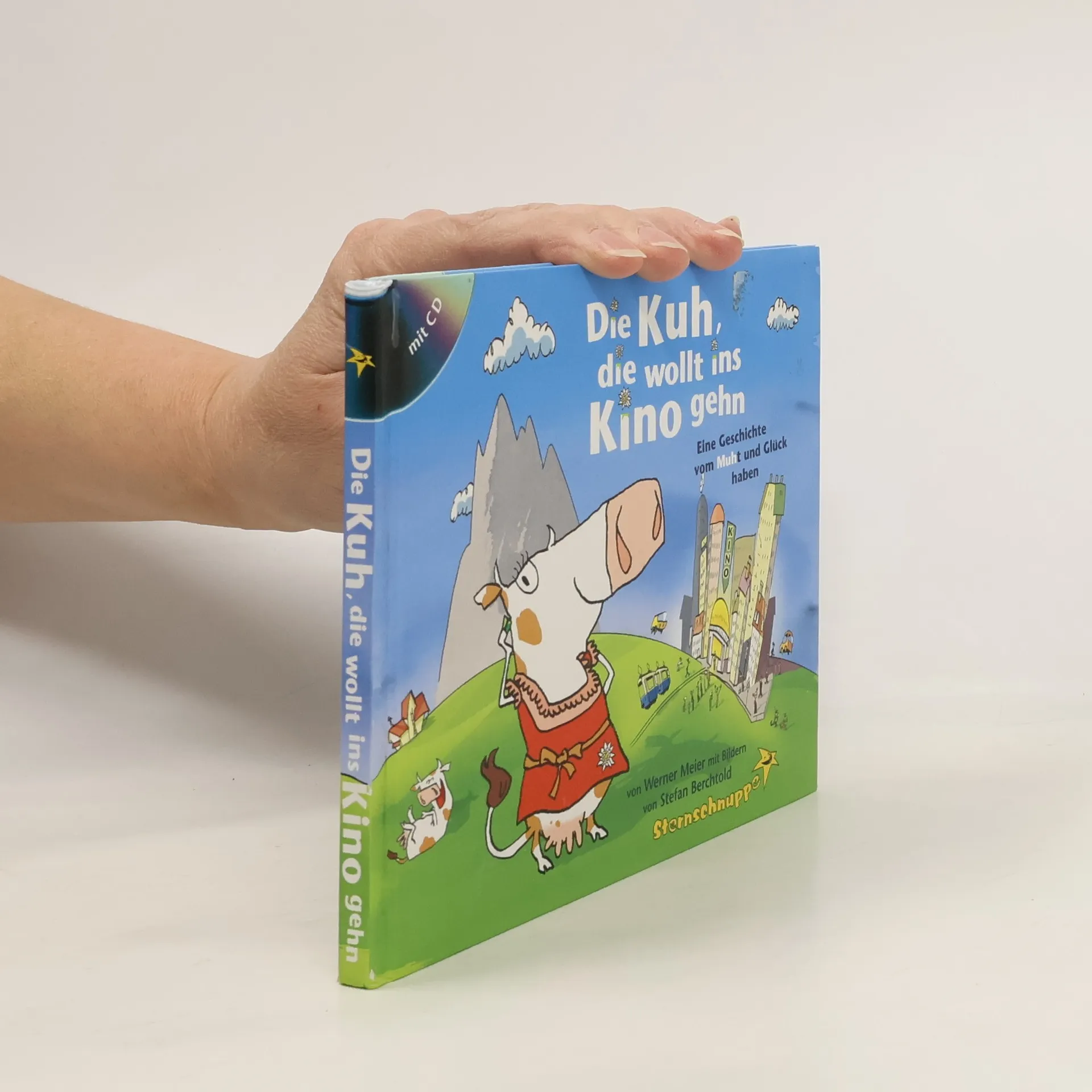 Die Kuh die wollt ins Kino gehn - Eine Geschichte vom MUHt und Glück haben - zum Vorlesen, Verschenken und selber Behalten "I geh heut no ins Kino!", sagt die Kuh zu den anderen Kühen und macht sich in Dirndl und Stöcklschuhen auf ihre spannende und abenteuerliche Reise in die Stadt. Mit diesem von Stefan Berchtold herrlich illustrierten Bilder- und Geschenkbuch für Kinder und Erwachsene zum legendären Lied von der Kuh geht für viele kleine und große Fans ein Wunsch in Erfüllung! Geschichte in Gedichtform und bayerischer Sprache mit vielen, zum Teil ganzseitigen Illustrationen, inklusive Mini-CD
