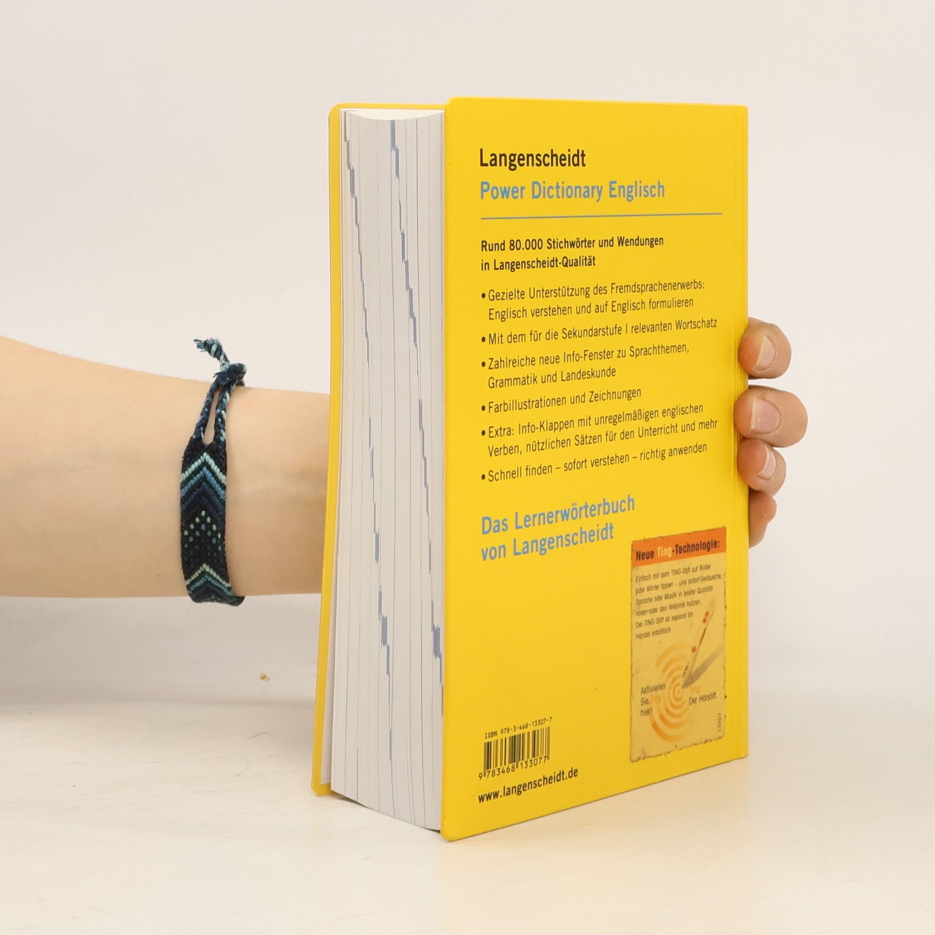 * Ganzseitige Farbillustrationen für effektive Wortschatzarbeit und Schwarz-Weiß-Illustrationen * Hunderte von Info-Fenstern zu Wortschatz, Grammatik und Landeskunde * Extrateil mit Übungen und Rätseln zum Umgang mit dem Power Dictionary * Zielgruppenspezifisch ausgewählte Stichwörter und Beispiele vermitteln genau das Englisch, das die Lernenden wirklich brauchen * Kennzeichnung des englischen Grundwortschatzes, internationale Lautschrift auch bei schwierig auszusprechenden englischen Übersetzungen * In neuer Wörterbuchgestaltung für optimale Lesbarkeit * Info-Klappen vorne und hinten im Buch mit unregelmäßigen englischen Verben, englischen Abkürzungen, britischem vs. amerikanischem Englisch und nützlichen Sätzen für den Unterricht auf Englisch