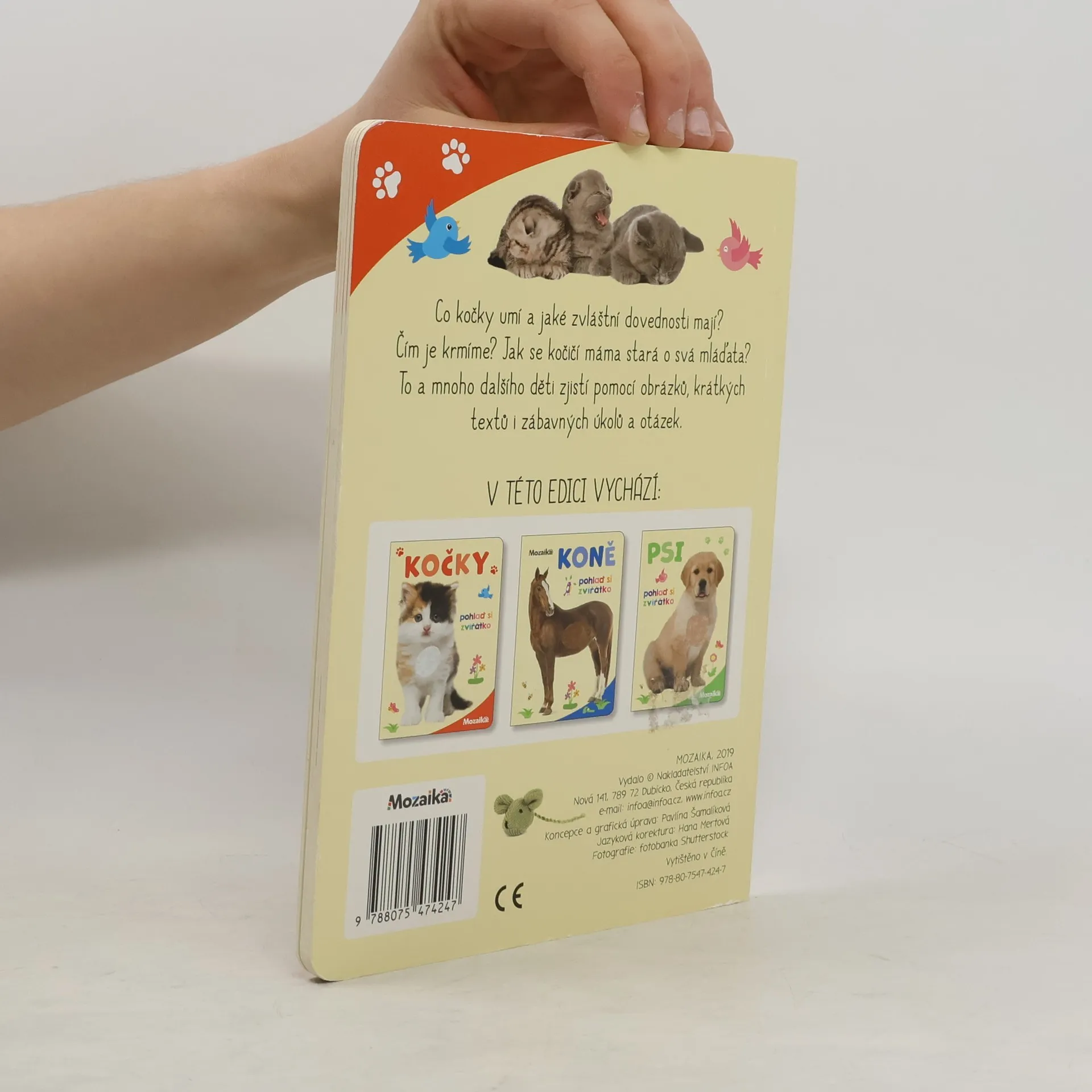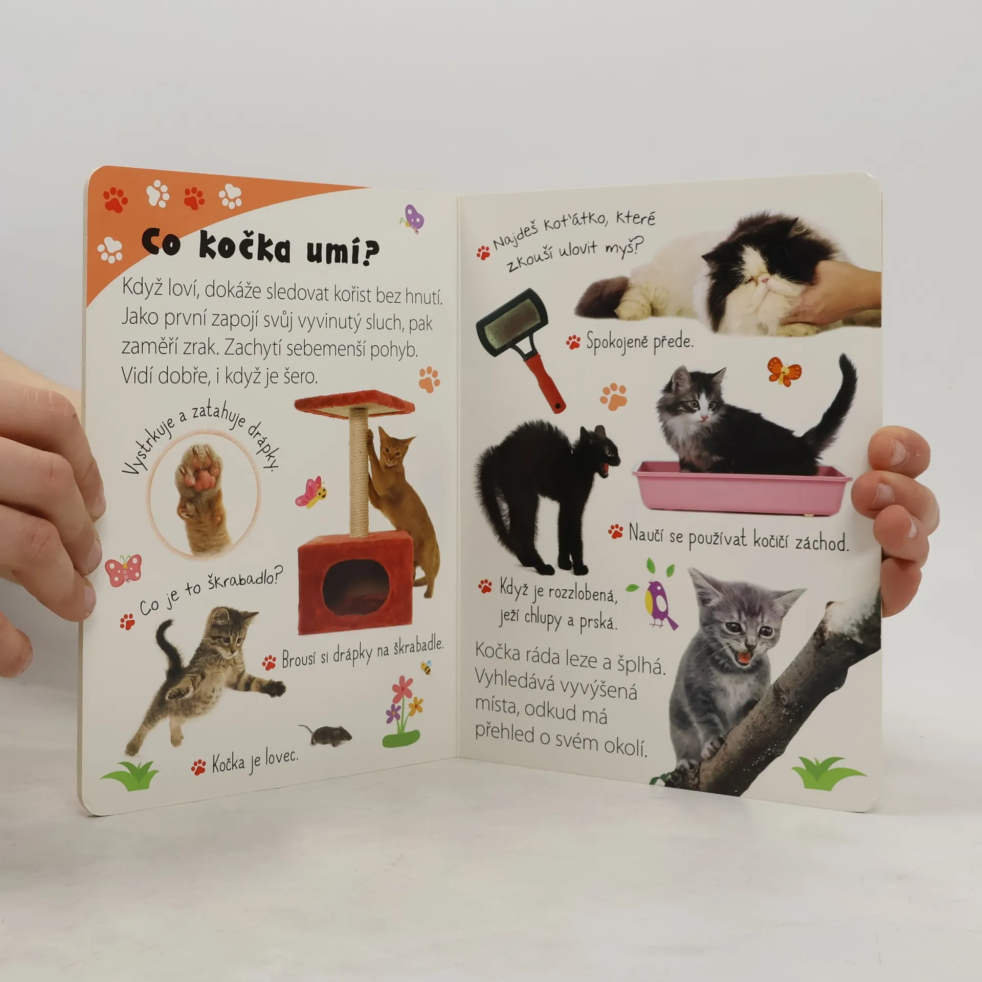 Co kočky umí a jaké zvláštní dovednosti mají? Čím je krmíme? Jak se kočičí máma stará o svá mláďata? To a mnoho dalšího děti zjistí pomocí obrázků, krátkých textů i zábavných úkolů a otázek.