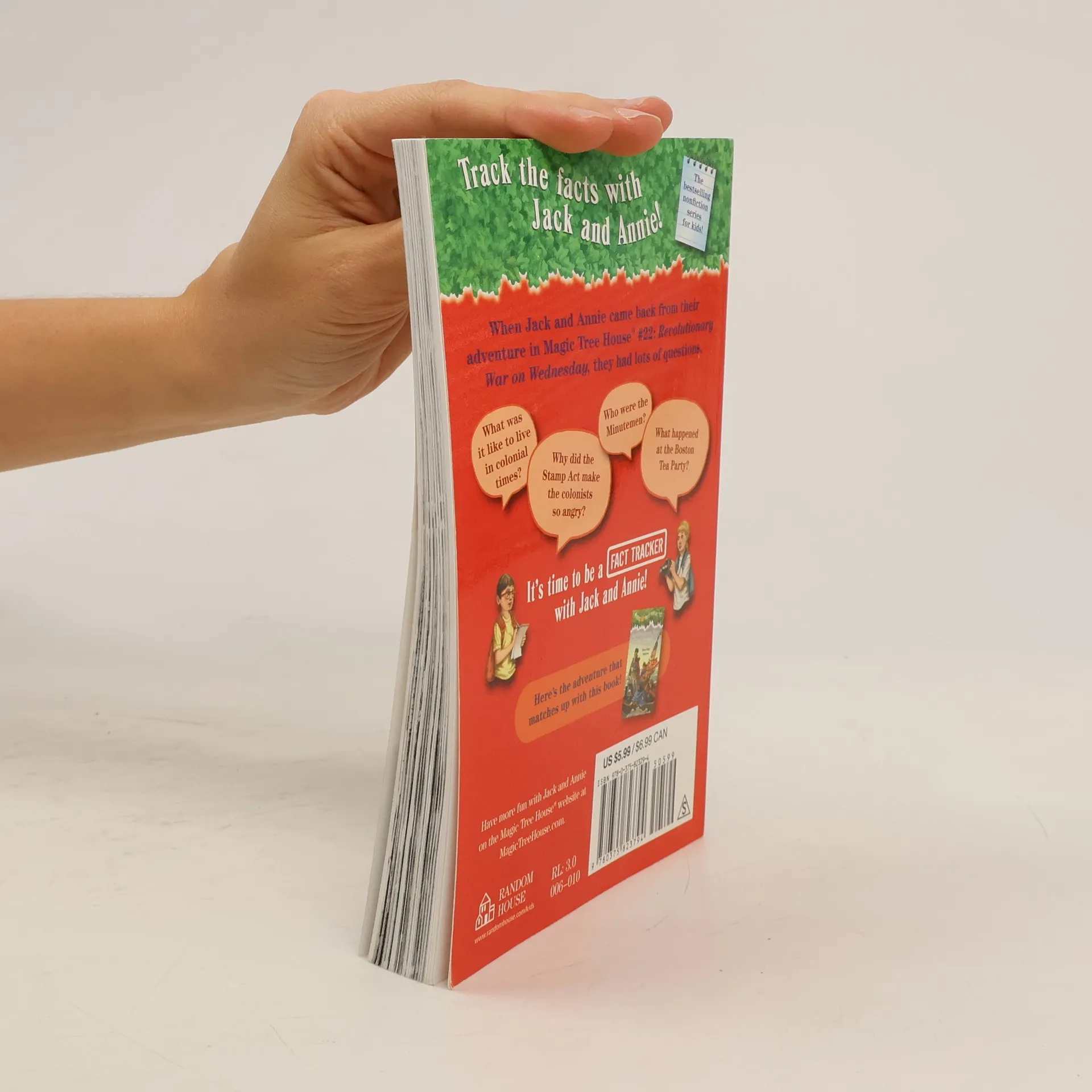 The #1 bestselling chapter book series of all time celebrates 25 years with new covers and a new, easy-to-use numbering system! Getting the facts behind the fiction has never looked better.Track the facts with Jack and Annie!When Jack and Annie got back from their adventure in Magic Tree House #22: Revolutionary War on Wednesday, they had lots of questions. What was it like to live in colonial times? Why did the stamp Act make the colonists so angry? Who were the Minutemen? What happened at the Boston Tea Party? Find out the answers to these questions and more as Jack and Annie track the facts.Filled with up-to-date information, photos, illustrations, and fun tidbits from Jack and Annie, the Magic Tree House Fact Trackers are the perfect way for kids to find out more about the topics they discovered in their favorite Magic Tree House adventures. And teachers can use Fact Trackers alongside their Magic Tree House fiction companions to meet common core text pairing needs.Did you know that there’s a Magic Tree House book for every kid?Magic Tree Adventures with Jack and Annie, perfect for readers who are just beginning chapter booksMerlin More challenging adventures for the experienced readerSuper A longer and more dangerous adventureFact Nonfiction companions to your favorite Magic Tree House adventuresHave more fun with Jack and Annie at MagicTreeHouse.com!
