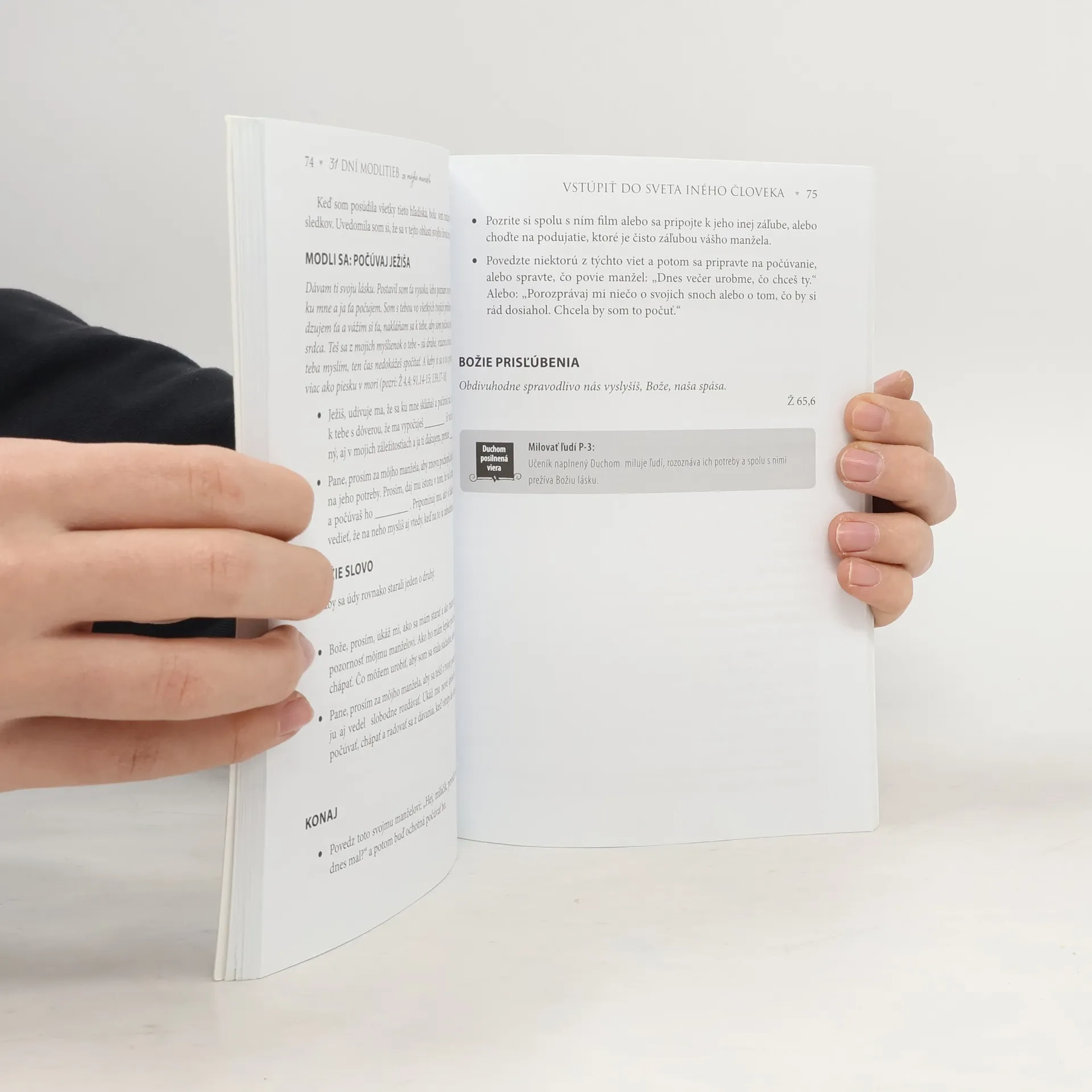 Ježiš sa modlí za tvojho manžela a pozýva ťa, aby si sa k nemu pripojila Spomeň si na obraz Ježiša, ako kľačí na kolenách a modlí sa. Predstav si, že sa k nemu nakloníš a počúvaš, za čo sa modlí. Začuješ meno svojho manžela. Preži Ježišovu lásku k tvojmu manželovi a pripomeň si prisľúbenia z Biblie pre jeho budúcnosť. Pros za jeho duchovný rast a múdrosť. Modli sa za to, aby vydával svedectvo o svojej slobode a o svojej vášni milovať Pána.