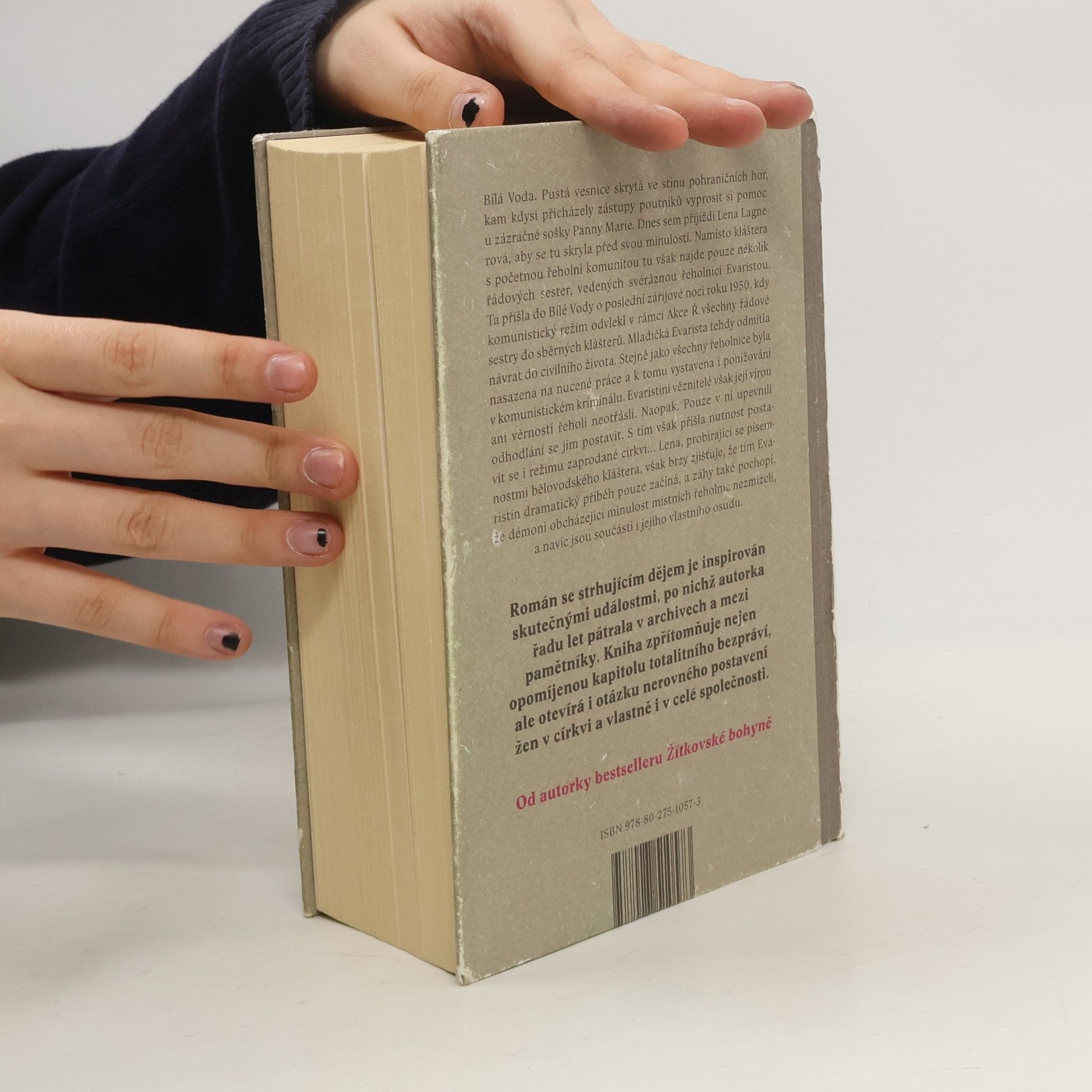 Dlouho očekávaný román Bílá Voda vypráví strhující příběh, jehož hlavní hrdinkou je Lena Lagnerová. Ta přichází do kostela v Bílé Vodě, pusté horské vesnici, kde se nachází zázračná soška Panny Marie. Lena tu nachází jen pár řádových sester, které má na starost řeholnice Evarista. Ta spolu s nimi dorazila do vesnice poslední zářijové noci roku 1950, kdy byly všechny řádové sestry odvedeny komunistickým režimem do sběrných táborů.