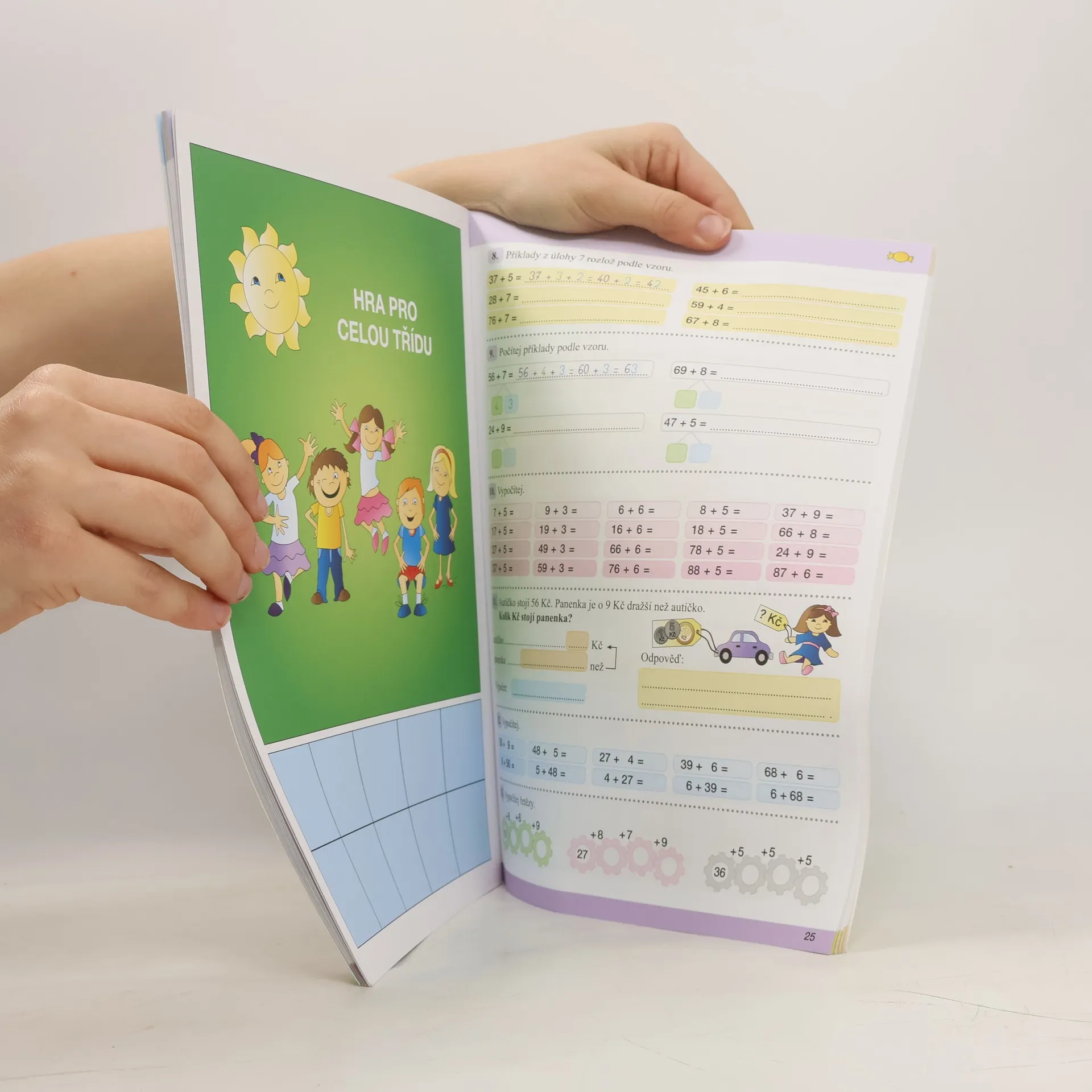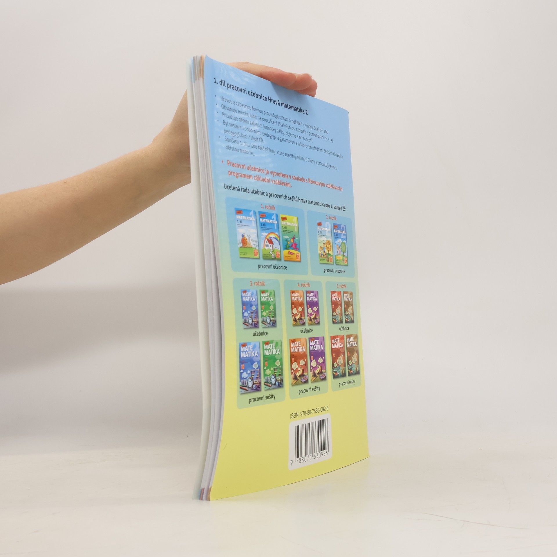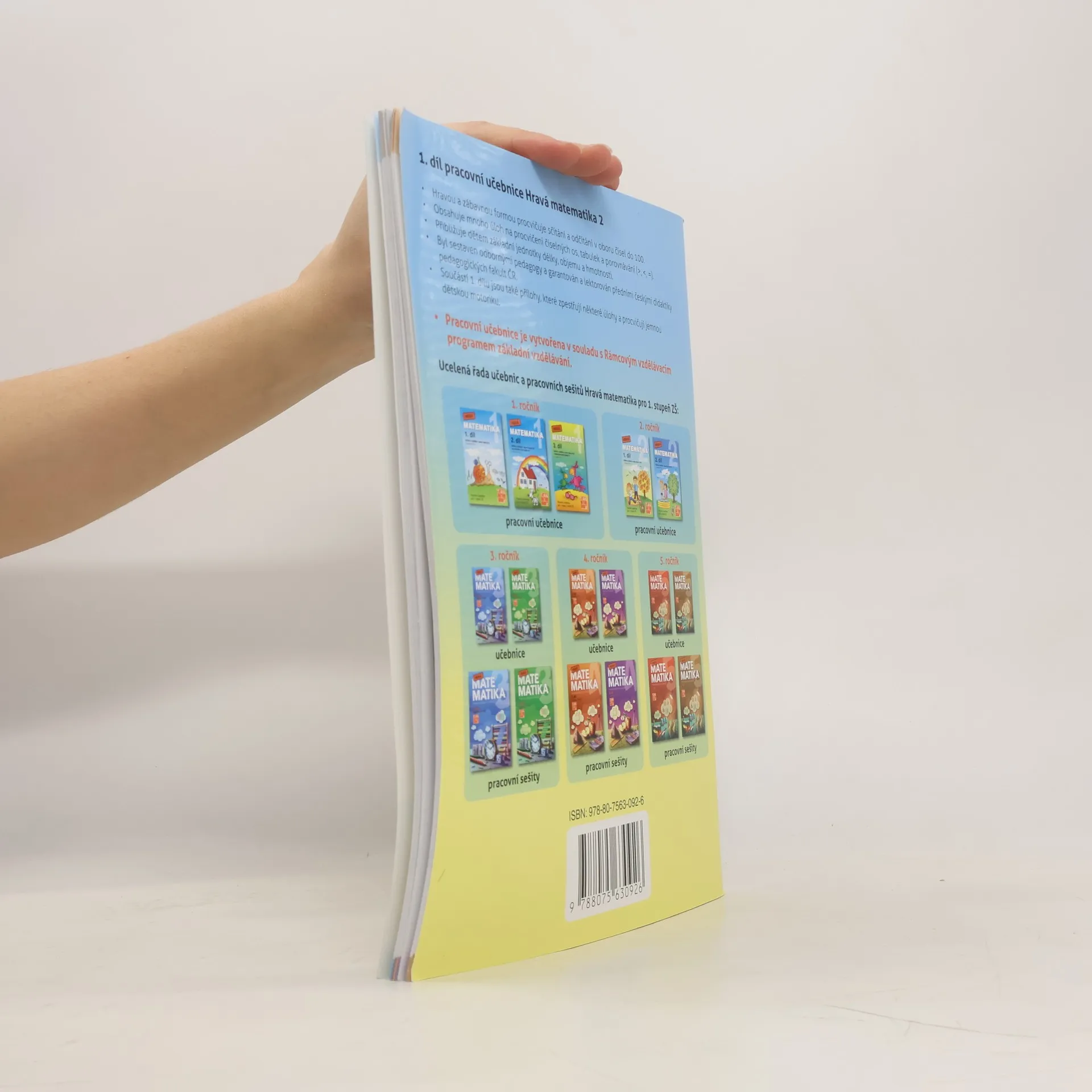 Ucelená řada pracovních učebnic a pracovních sešitů matematiky pro 1. stupeň základních škol je koncipována podle všeobecně oblíbeného konceptu vyučování matematiky složeného z pouček, ukázkových příkladů s řešením a úloh na procvičení nového učiva. Cvičení se vyznačují tvořivostí, obsahovou a typologickou pestrostí a motivují žáky k práci Pracovní učebnice obsahuje: Opakování učiva 1. ročníku Desítky, jednotky Počítání v oboru čísel do 100 Sčítání a odčítání desítek, sčítání a odčítání s přechodem přes desítku Počítání se závorkami Sčítání a odčítání dvojmístných čísel Zaokrouhlování na desítky Hodiny - čtvrt, půl, tři čtvrtě, celá Jednotky délky, objemu, hmotnosti Bod, přímka, úsečka Měření na milimetry, centimetry a decimetry
